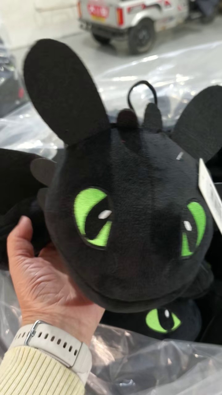 本款产品名称无牙仔驯龙高手,颜色有黑色白色,爬款系列,面料是高克丽丝绒面料,翅膀是厚料无纺布,带绗绣,眼睛实绣,成品皮壳均可以接单,需要订货老板可以联系13582092363颜色实拍