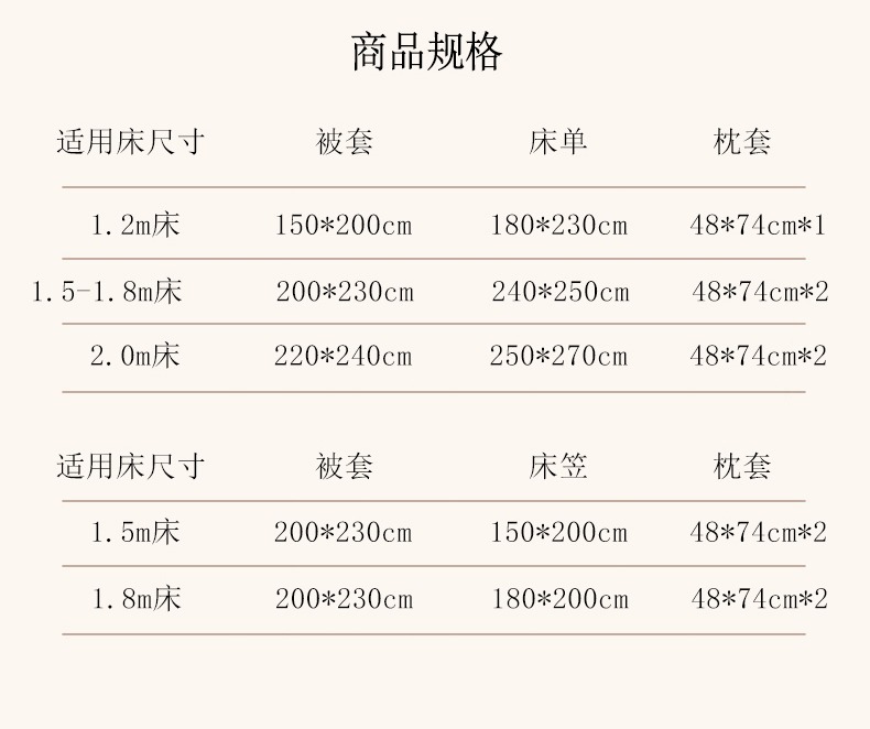 | 1.8m床-床笠款四件套(被套200*230cm) | ¥20500 | 500套可售 |