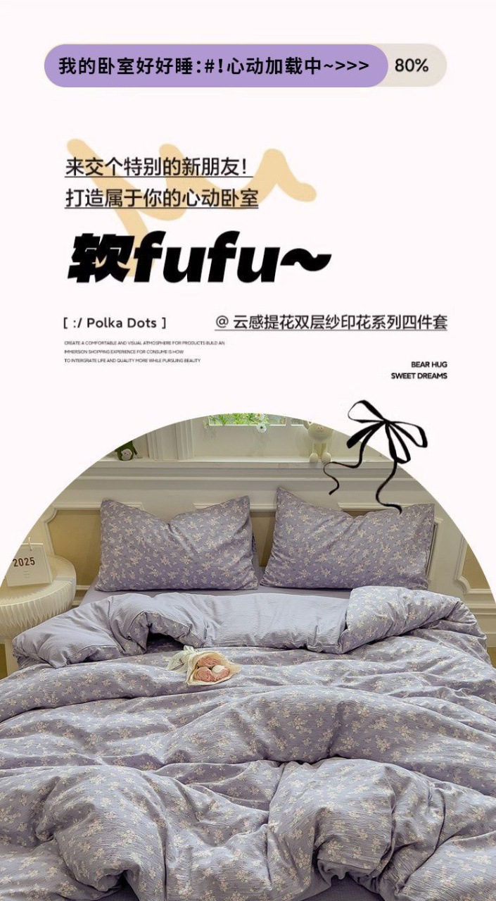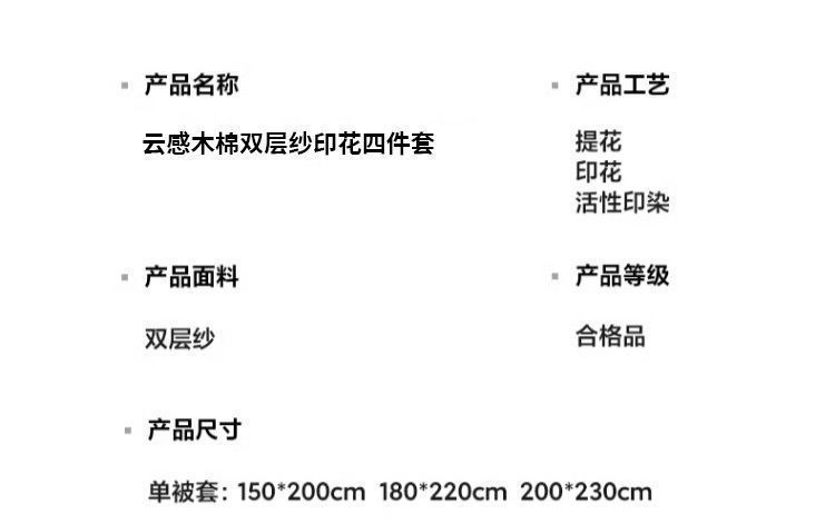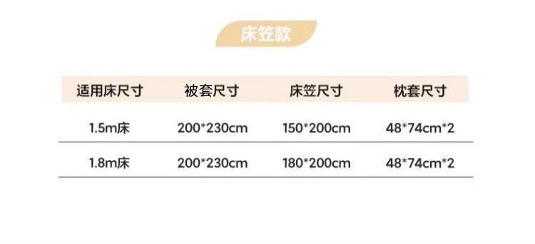 | 床笠款四件套1.5m;被套2.0m+床笠1.5m | ¥5605 | 999999套可售 |
