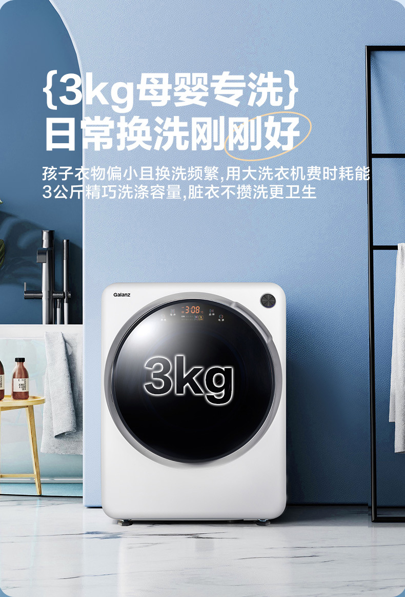 格兰仕3KG滚筒洗衣机家用小型迷你母婴儿童贴身衣物洗衣机XQG-M3V