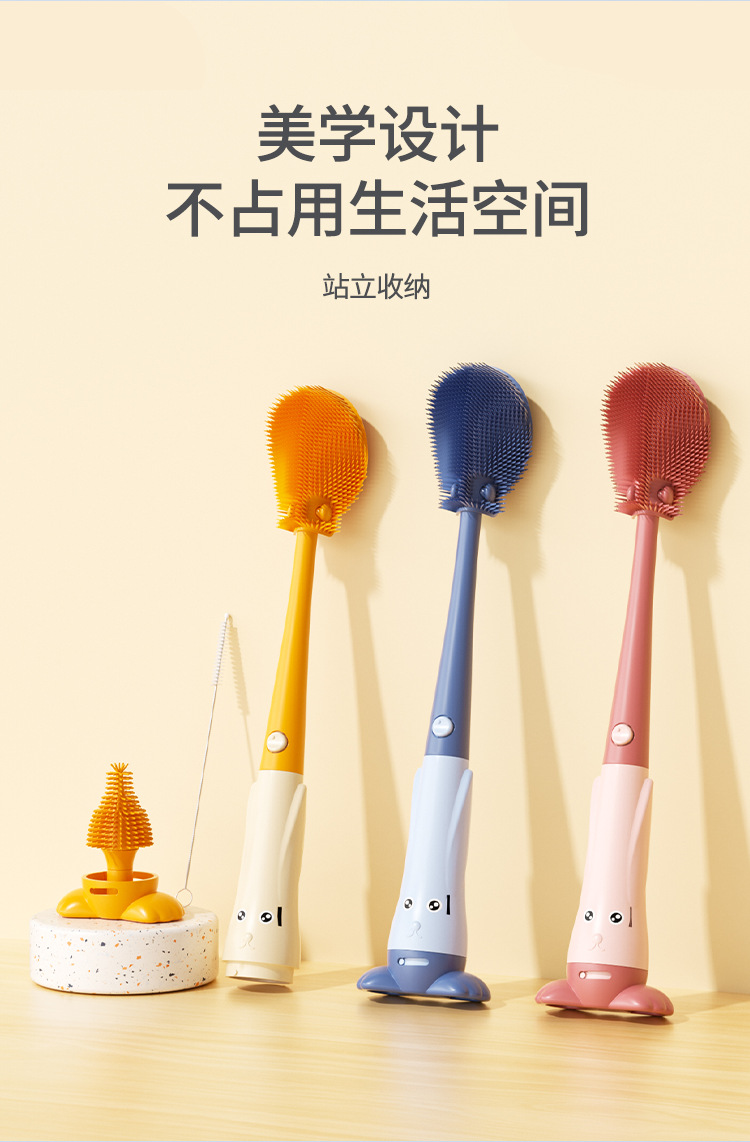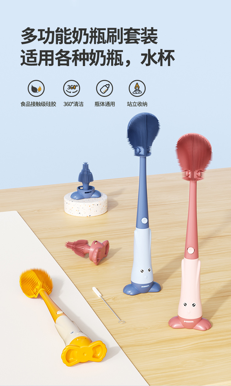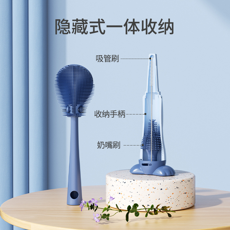 三合一折叠奶瓶刷双面防霉食品级硅胶奶嘴吸管清洁刷OEM定制厂批