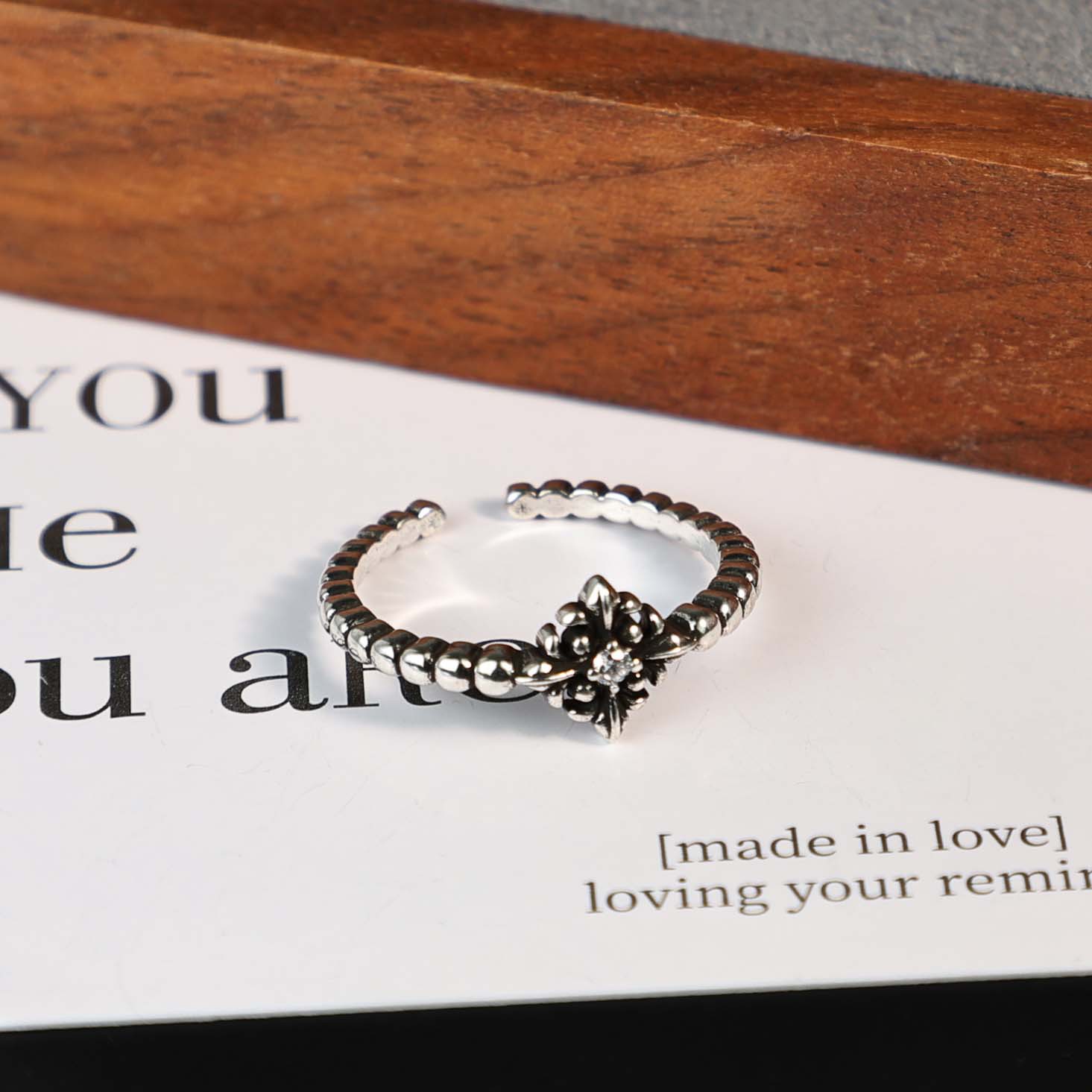 2026新款铜镀925银十字花戒指女轻奢高级感小众设计气质开口指环 English | 投诉