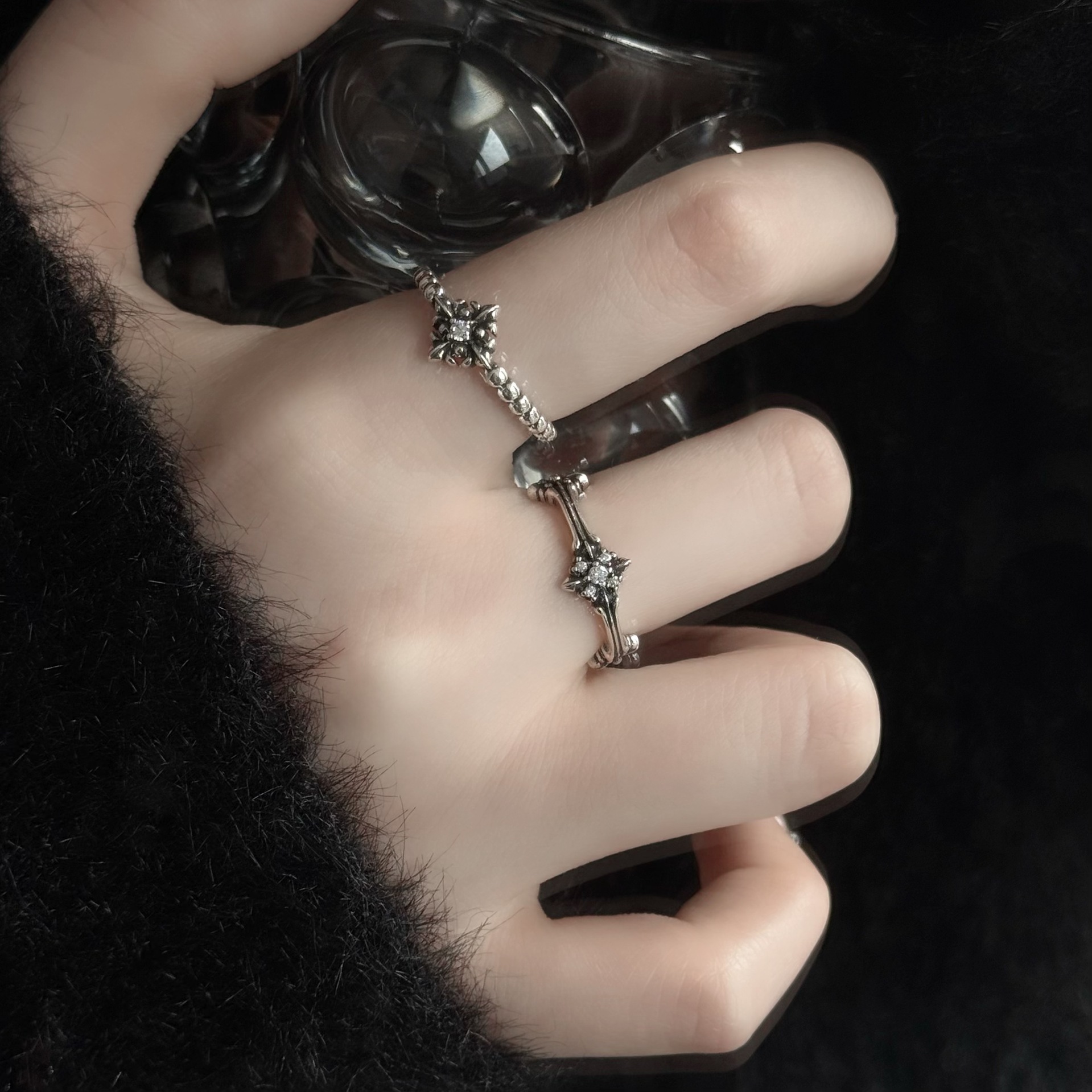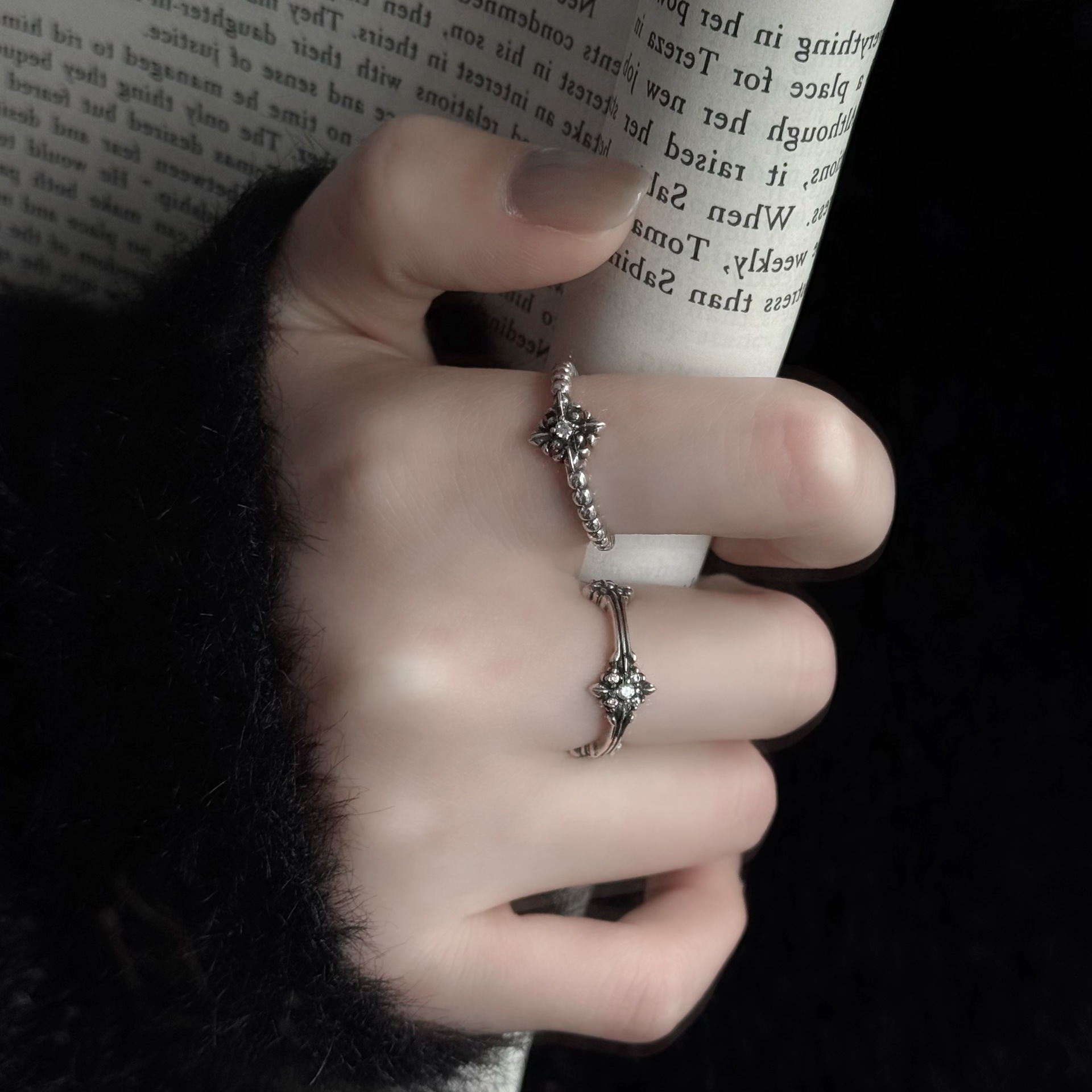 2026新款铜镀925银十字花戒指女轻奢高级感小众设计气质开口指环