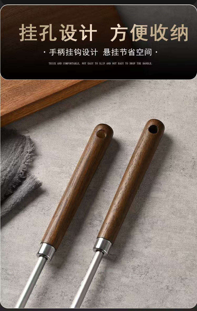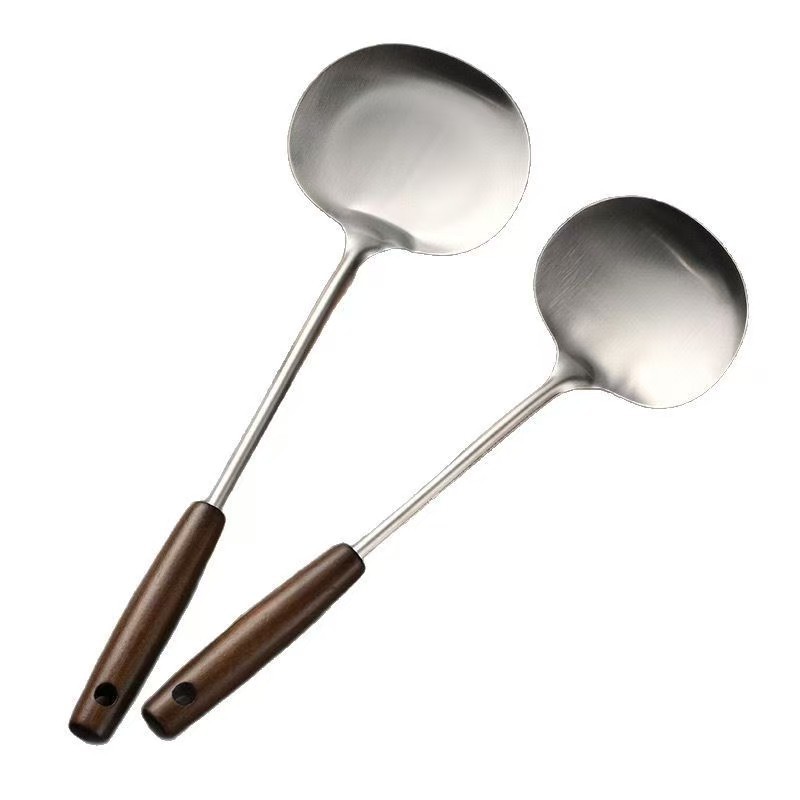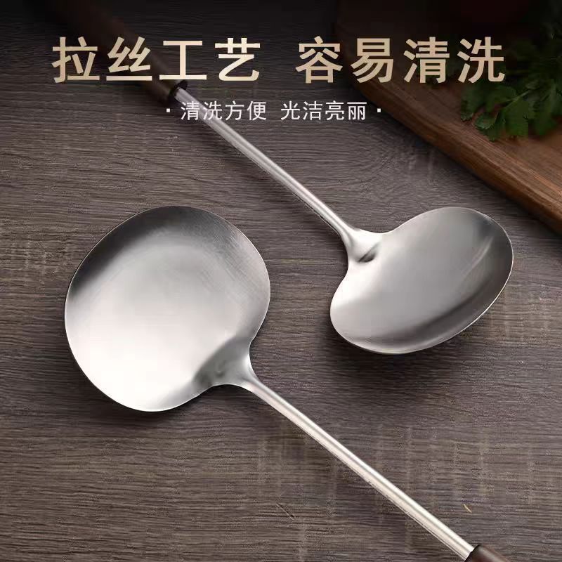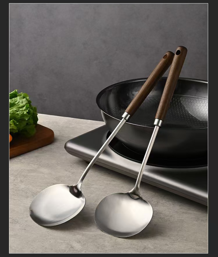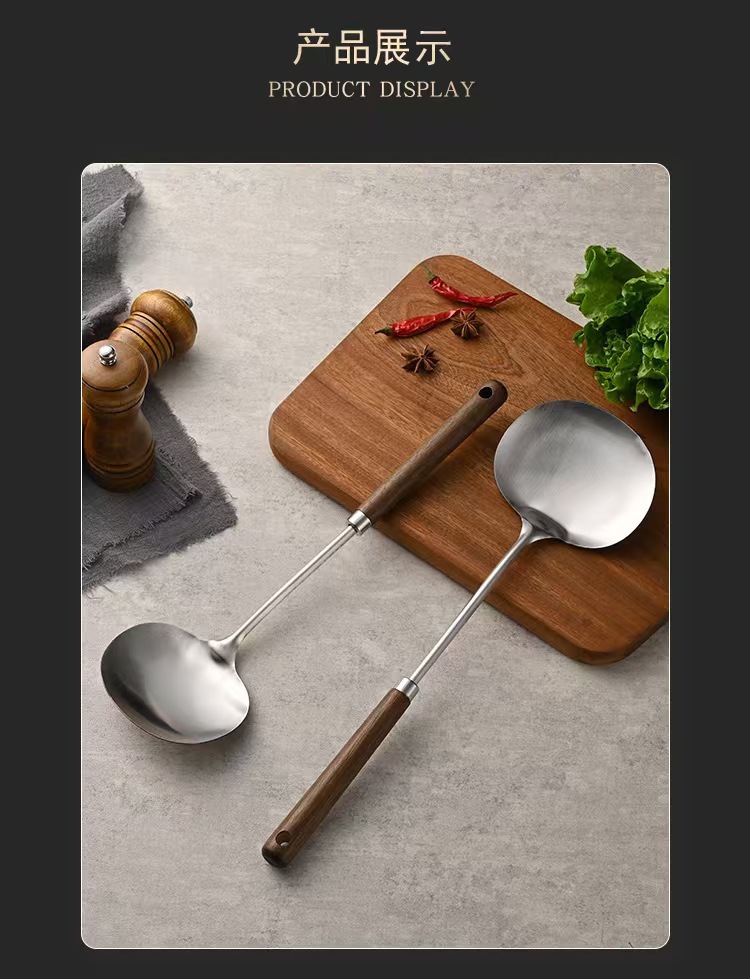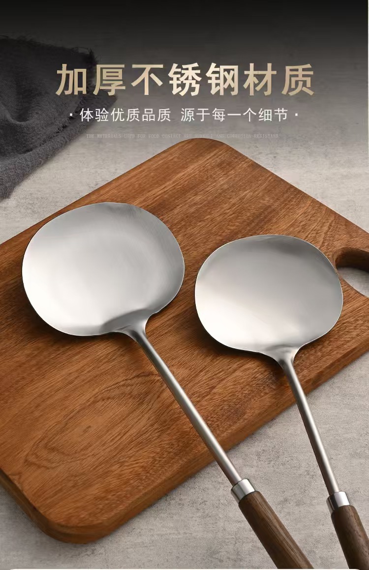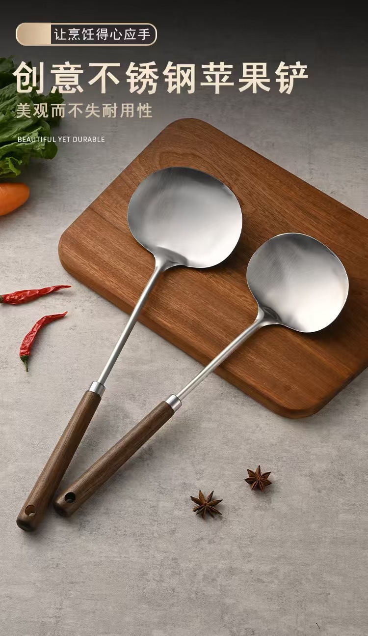 不锈钢蘑菇铲老式古木锅铲家用厨具木柄防烫炒菜勺厨房带挂孔煎铲 投诉