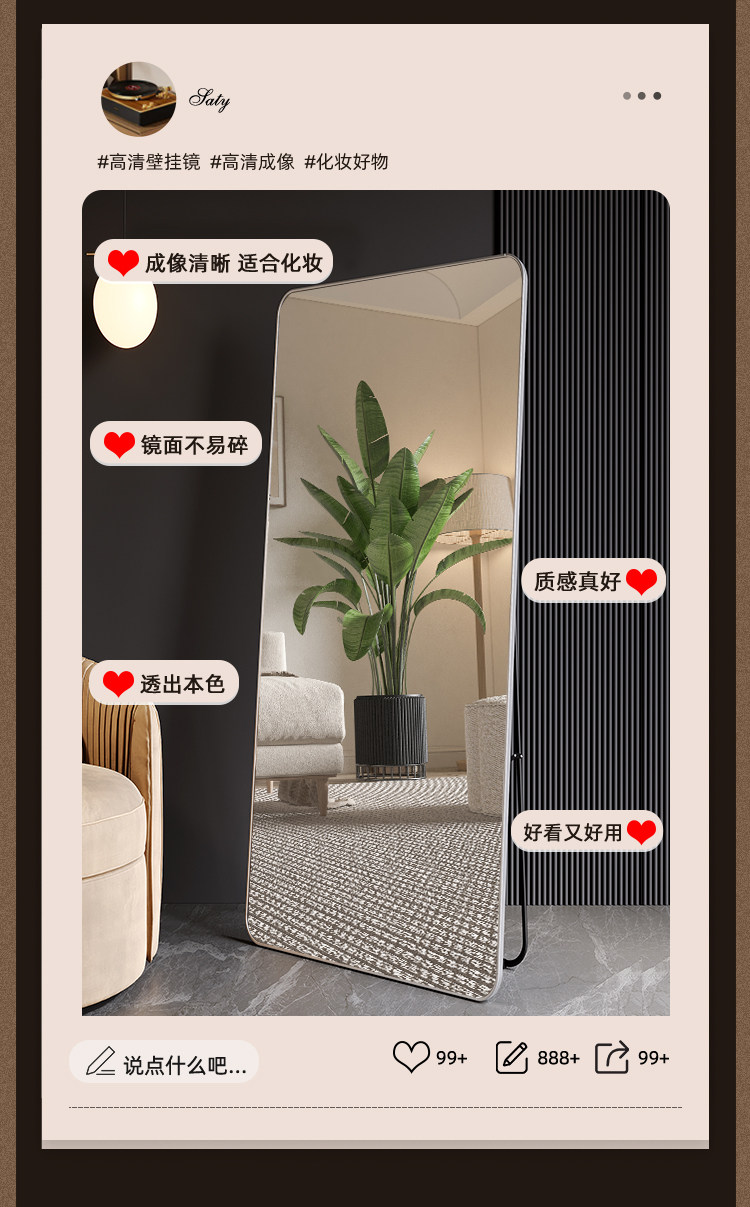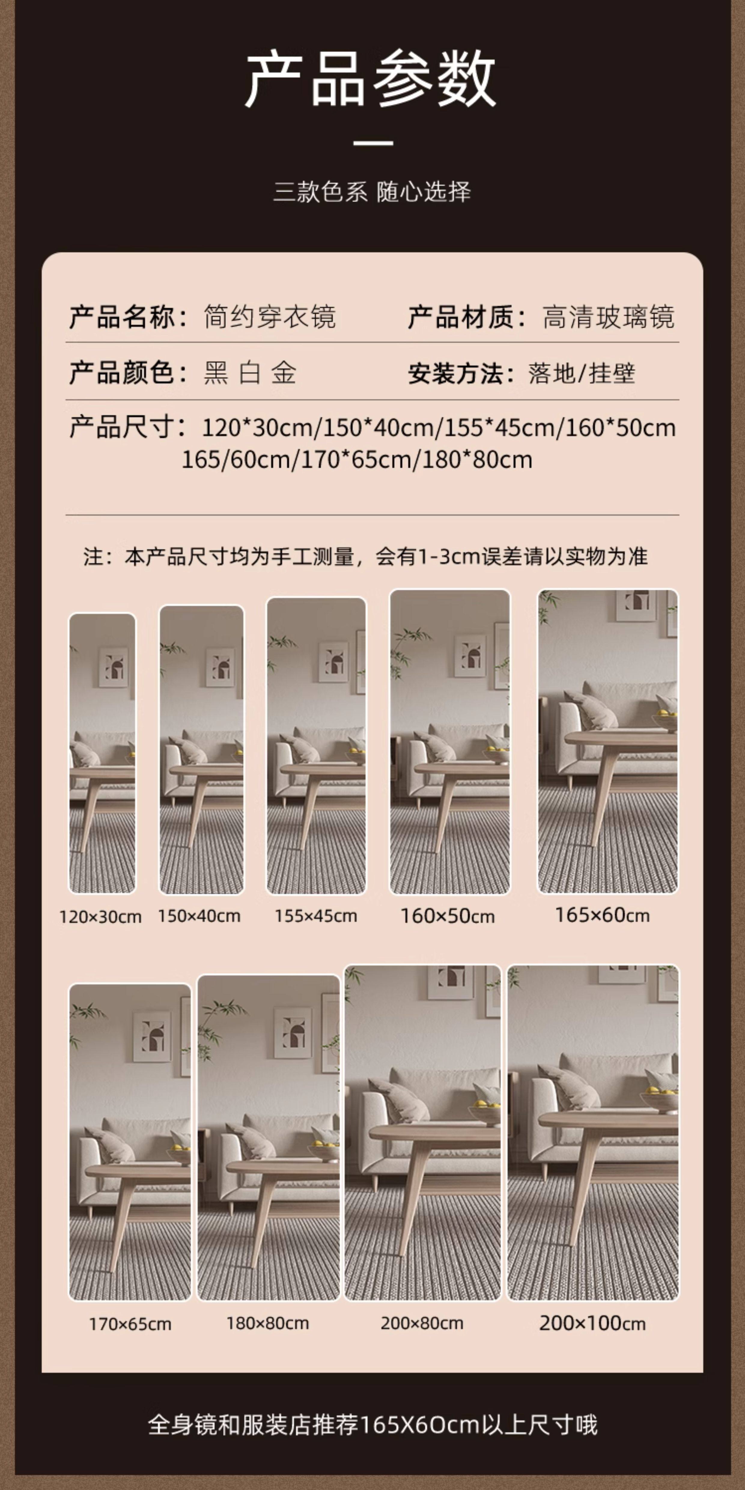 全身镜落地镜家用网红穿衣镜服装店试衣镜女生卧室贴墙挂墙大镜子 English | 投诉