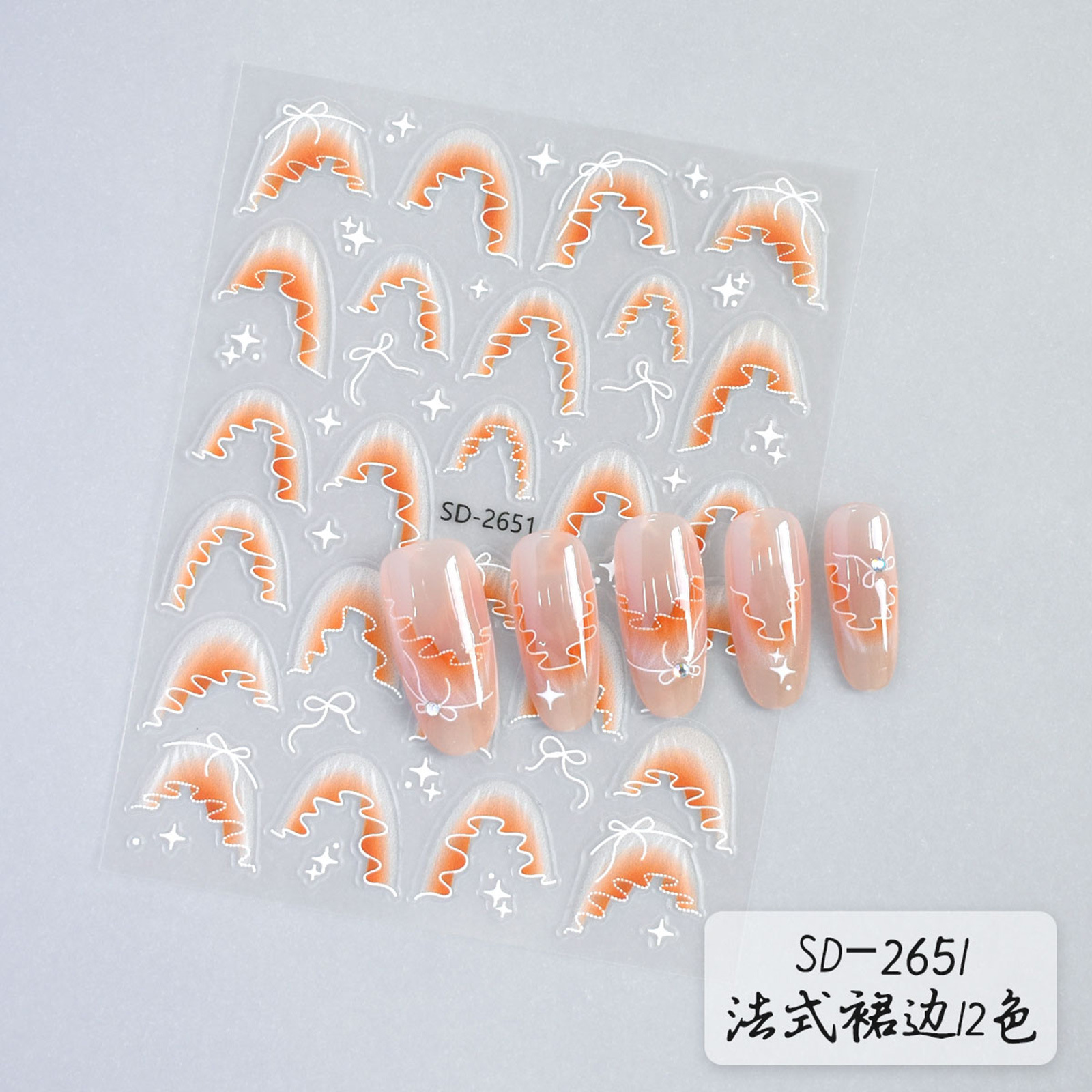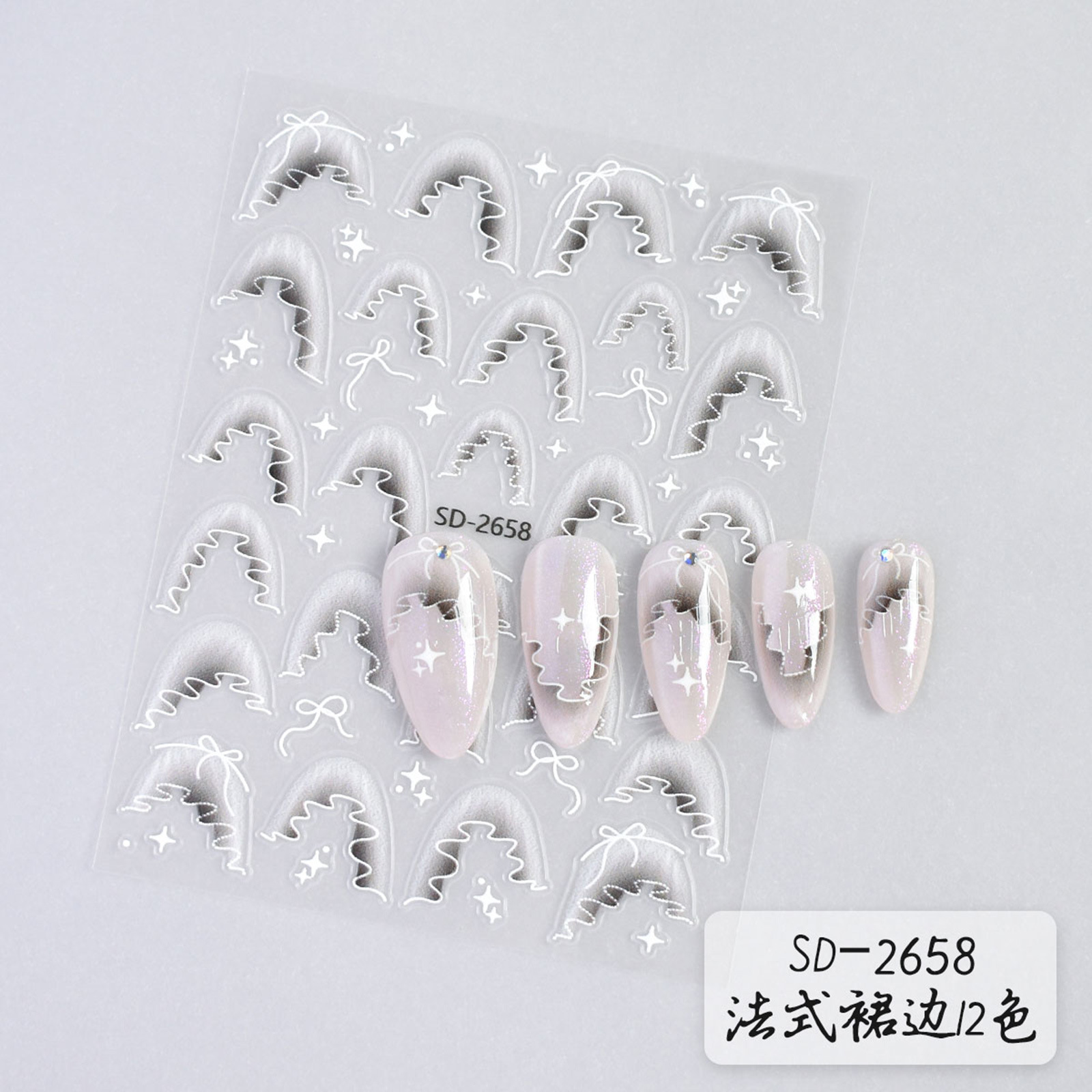 跨境外贸热销浮雕美甲贴纸 欧美ins风法式裙边系列指甲贴纸装饰品