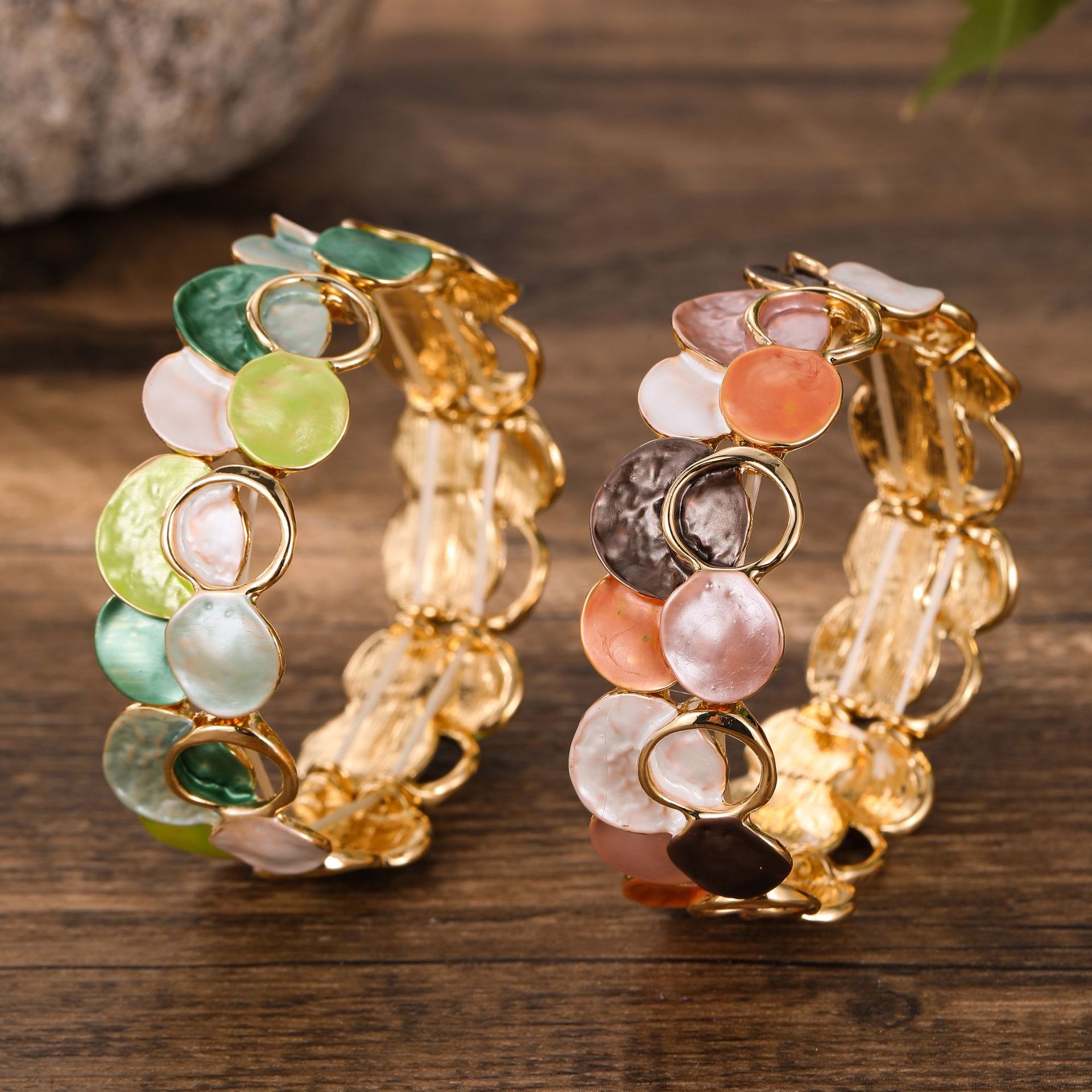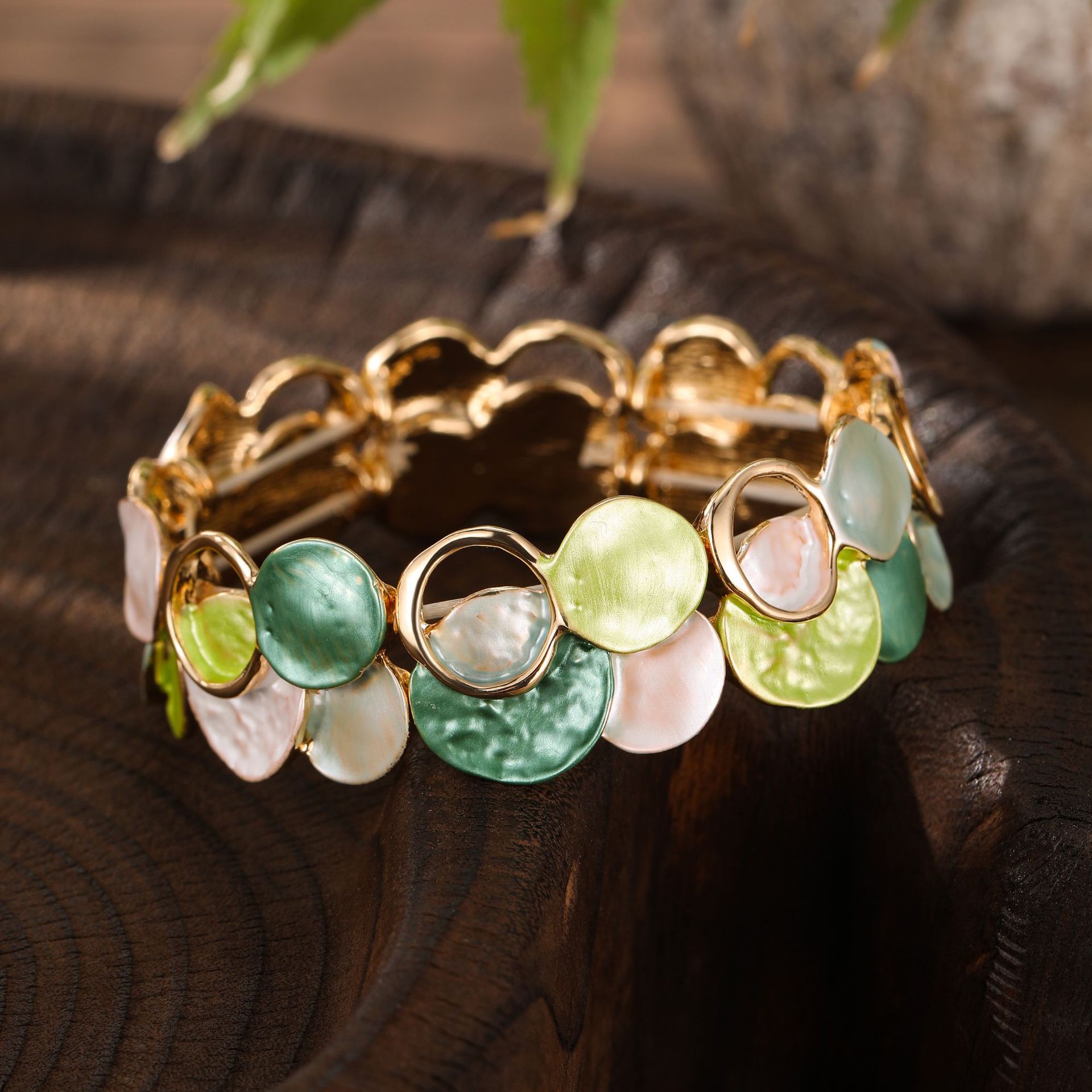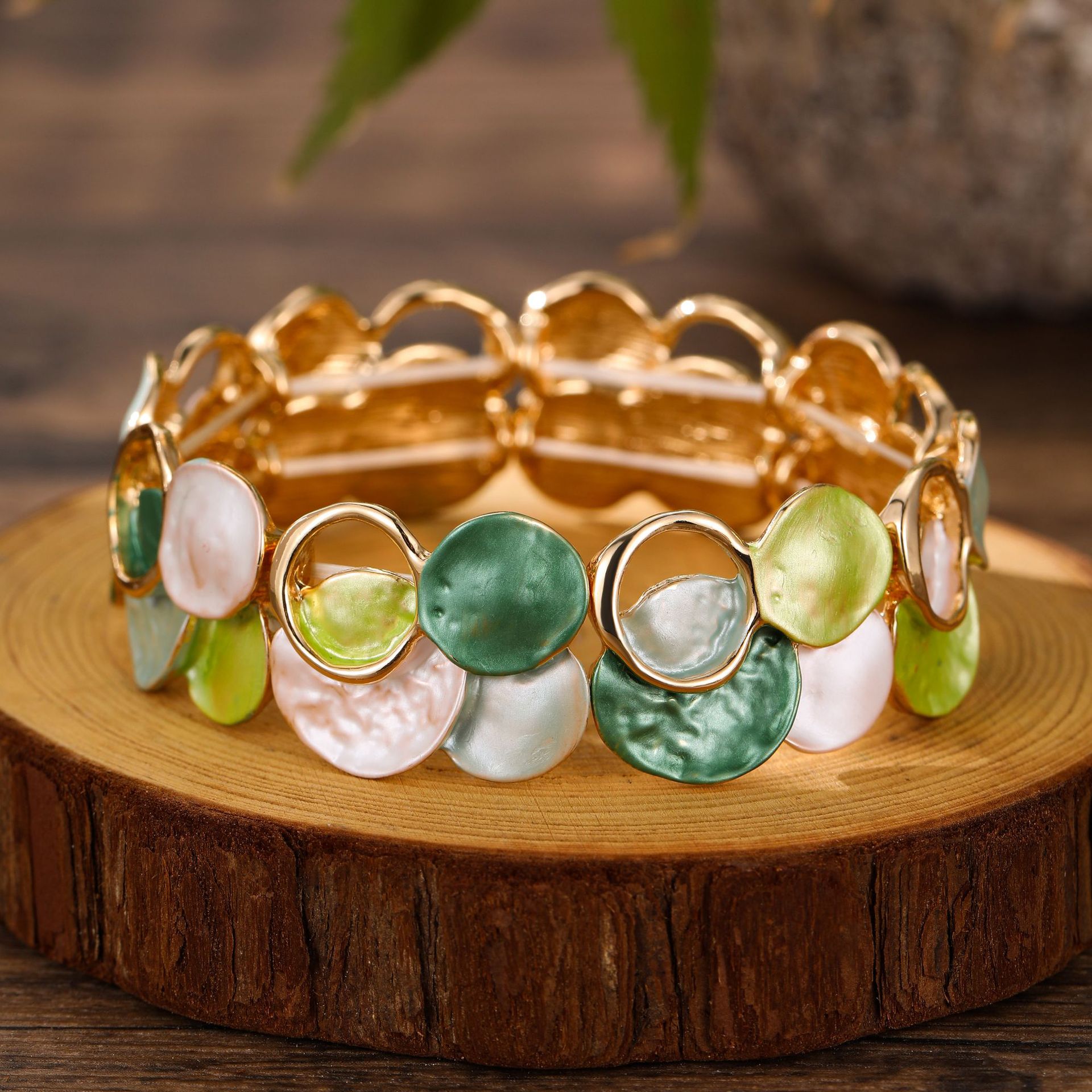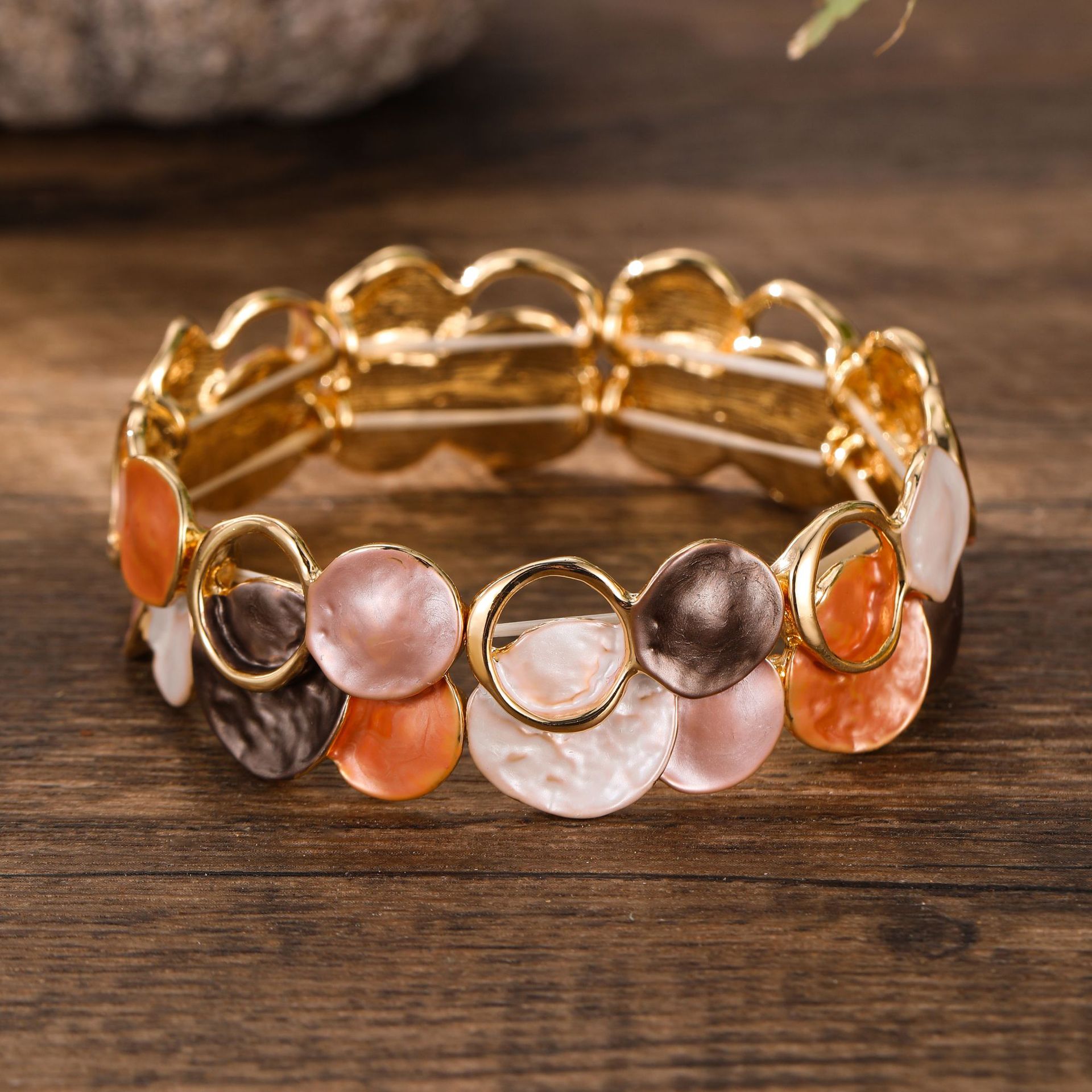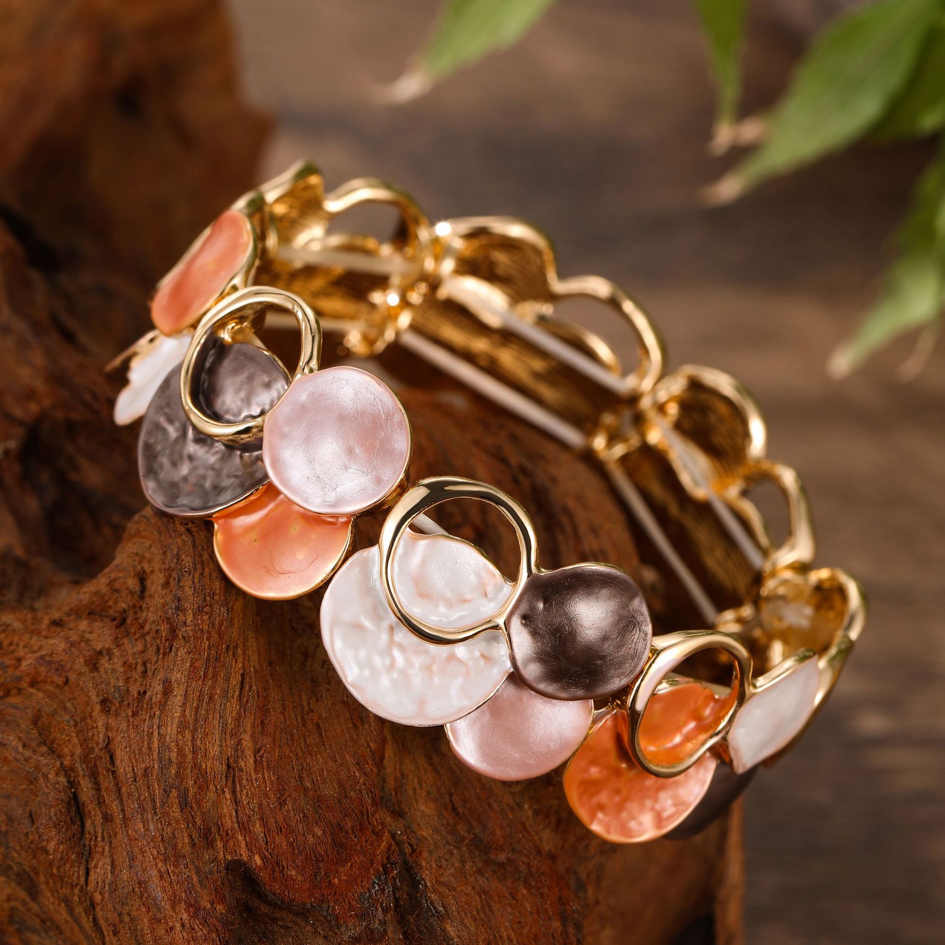跨境新款珐琅彩镂空几何花瓣弹力手镯女士时尚百搭不规则花朵手镯