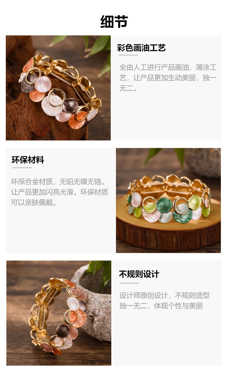 跨境新款珐琅彩镂空几何花瓣弹力手镯女士时尚百搭不规则花朵手镯 投诉