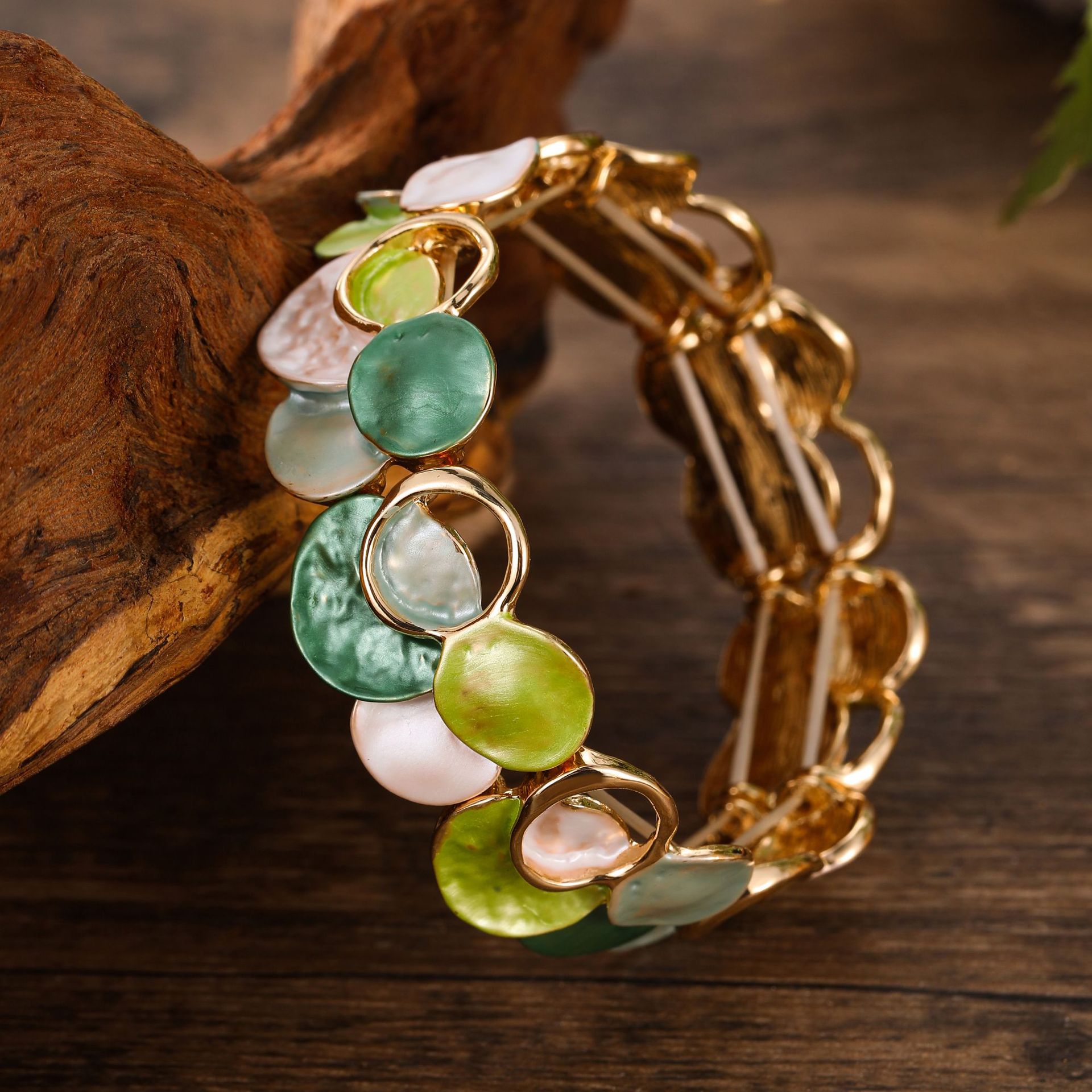 翠绿花瓣弹力手镯-金 ¥0 5000个可售