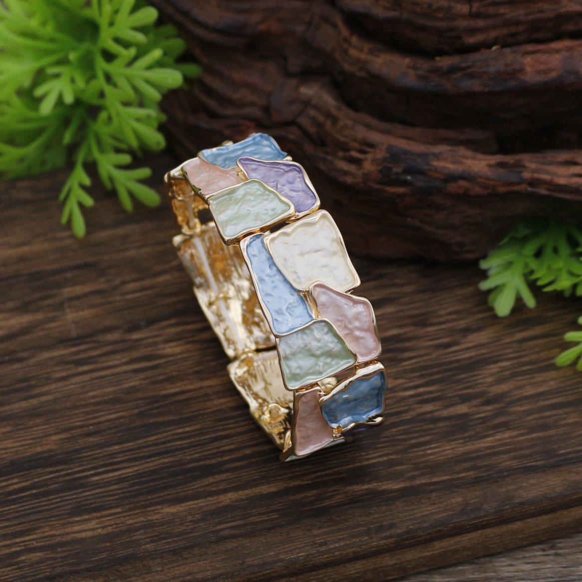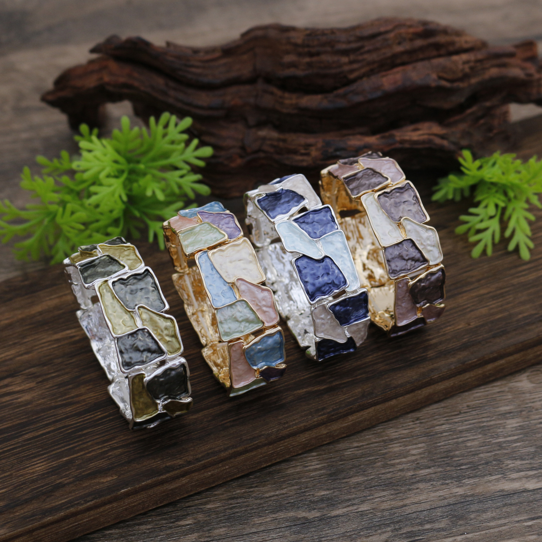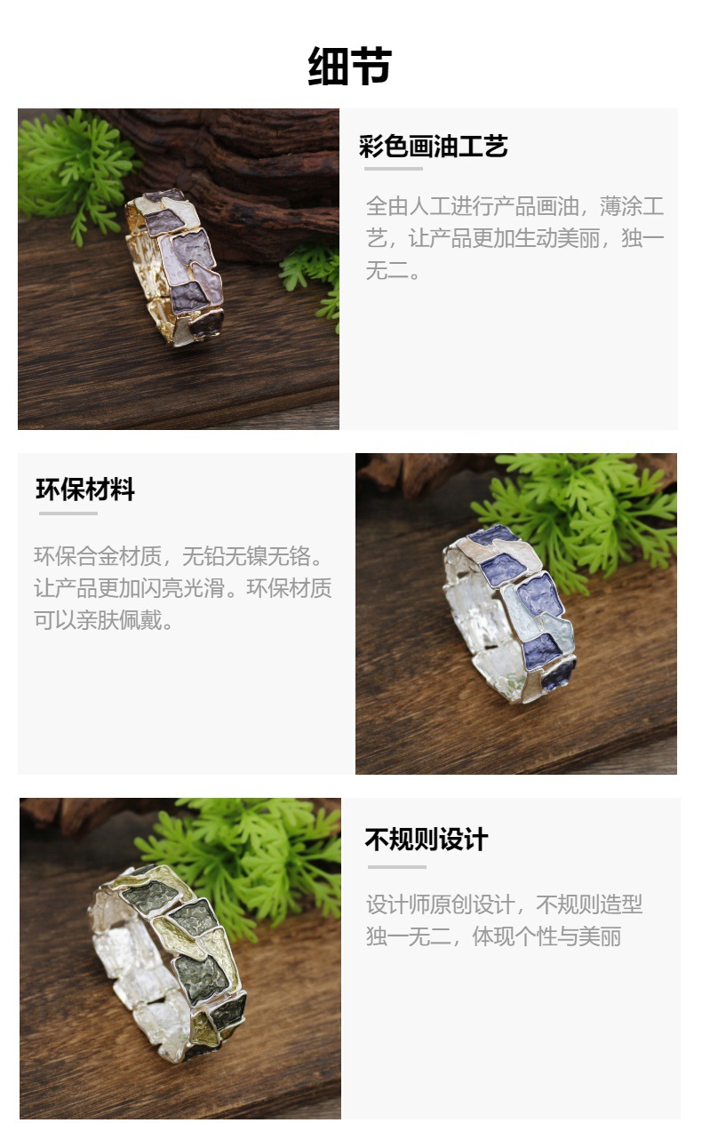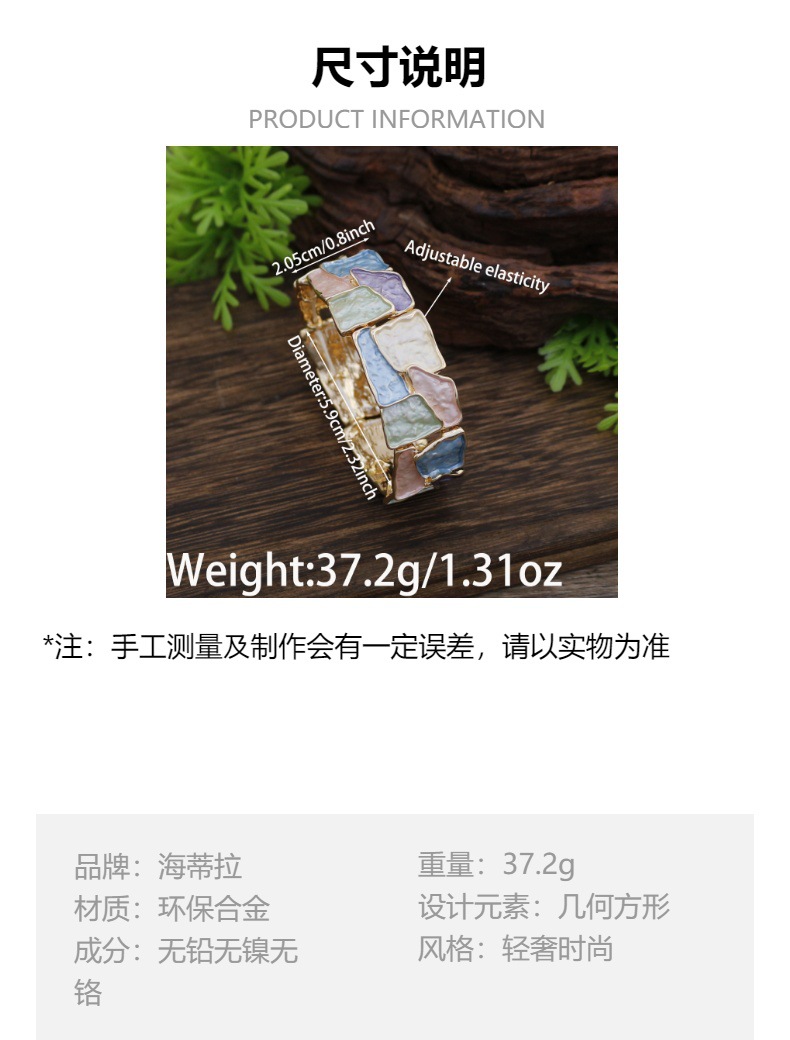 跨境新款珐琅彩不规则方块弹力手镯女士夸张创意方形几何弹力手镯 投诉