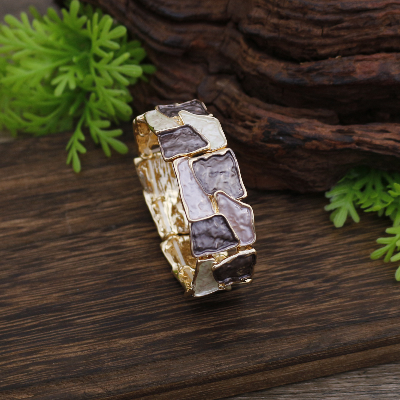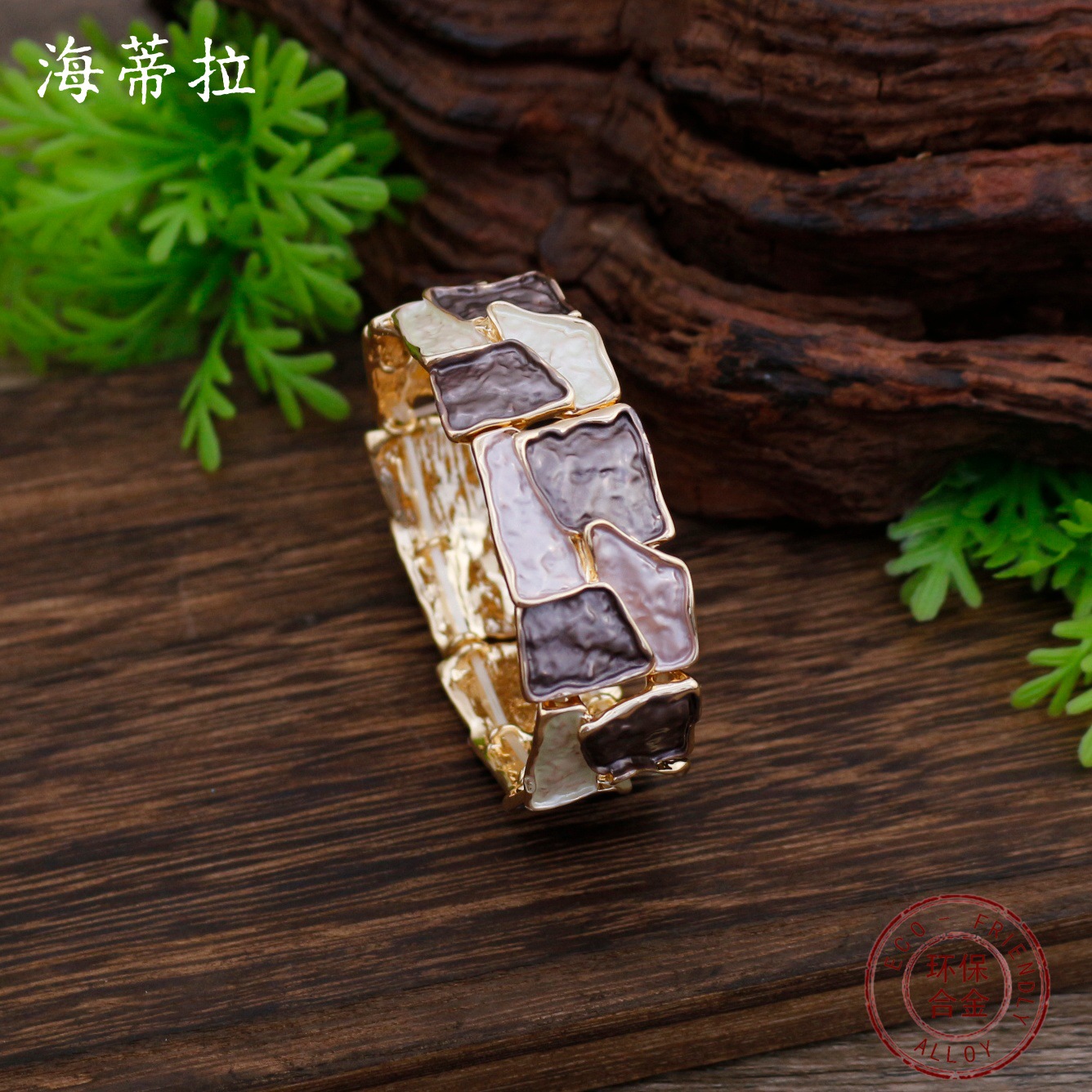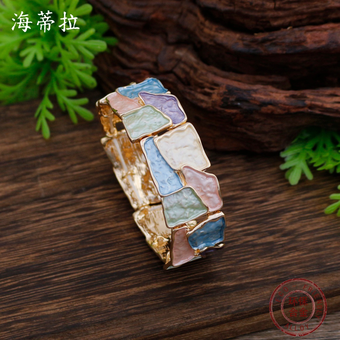 跨境新款珐琅彩不规则方块弹力手镯女士夸张创意方形几何弹力手镯 投诉