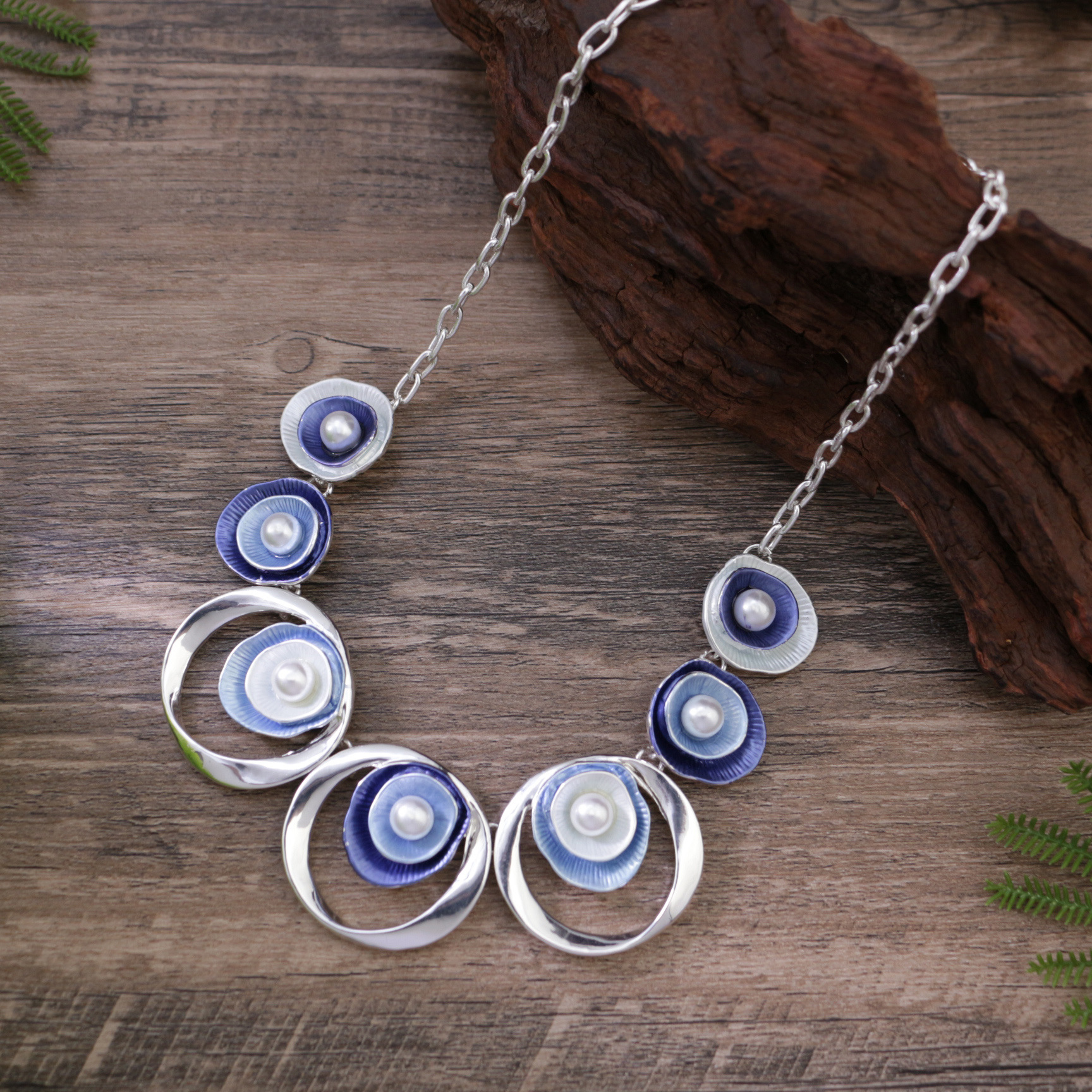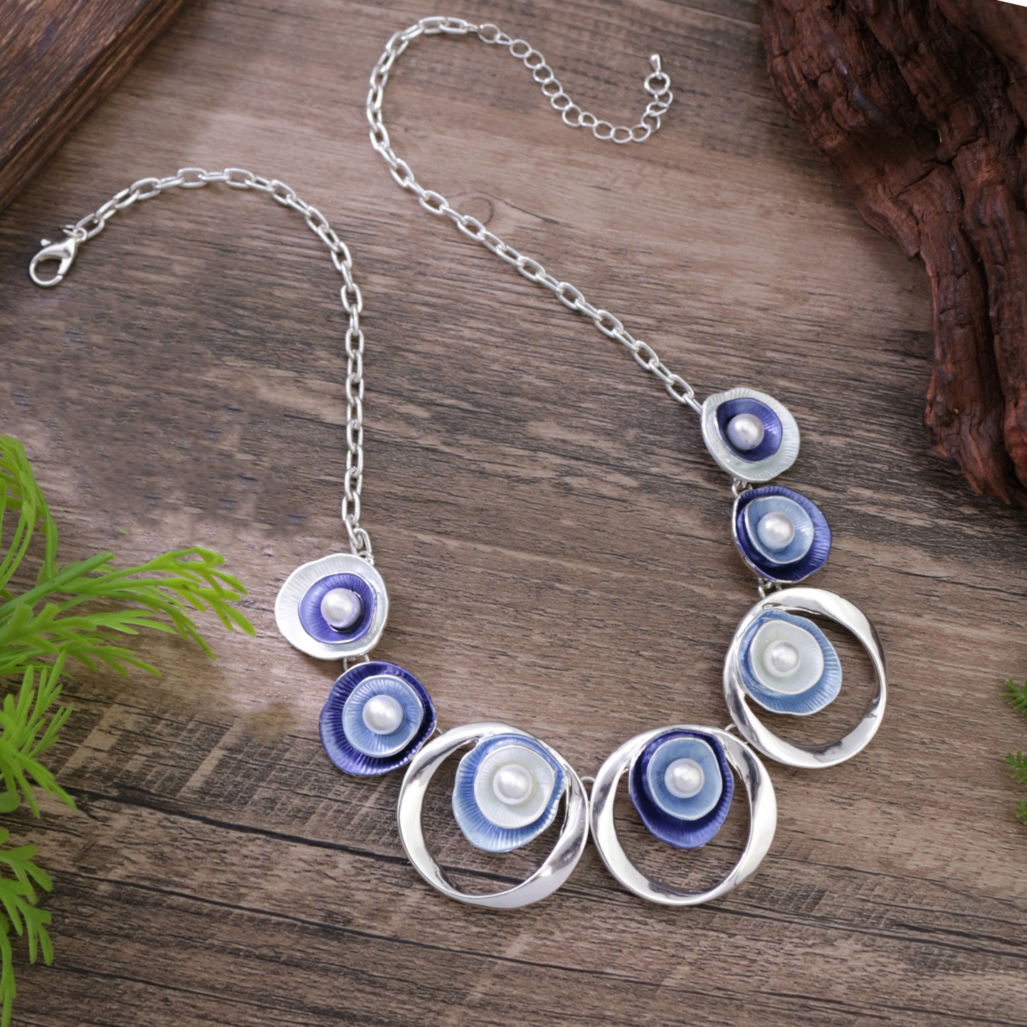 蓝色珍珠花朵项链-银 ¥0 1804个可售