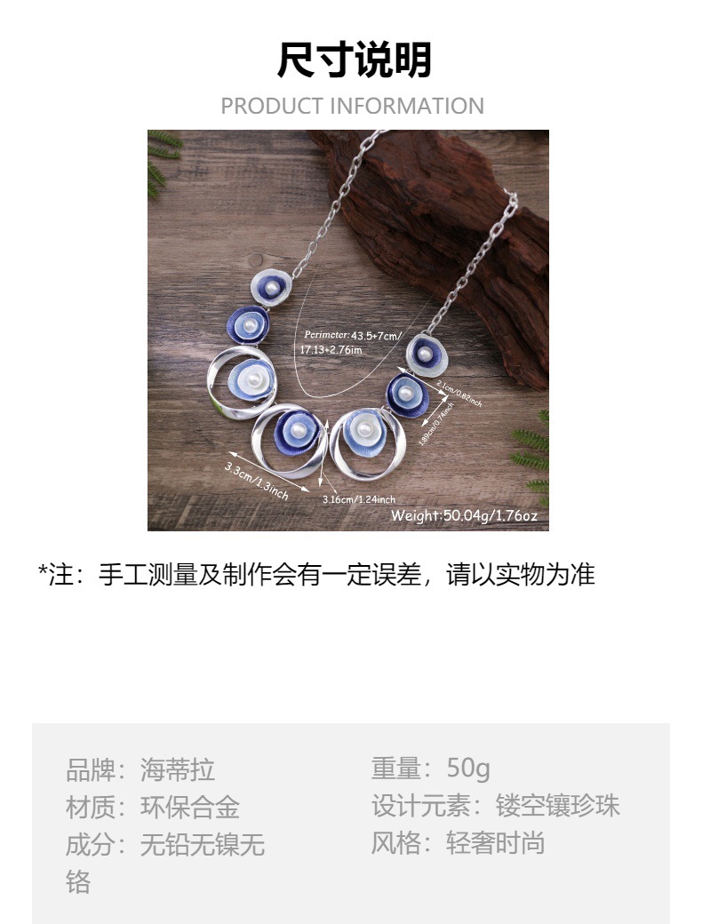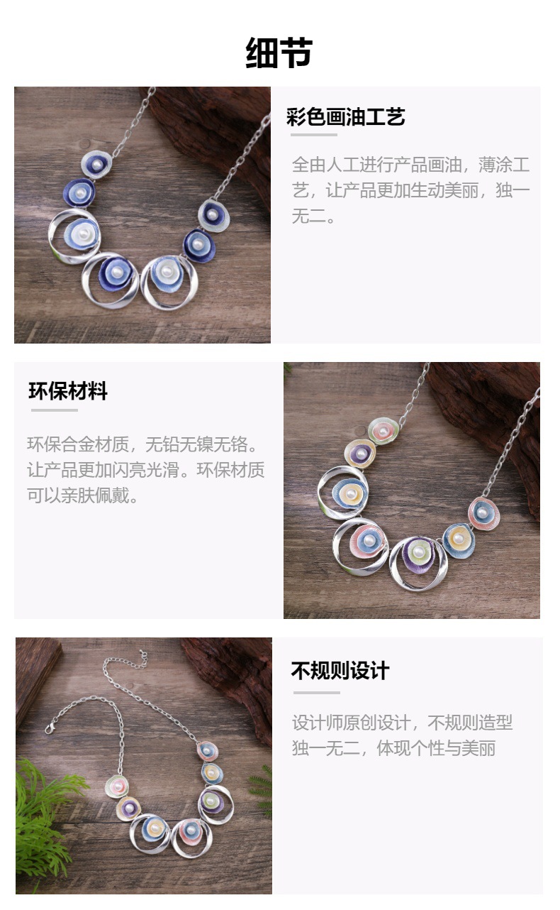 跨境热销彩色画油珍珠镶嵌镂空圆形花朵项链 女士高级感花朵颈链 投诉