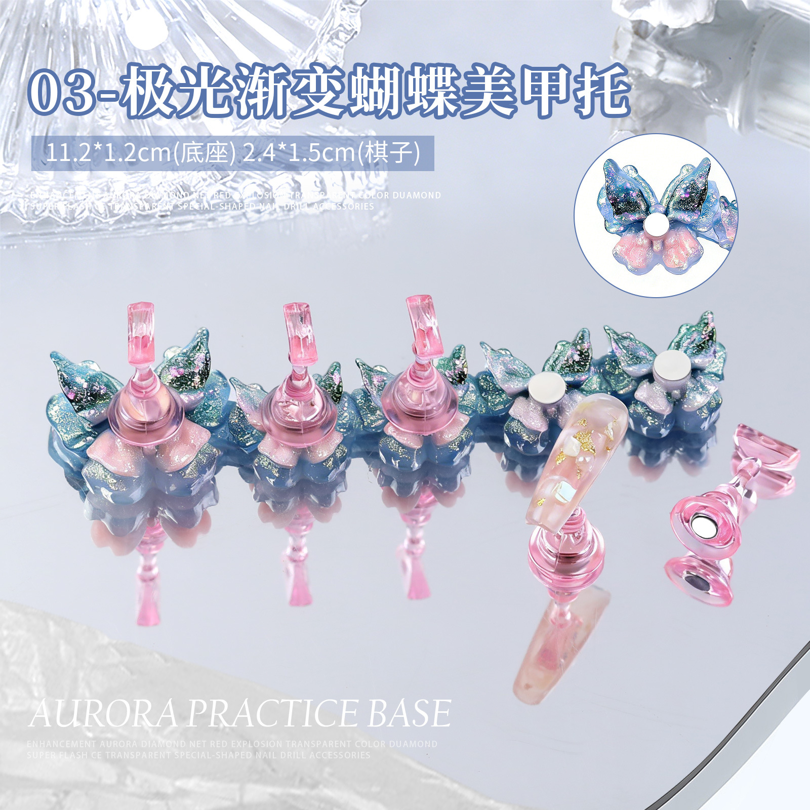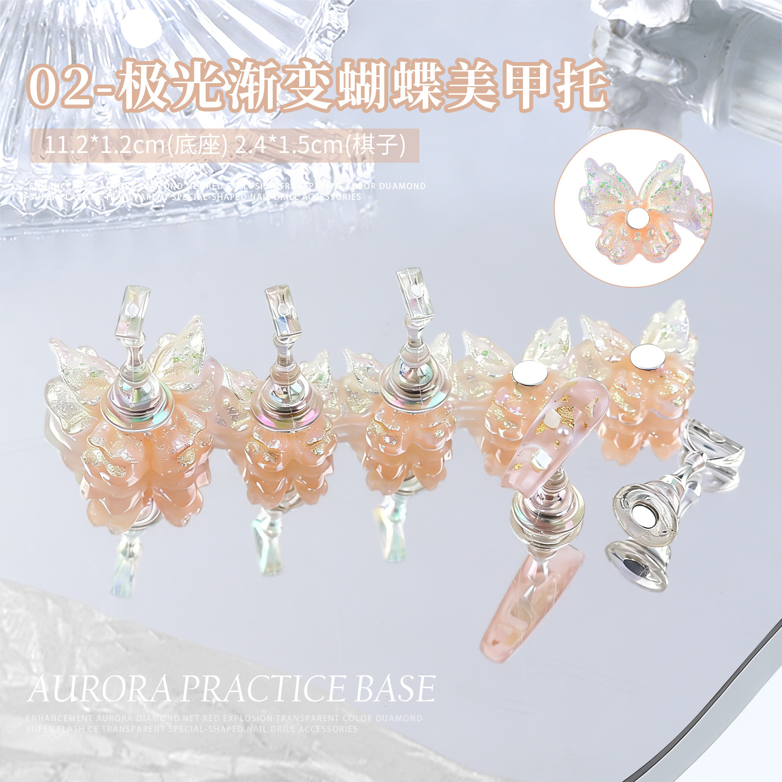 美甲甲片托蝴蝶系列镭射极光冰透练习托架长条甲片指甲托架饰品批
