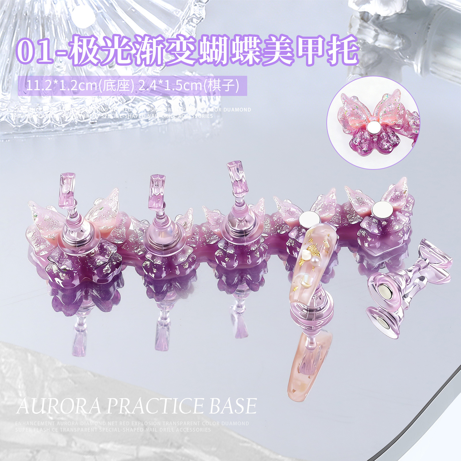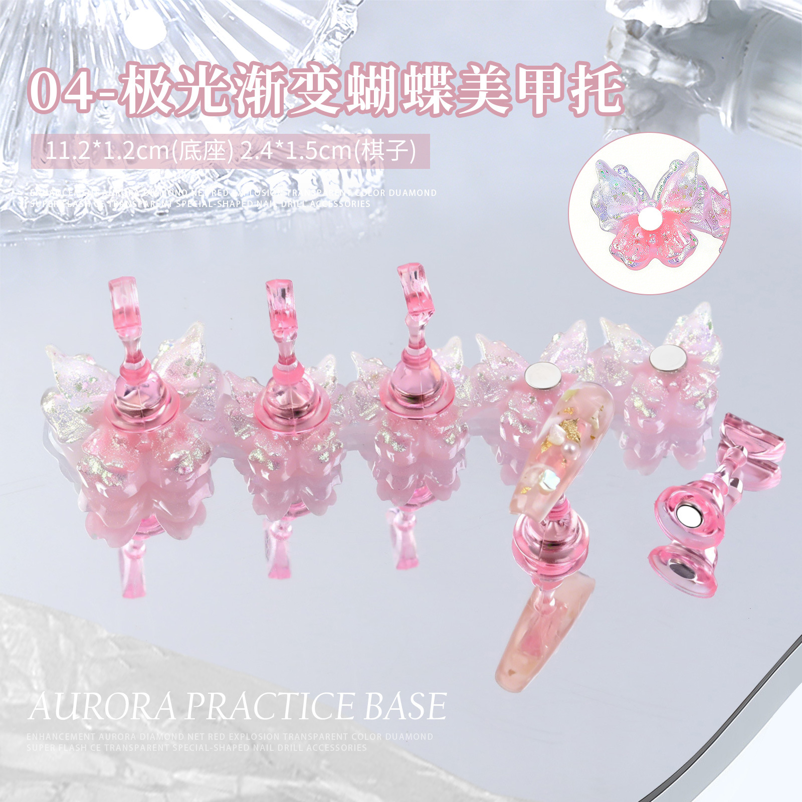美甲甲片托蝴蝶系列镭射极光冰透练习托架长条甲片指甲托架饰品批 投诉