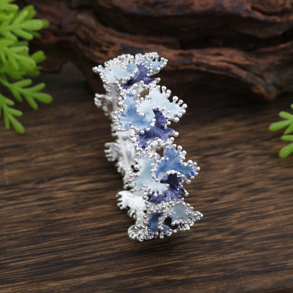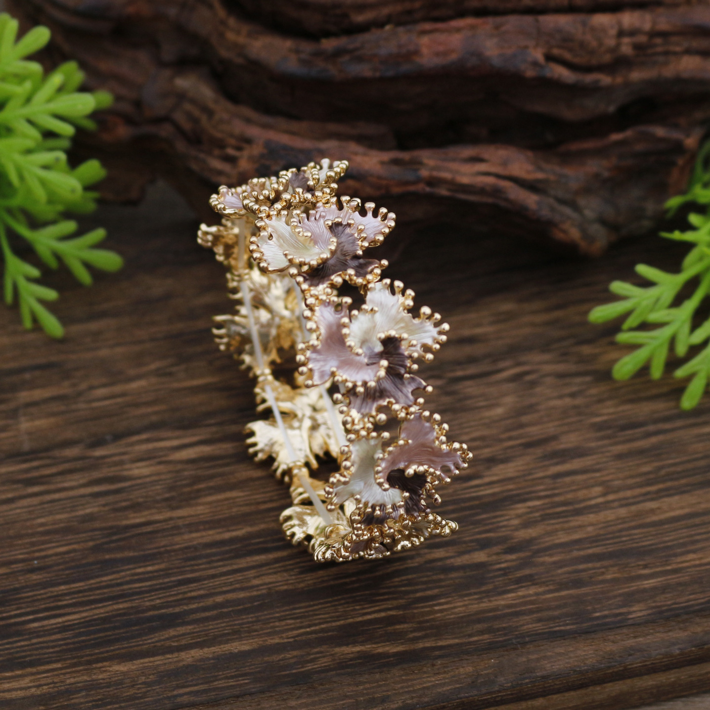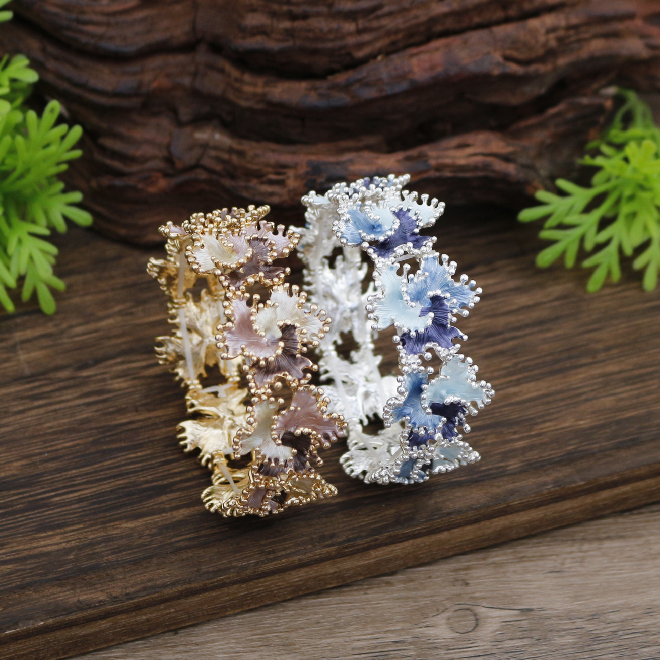 跨境热销珐琅彩不规则立体花朵弹力手镯女士时尚设计感花朵手镯