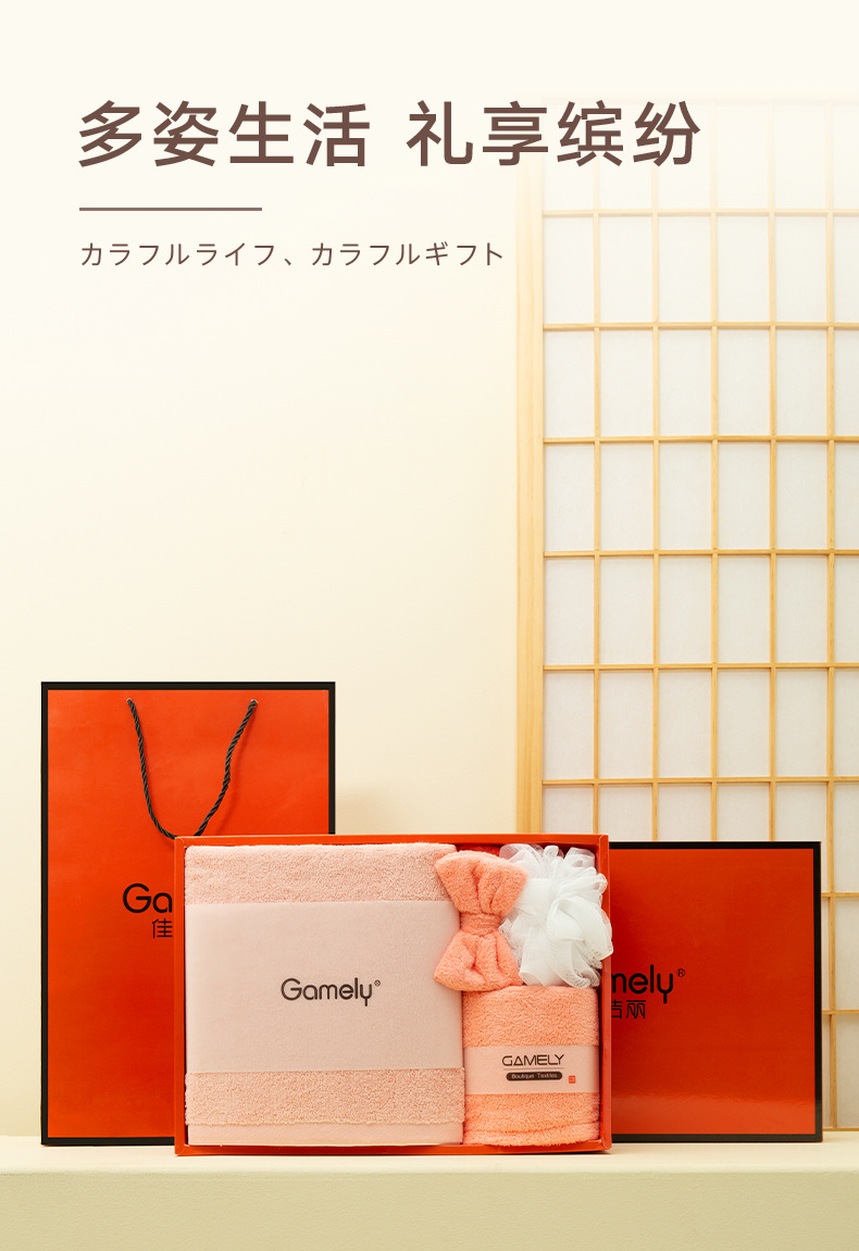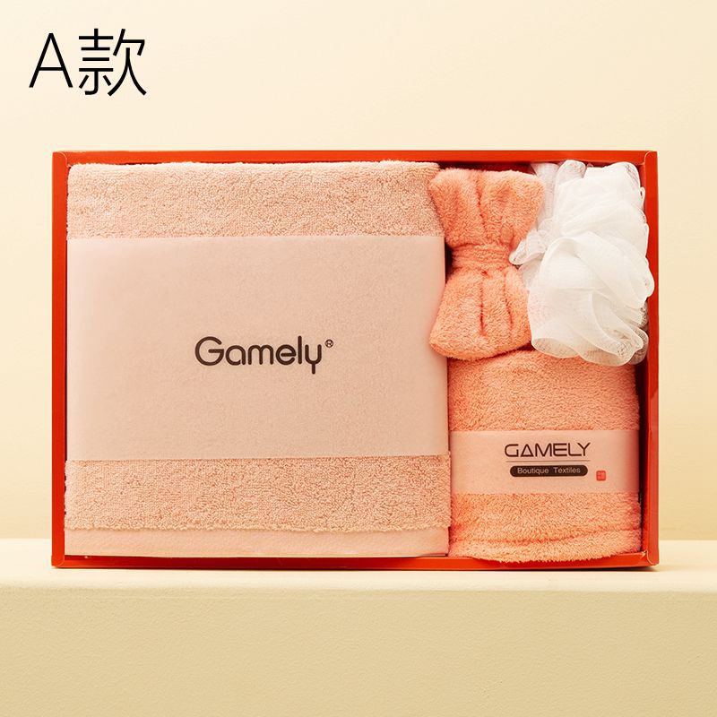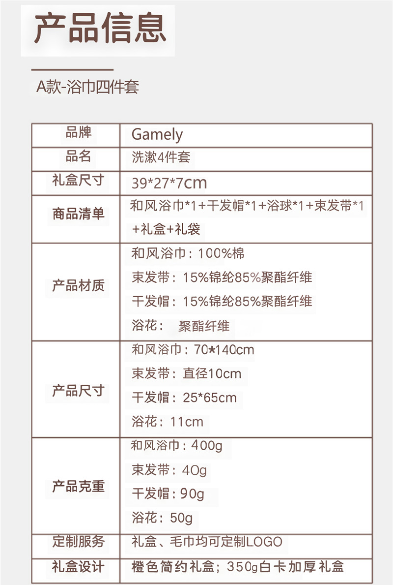 A款:纯棉浴巾400g+干发帽+束发带+50g浴花+橙色礼盒
