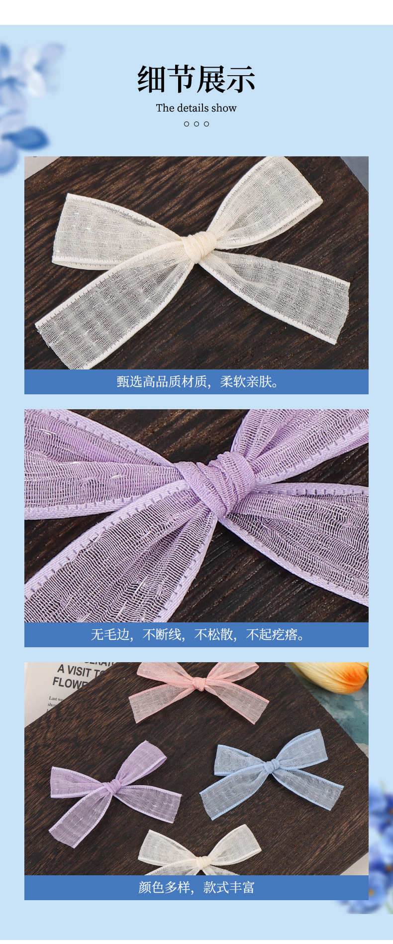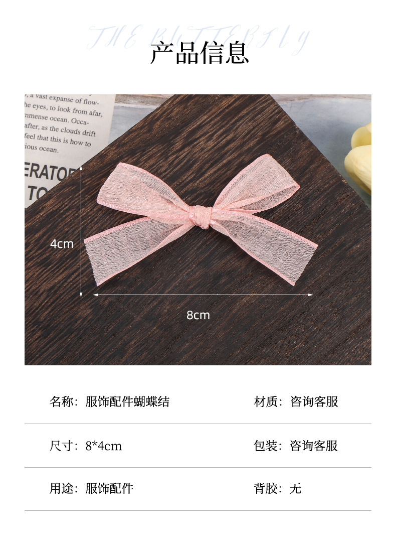 8cm韩纱蝴蝶结内衣领结DIY饰品美甲装饰品布艺网纱蕾丝飘带小饰 English | 投诉