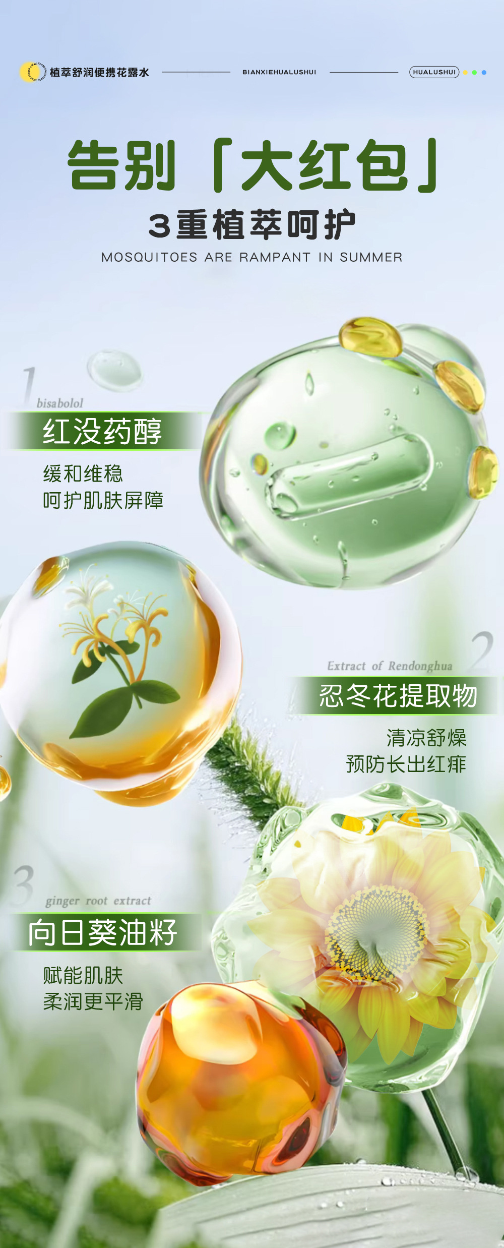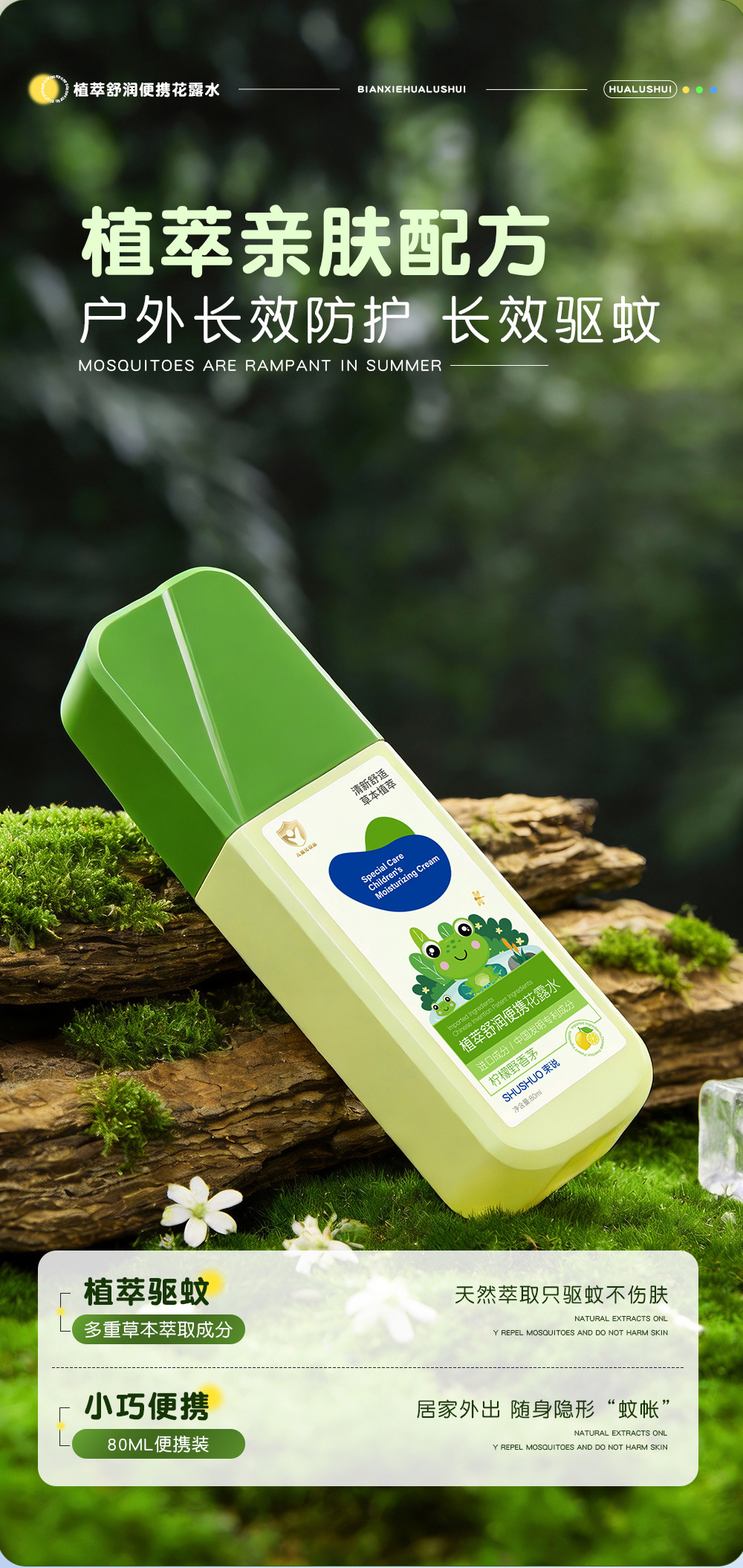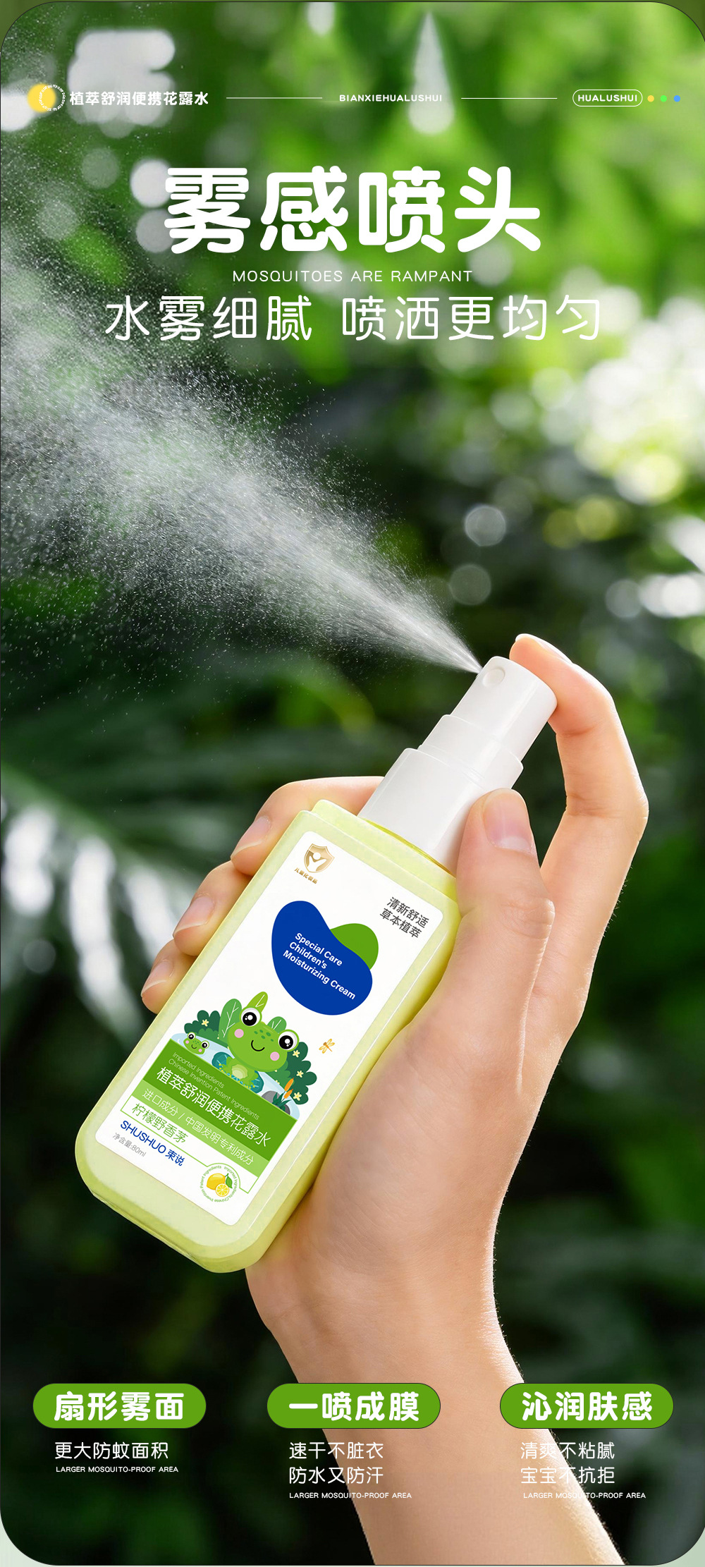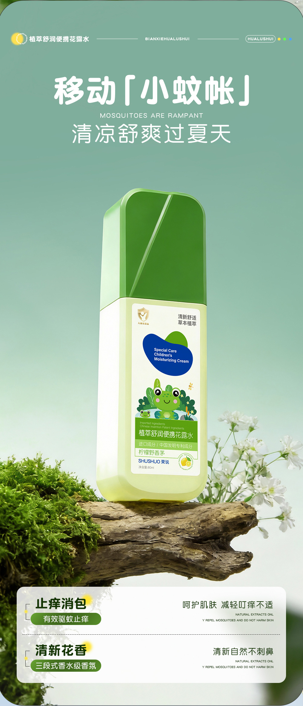 束说植萃舒润便携花露水驱蚊水防蚊虫怕户外防叮咬避蚊胺驱蚊喷雾
