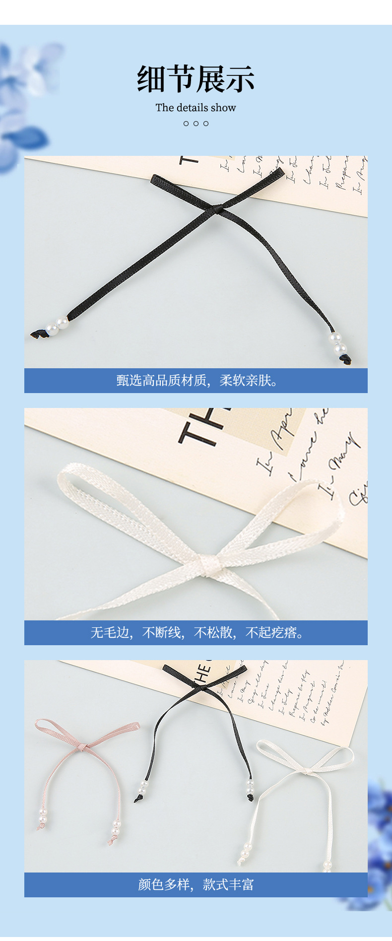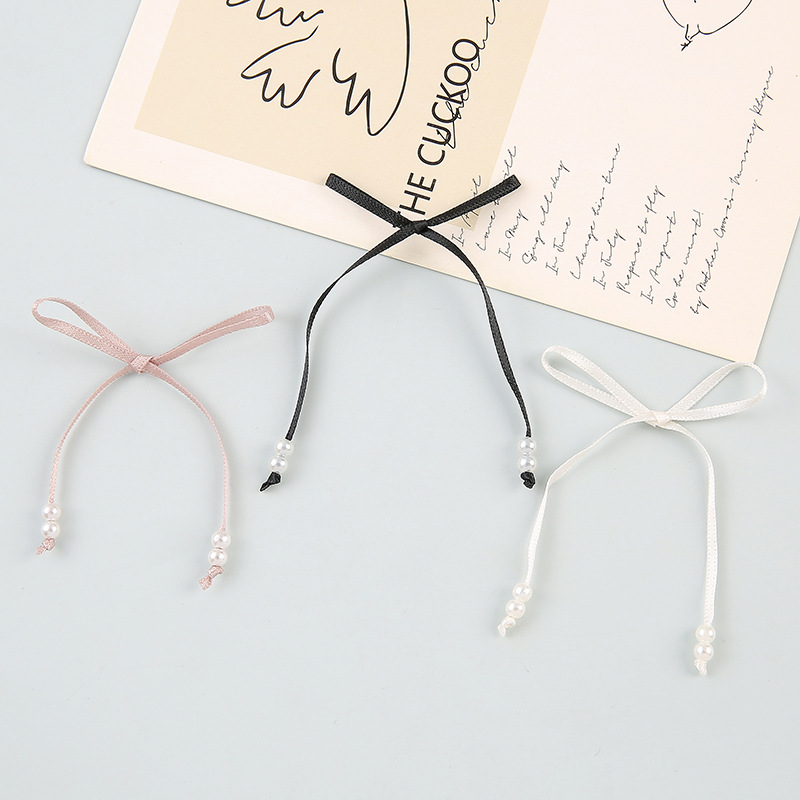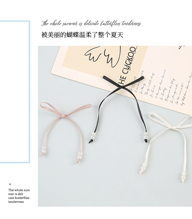 法式粉色蓝色蝴蝶结丝带珍珠发箍感甜美气质细款少女感发卡头辅料 English | 投诉