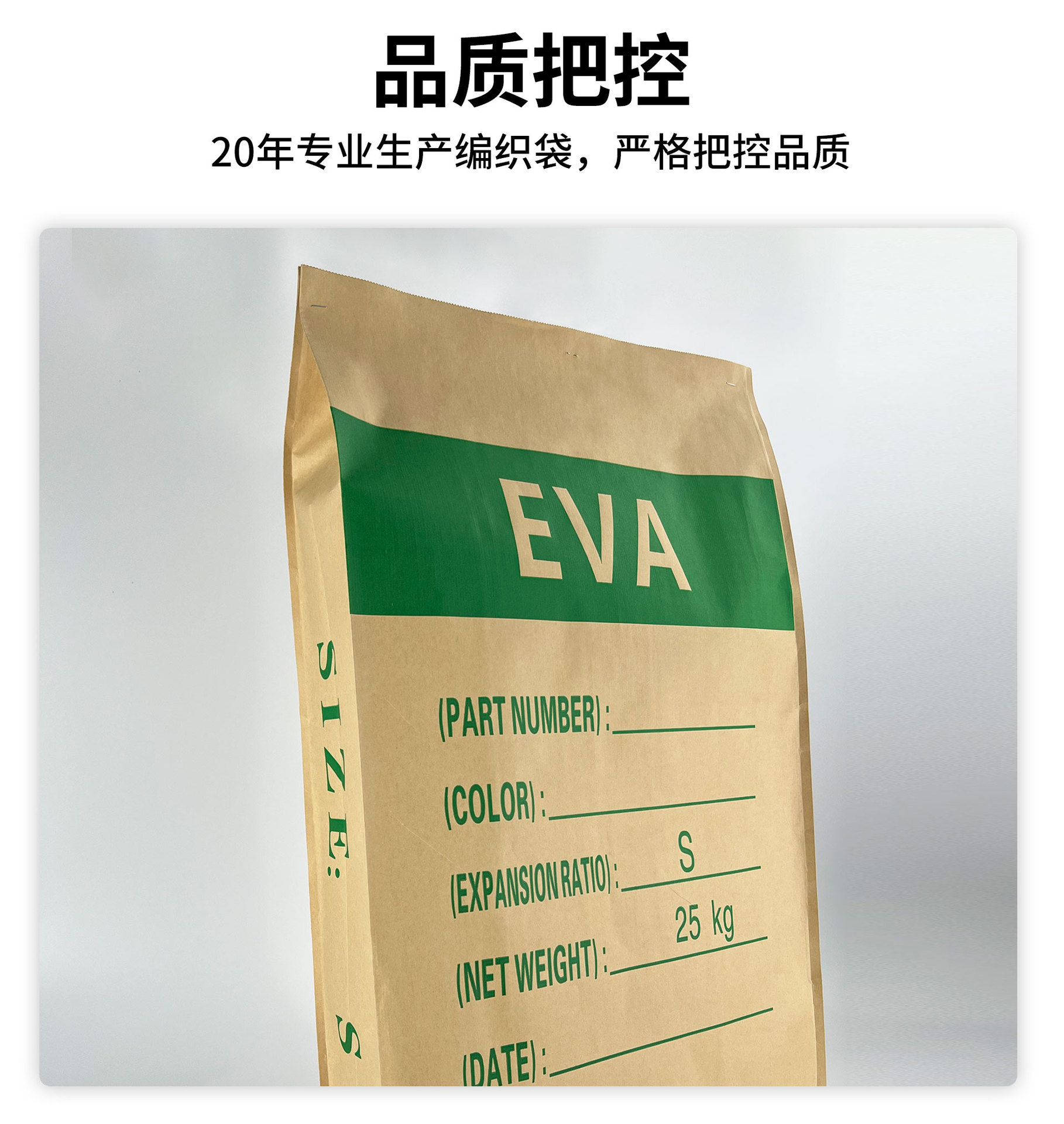 产地: 温州 是否进口: 否 编织料厚度: 可定制 货号: 千爱EVA 材质: 牛皮纸编织袋 承重: 25kg以上 规格尺寸: 定制 加工定制: 是 可承载物料: 塑料,水泥,饲料,化工 可否用于出口: 可以 类型: 纸塑复合袋 印刷: 彩印 用途: 化肥包装,饲料包装,化工包装,建材包装 品牌: 千爱 是否跨境出口专供货源: 是 是否自封口: 是