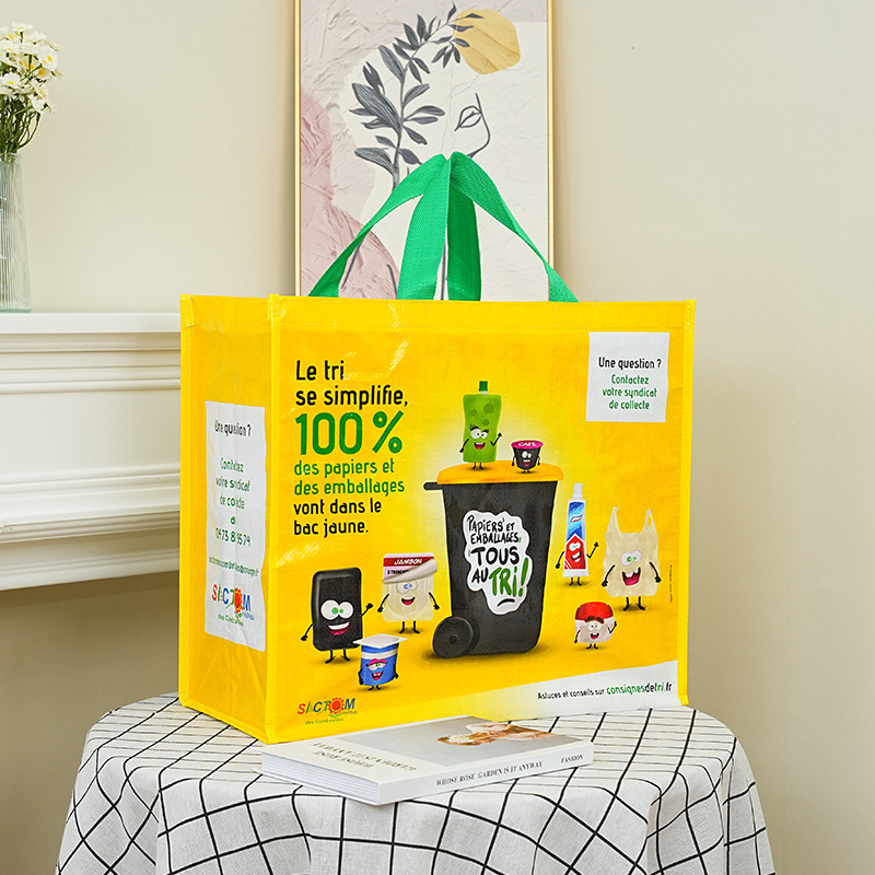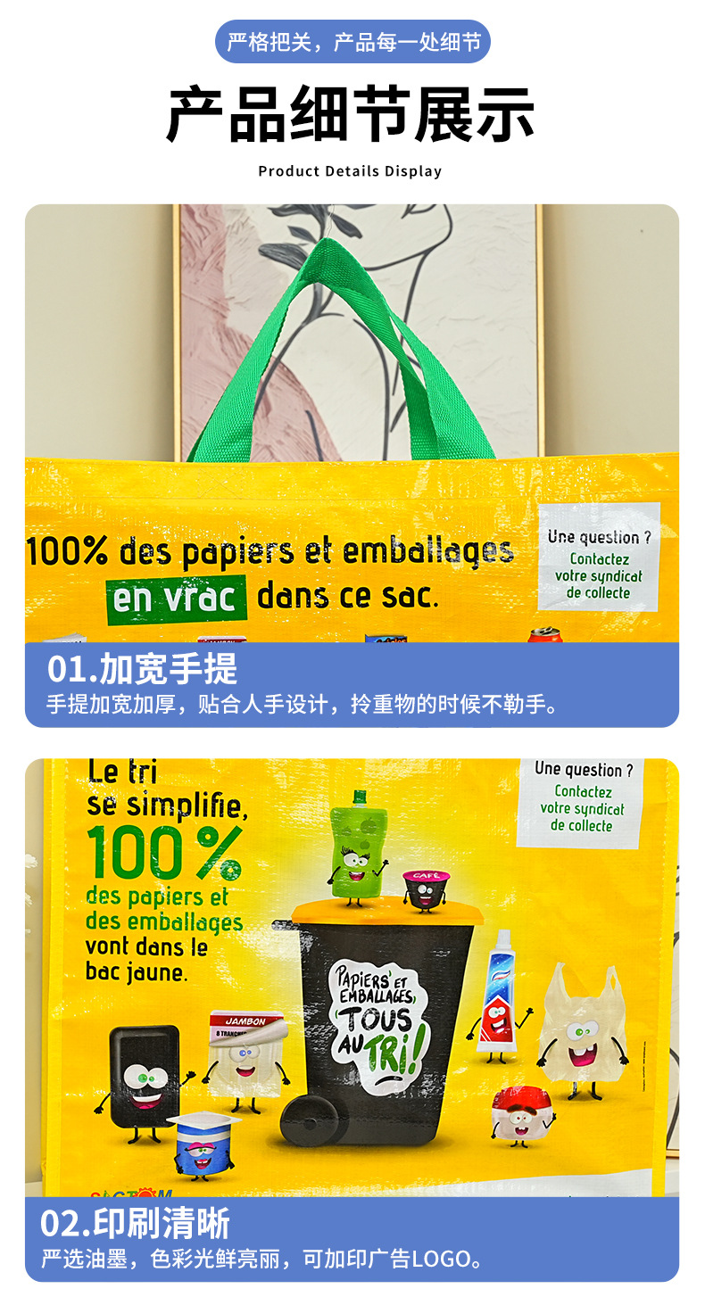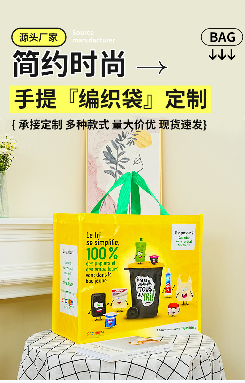 跨境编织手提袋定制可印文字图案加大加宽有底有侧广告促销手提袋 English | 投诉