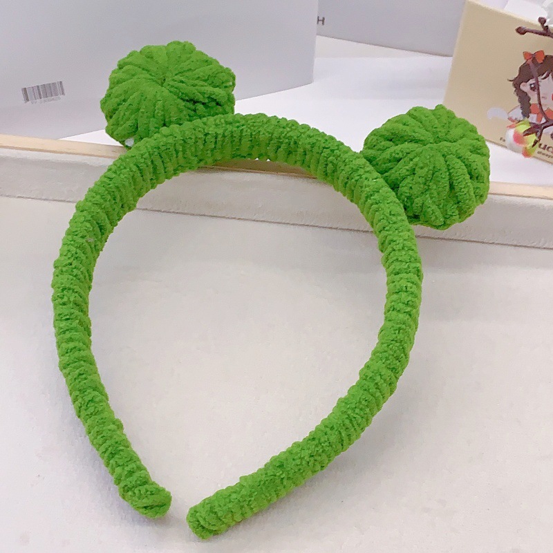 新款发饰批发时尚女款简约毛线青蛙发箍可爱洗脸卖萌发箍头箍 投诉