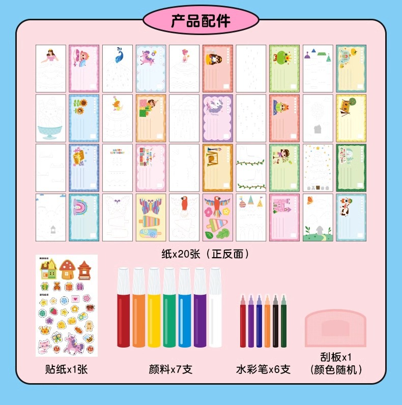 材质: 纸制 品牌: CALLPLAY/科答鸭 是否能够DIY: 是 是否电动: 否 是否多功能: 否 适用年龄: 儿童(4-6岁) 产地: 宁波 货号: CP431 产品类别: diy涂鸦彩绘 规格: 一套可做20张 包装方式: 彩盒 加工定制: 是 加工方式: LOGO贴牌 是否外贸: 是 外贸类型: 出口 是否有动漫形象: 否 是否有导购视频: 是 是否专供外贸: 否 3C配置类别: 14岁以下的纸制玩具 是否跨境出口专供货源: 否
