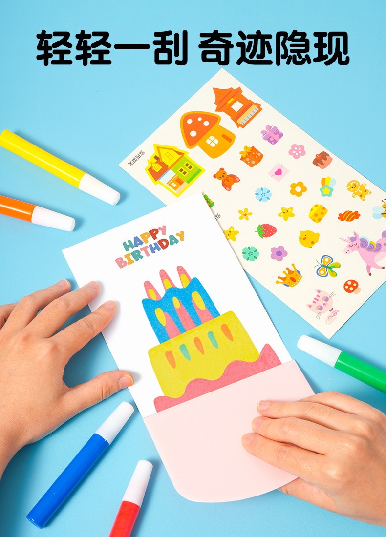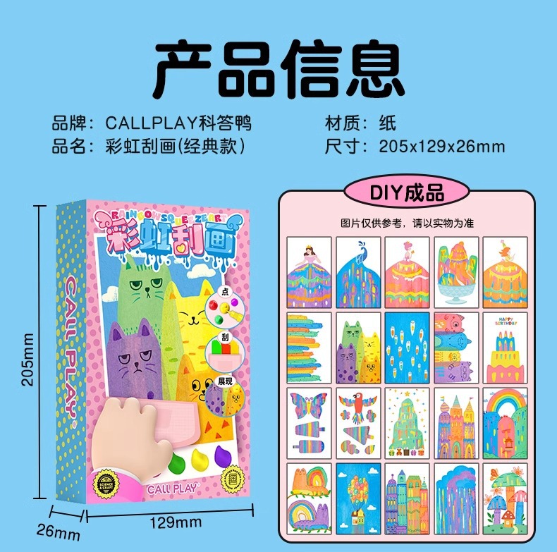 科答鸭彩虹点彩刮刮画diy儿童趣味书签手工涂鸦刮画纸明信片玩具 English | 投诉