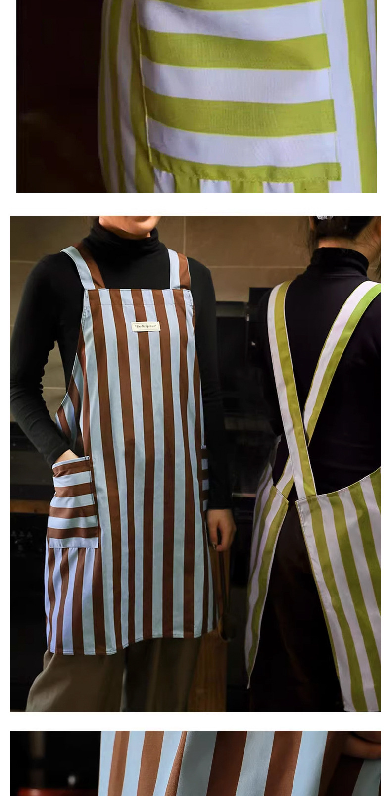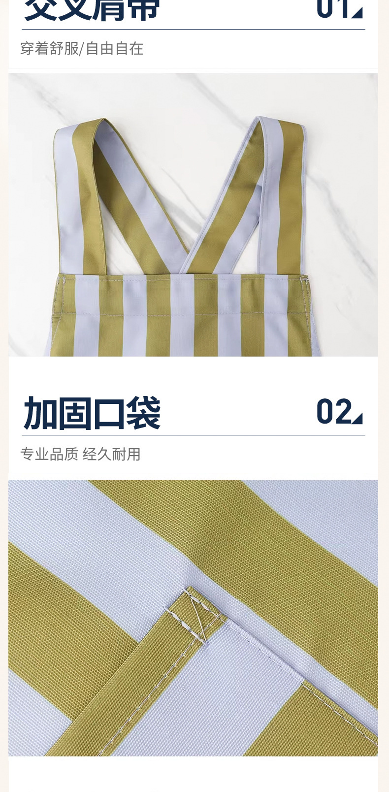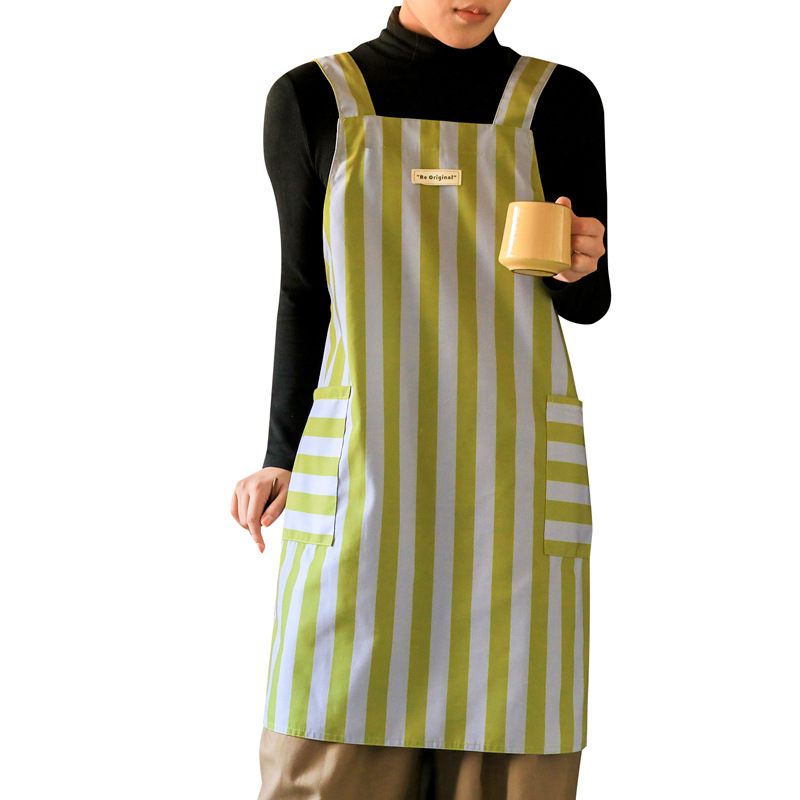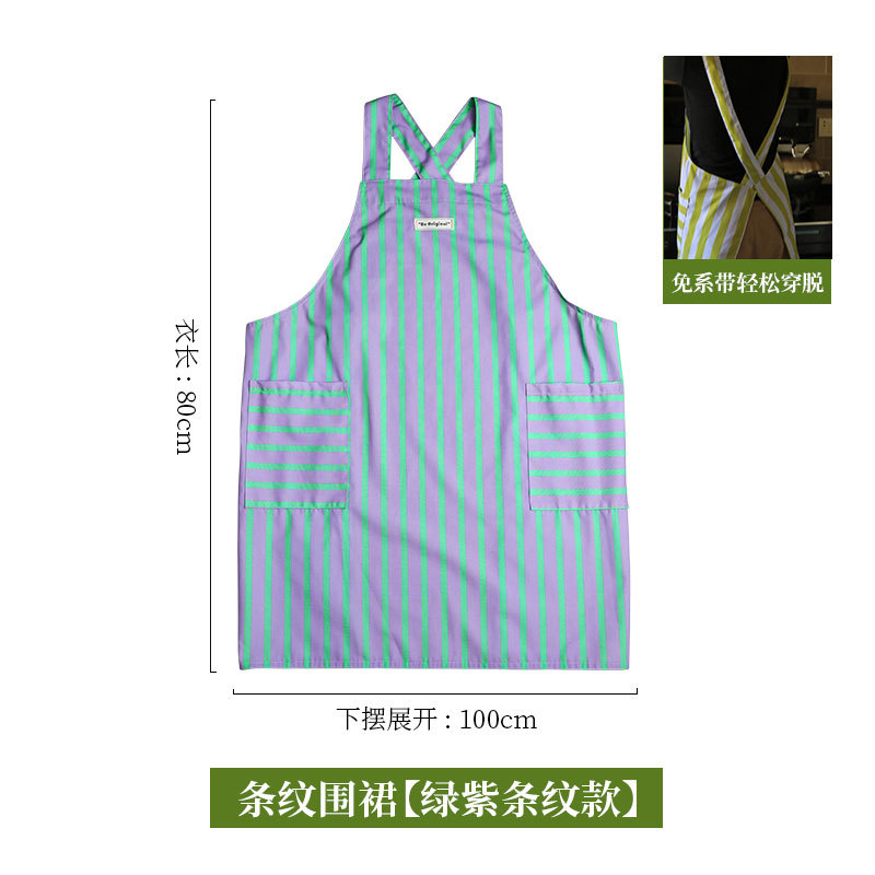 帆布防污条纹围裙家用厨房做饭新款耐磨工作服定制餐饮专用批发女 English | 投诉