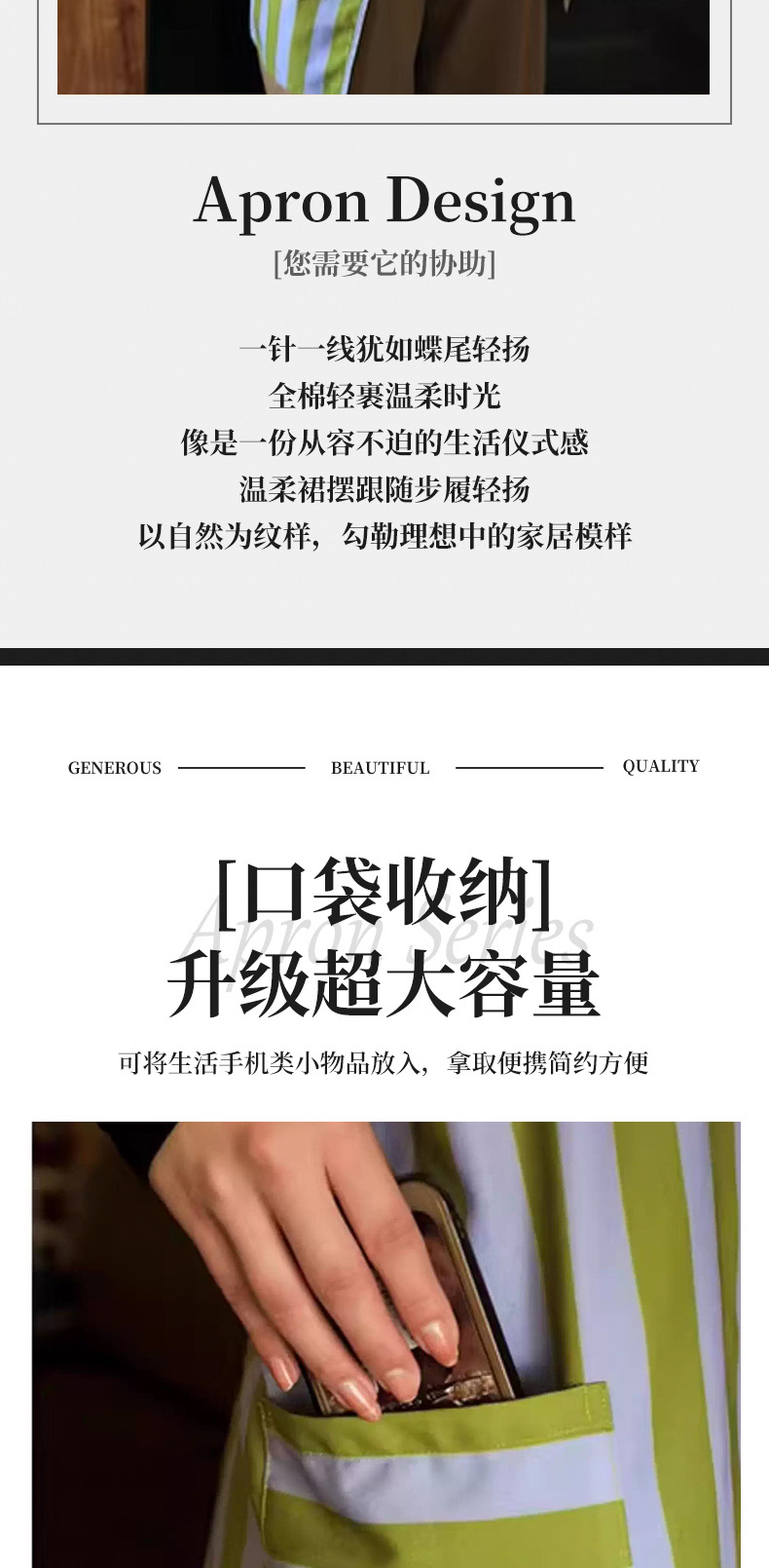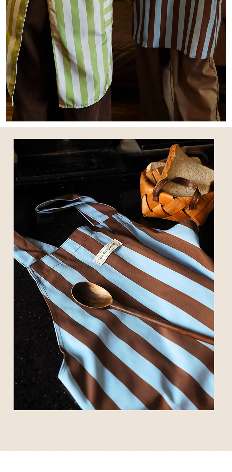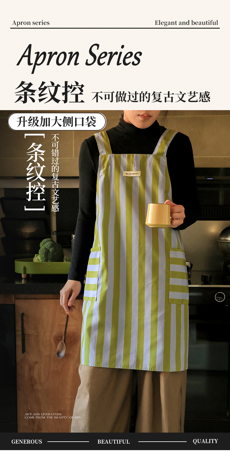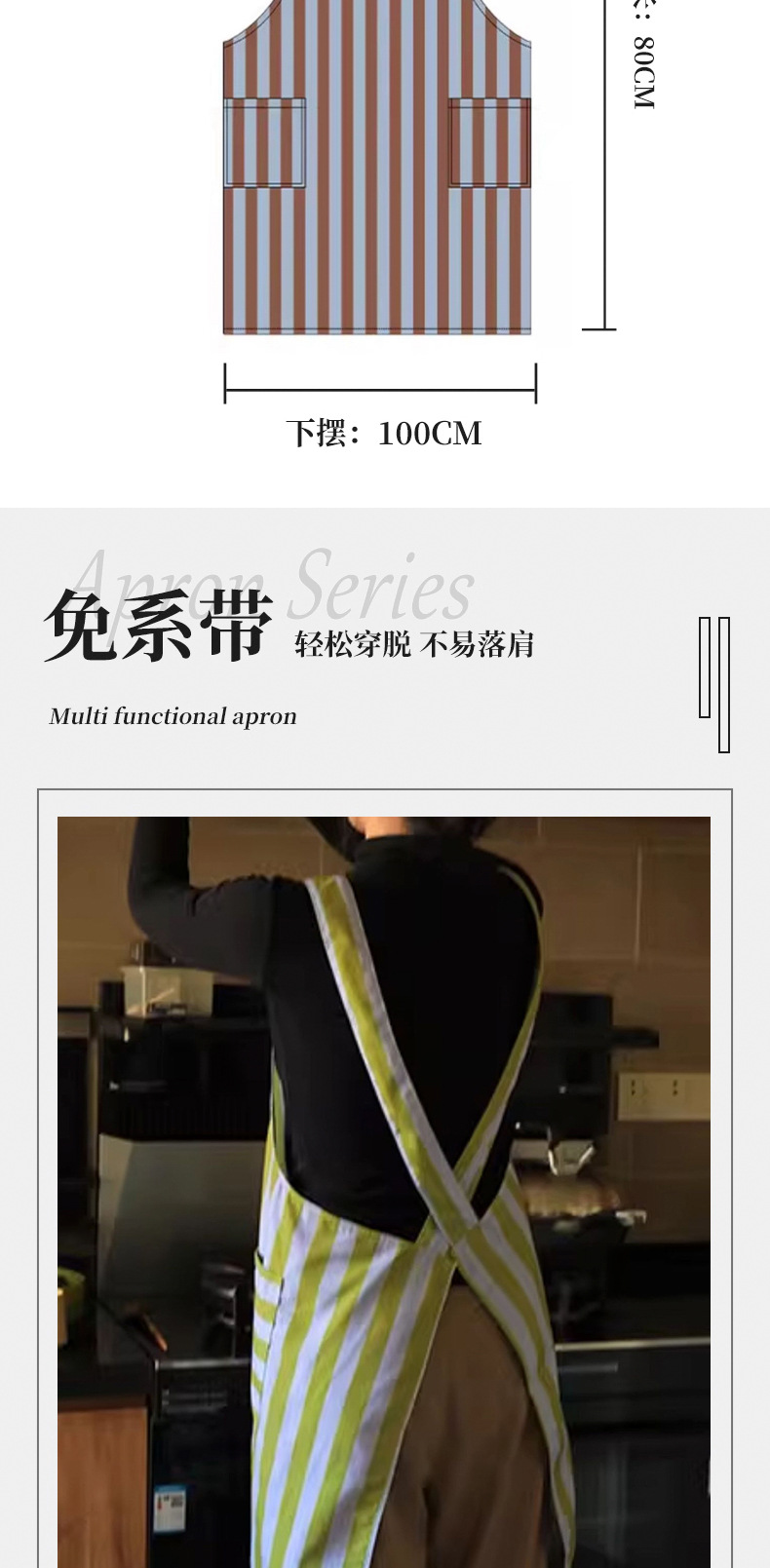 帆布防污条纹围裙家用厨房做饭新款耐磨工作服定制餐饮专用批发女 English | 投诉