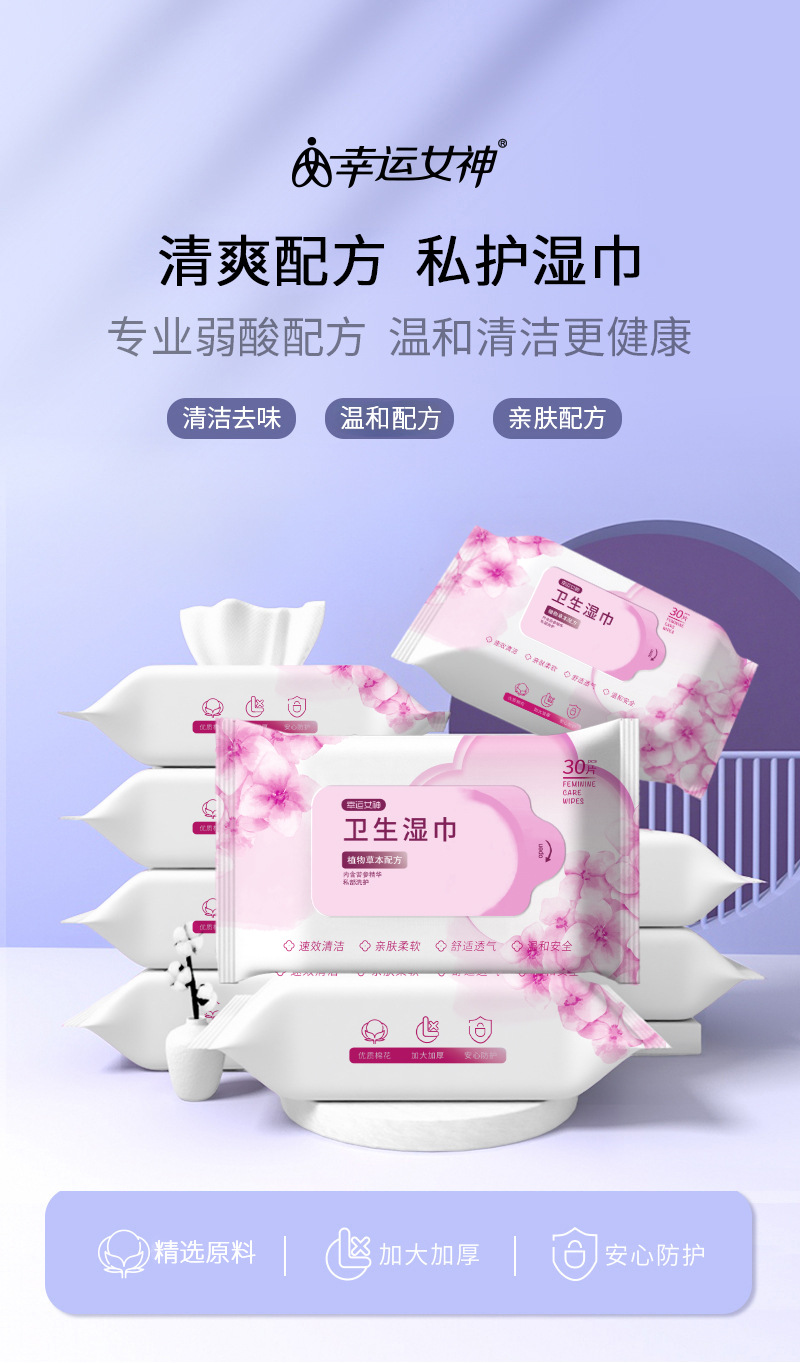 品牌: 幸运女神 种类: 卫生湿巾 重量: 230 适用对象: 成人 型号: xyns-301 是否进口: 否 加工定制: 是 品牌类型: 自有 是否独立包装: 否 产地: 浙江 适用场合: 酒店,居家 保质期: 2年 香型: 无香 用途: 护理 包装: 30片装 货号: xyns-301 有可授权的自有品牌: 是 是否跨境出口专供货源: 是 卫生许可证号: 浙卫消证字(2006)第0071号 颜色分类: 【30片装】私处护理湿巾