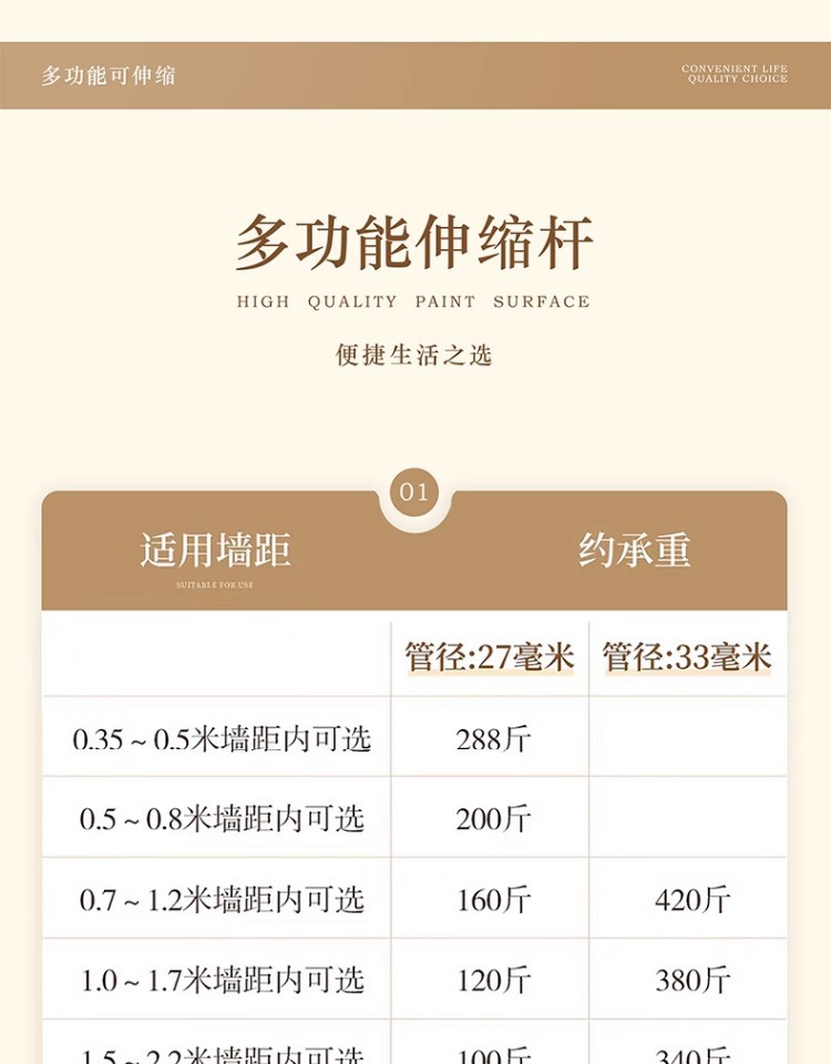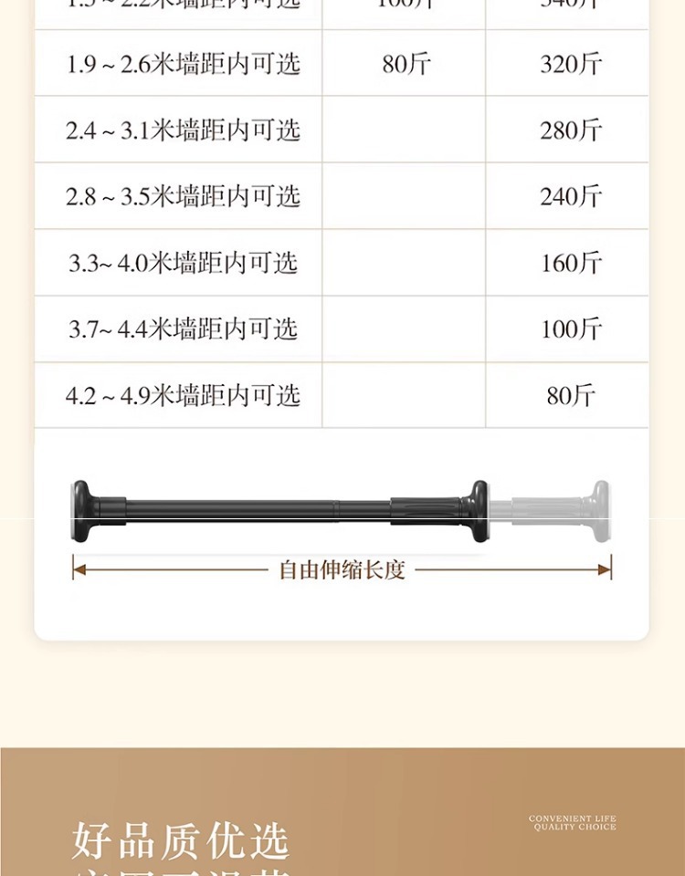| 可伸缩:2.1~2.6米墙距内可选【33管径专用尺寸】 | ¥2613 | 875828个可售 |