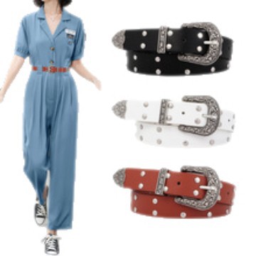 跨境y2k复古腰带女 时尚百搭辣妹风装饰牛仔裤带双排铆钉女士皮带 English | 投诉