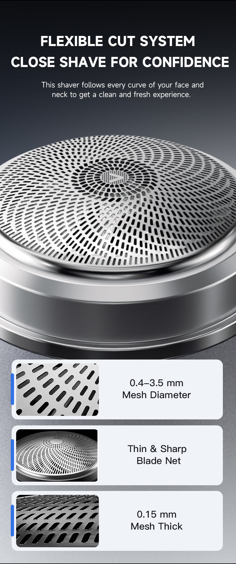 品牌: 映趣(家电) 剃须刀刀头: 旋转式1刀头 电源方式: 充电款 清洁方式: 全身水洗 功能: 全身水洗 是否有浮动结构: 否 是否内置电池: 内置电池 续航时间: 90天 颜色: 高档时尚灰 续航时长: 50天以上 噪音: 36dB以下