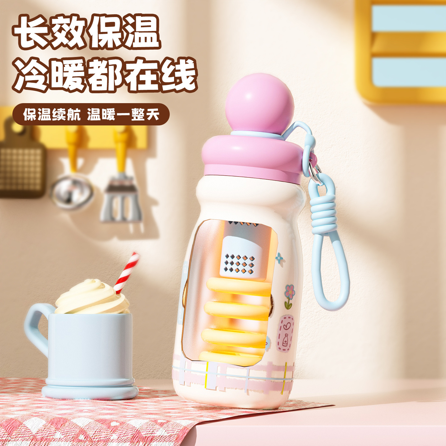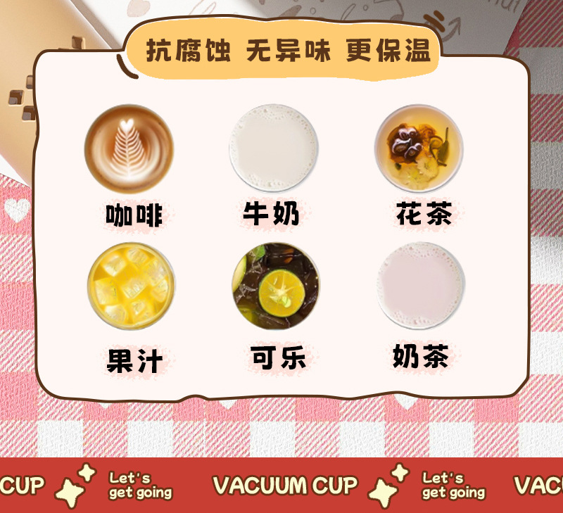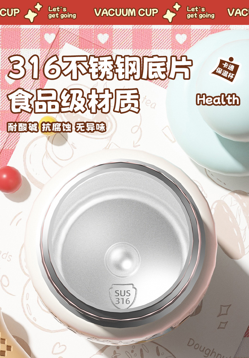 内胆材质: 316不锈钢 品牌: MOLLY 功能: 家用,便携,保温 保温性能: 6-12小时 外壳材质: 201不锈钢 货号: FM116 样式: 带提绳,大容量,带吸管,直身杯 材质: 316不锈钢 风格: 可爱风 是否进口: 否 重量: 0.5 kg/个