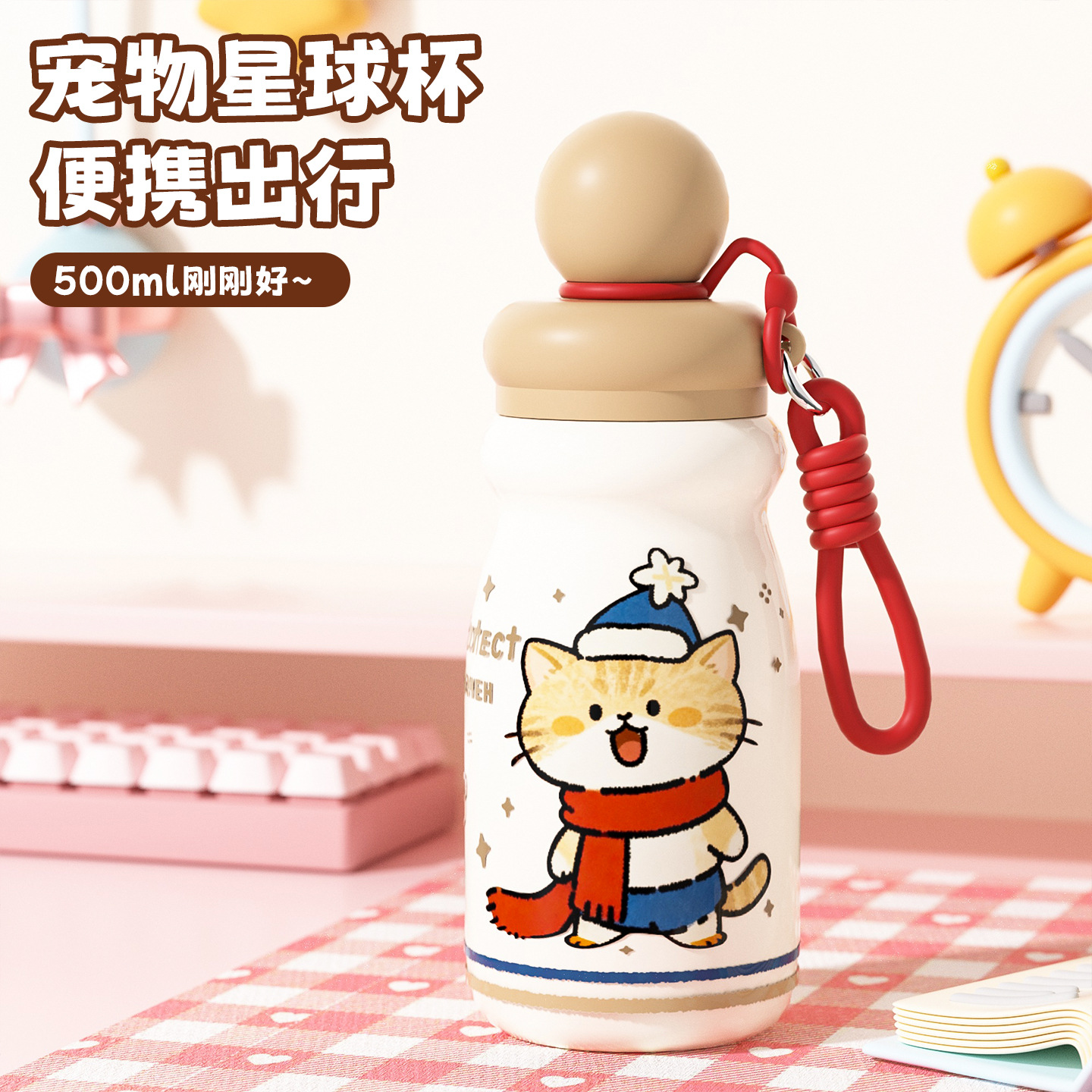 新款可爱卡通宠物星球保温杯高颜值儿童不锈钢便携硅胶吸管饮水杯