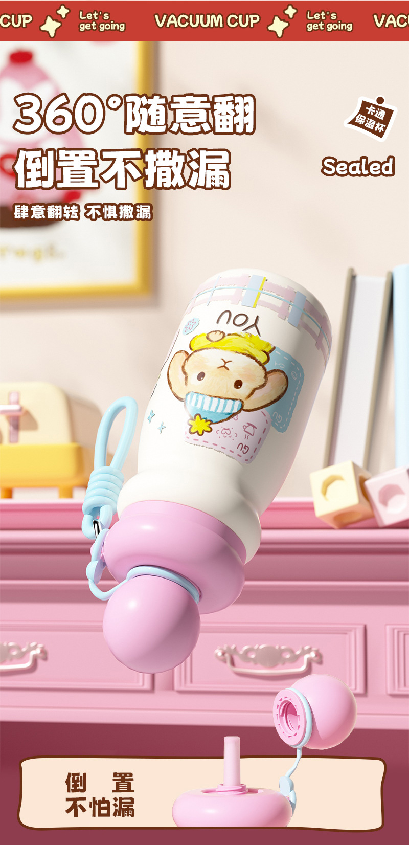 新款可爱卡通宠物星球保温杯高颜值儿童不锈钢便携硅胶吸管饮水杯 English | 投诉