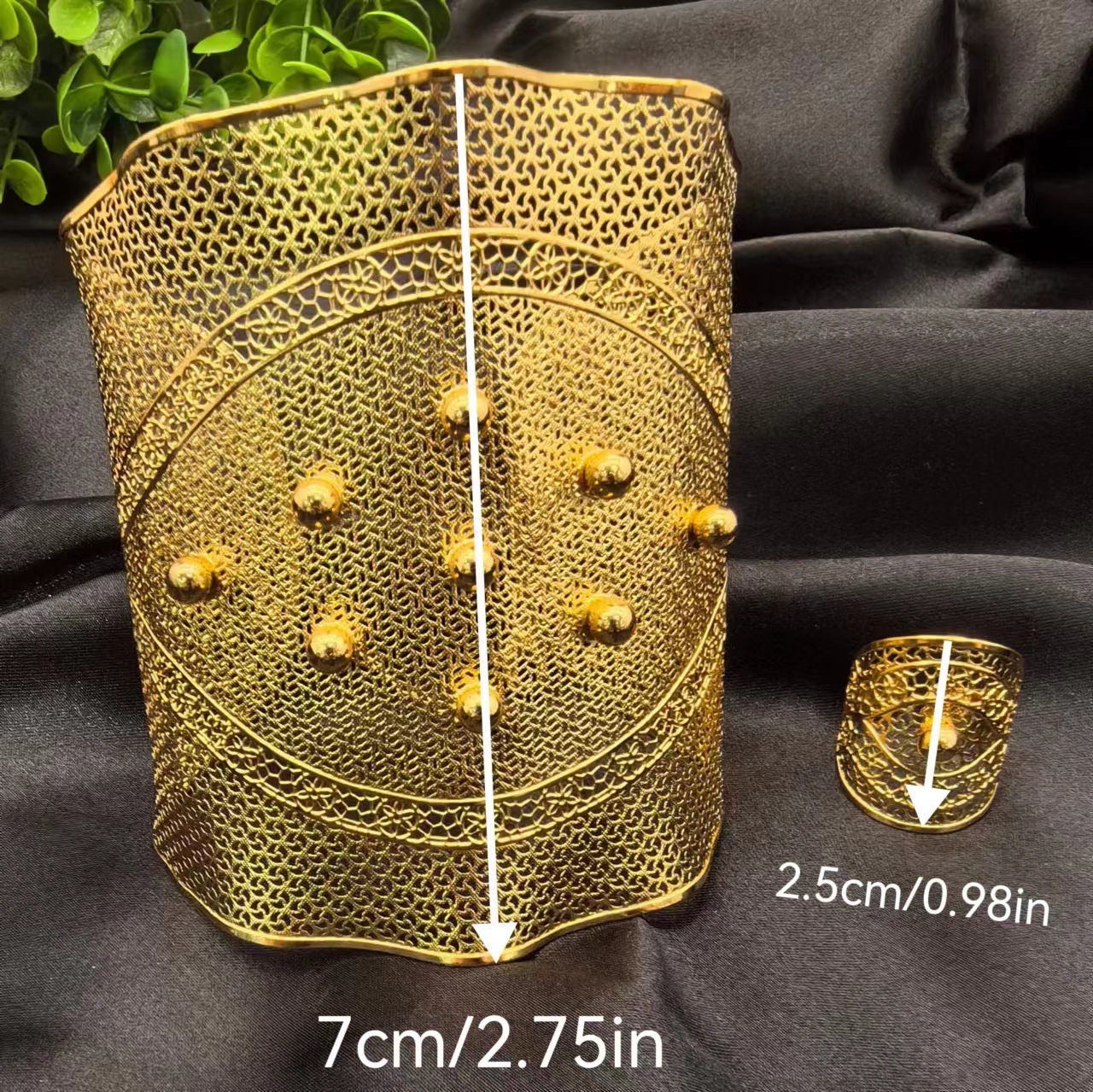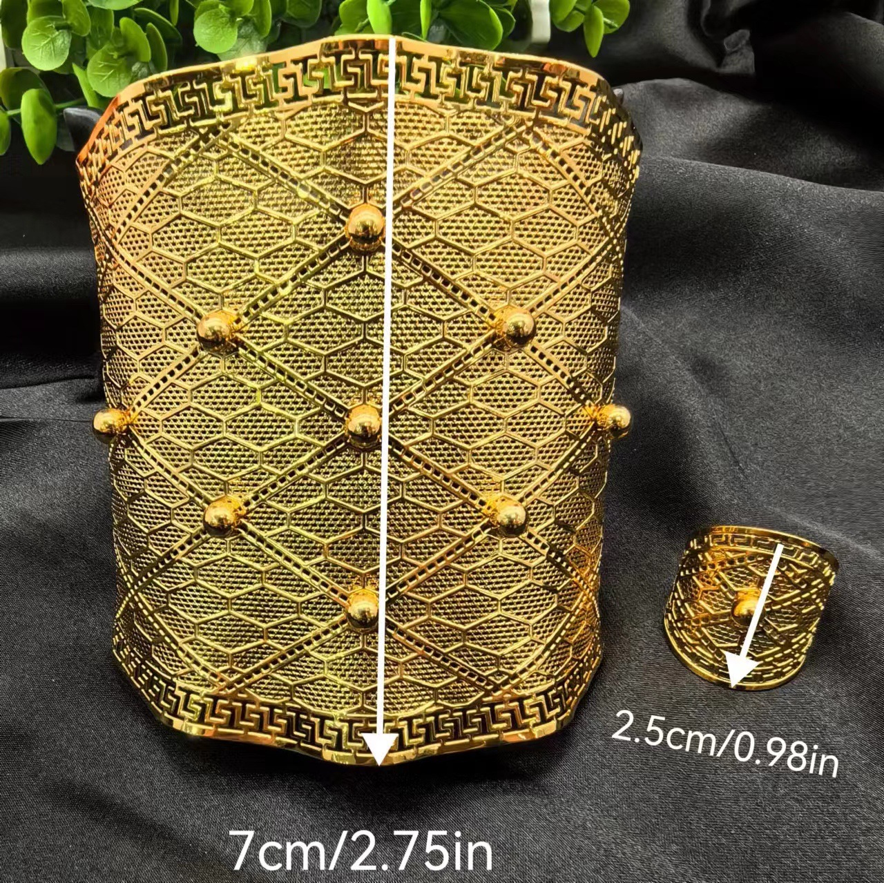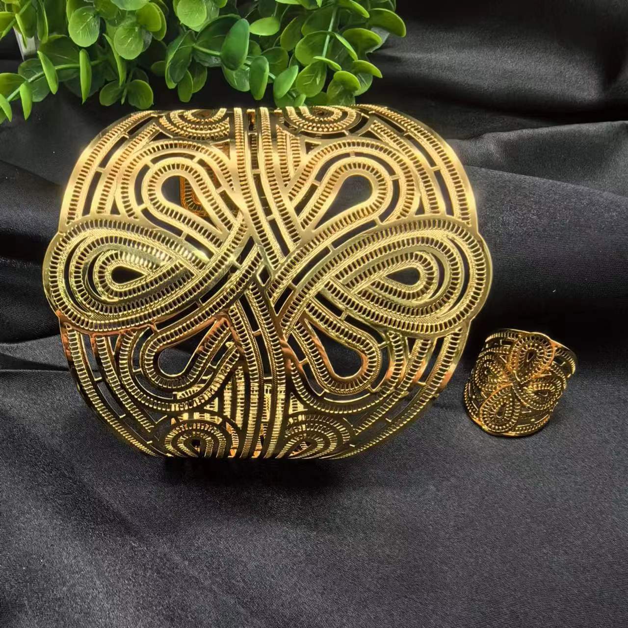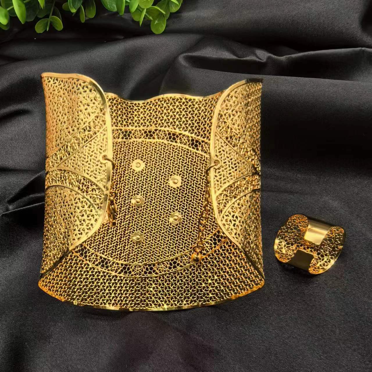 2024新款开口花朵大手镯戒指套装欧美迪拜非洲新娘沙金手镯不掉色 投诉