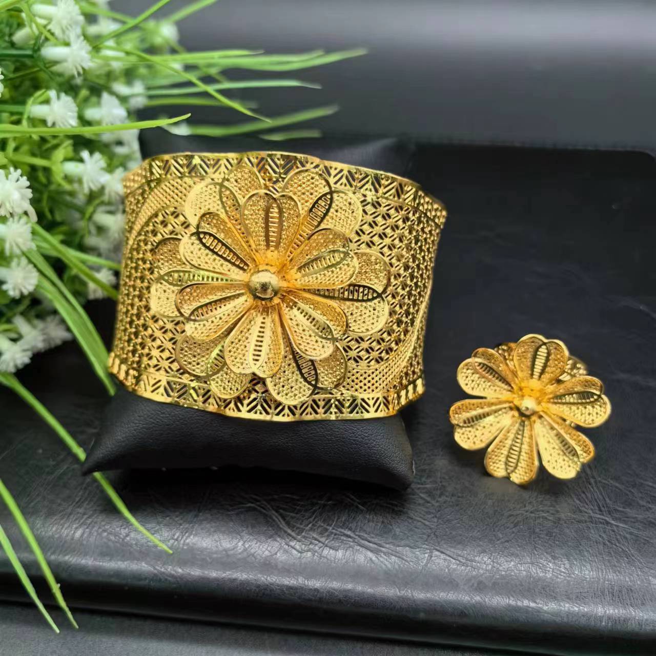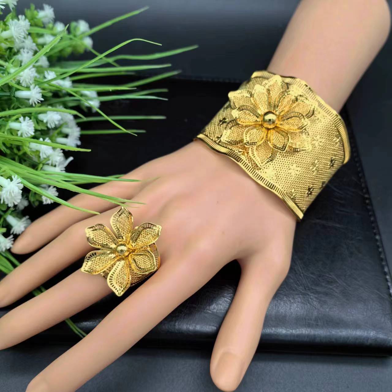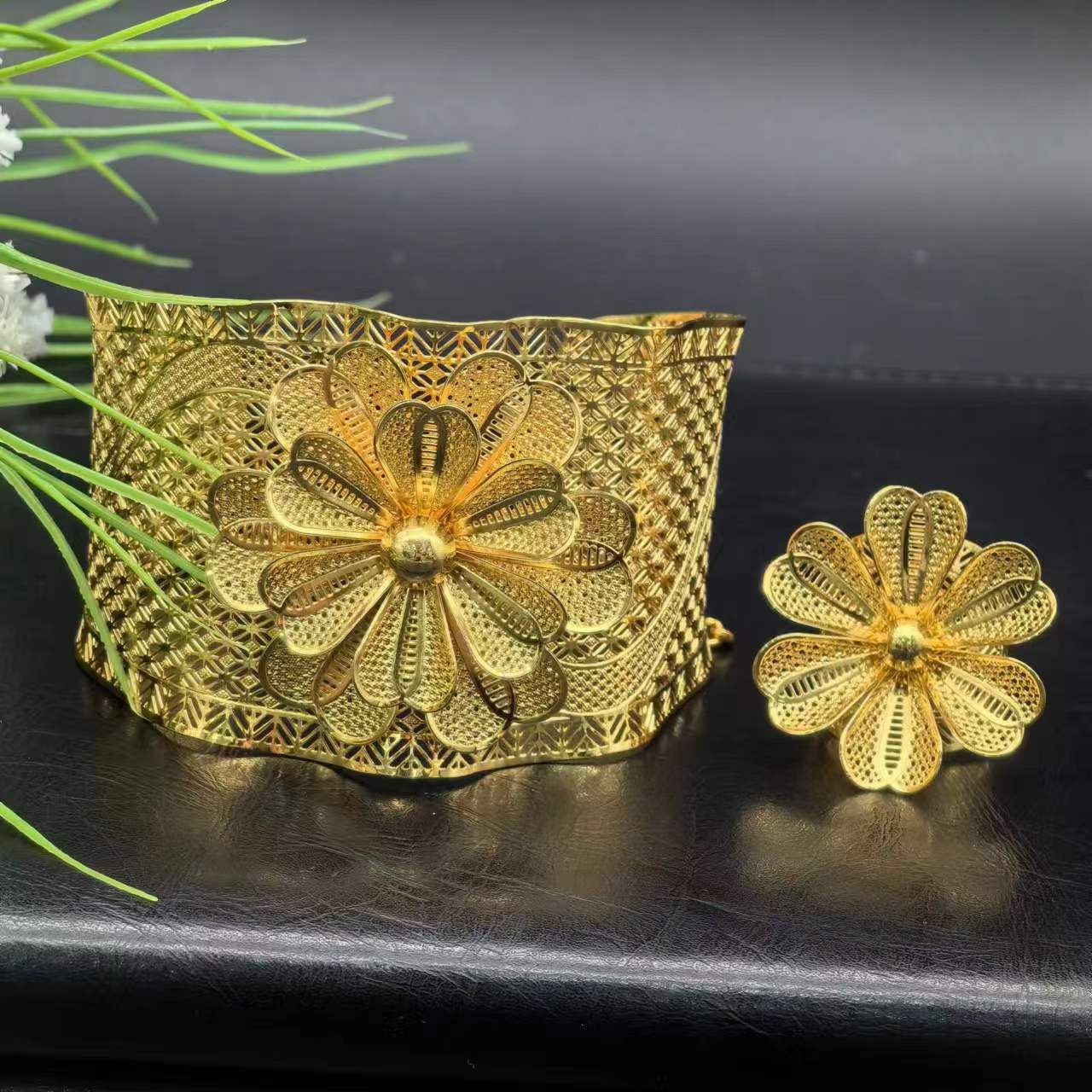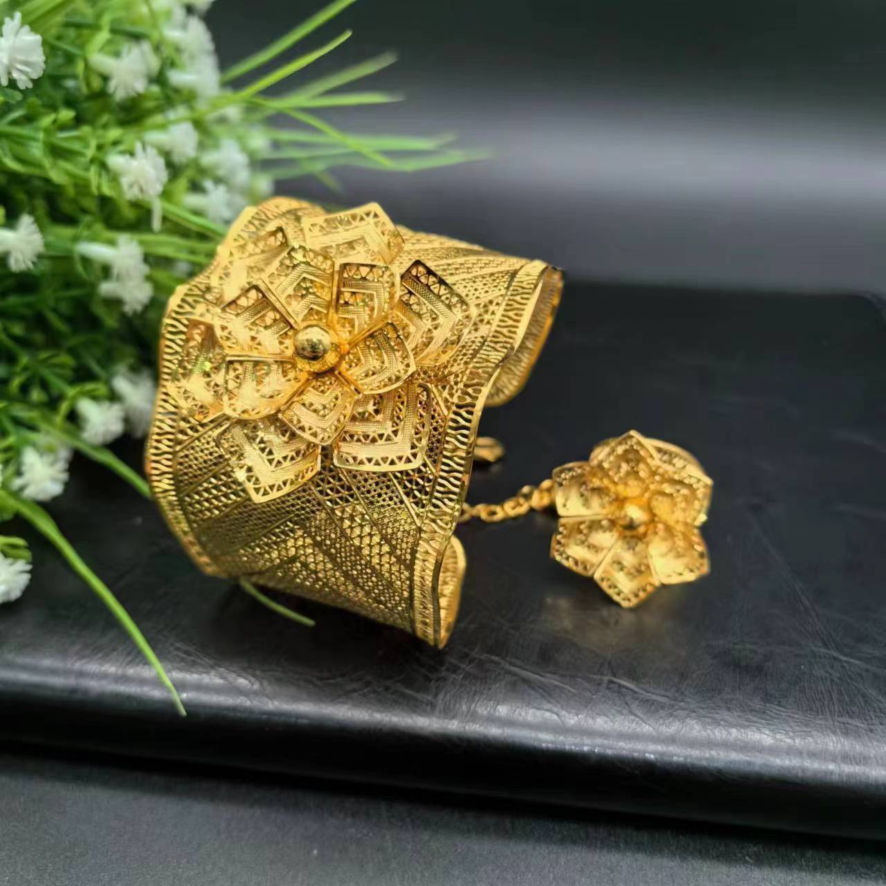 热销24K镀金手镯迪拜新娘印度尼日利亚女式婚礼沙金手镯饰品批发