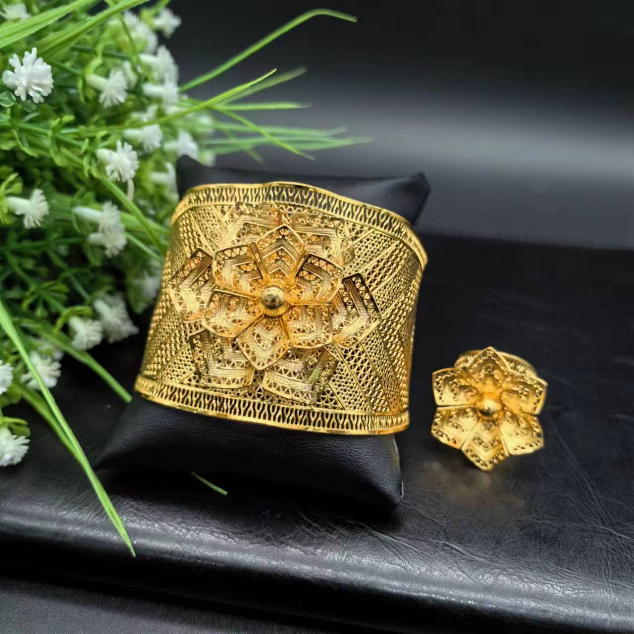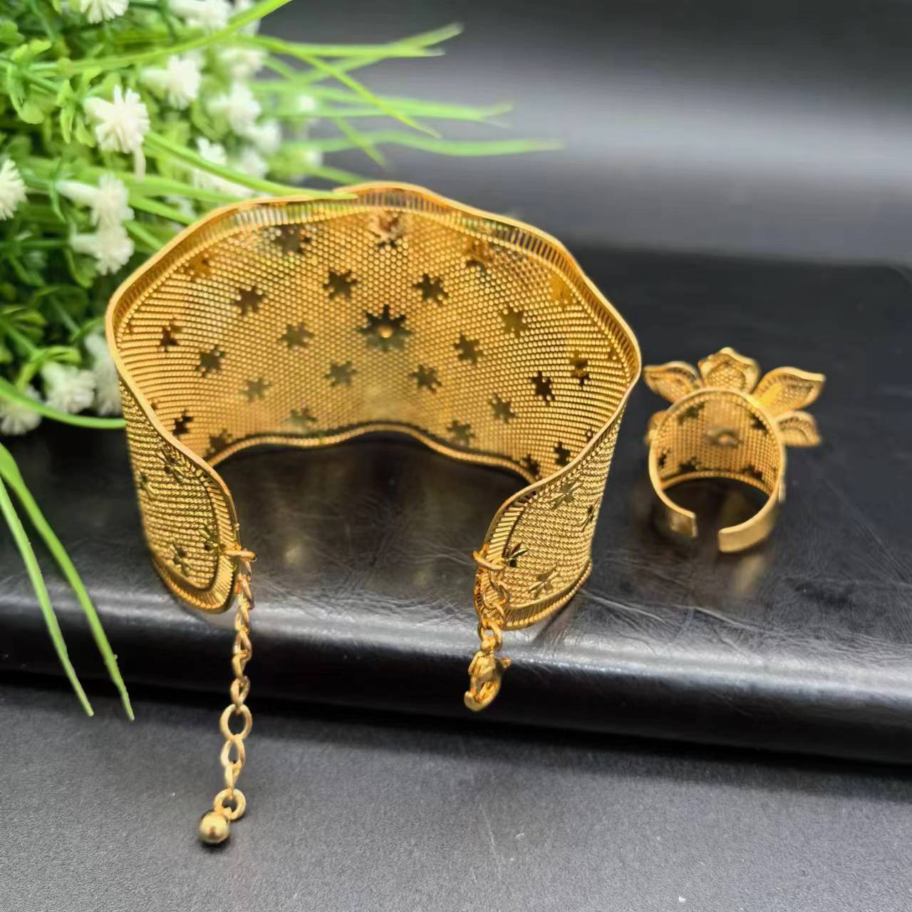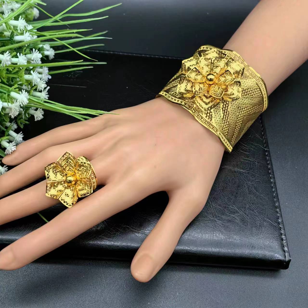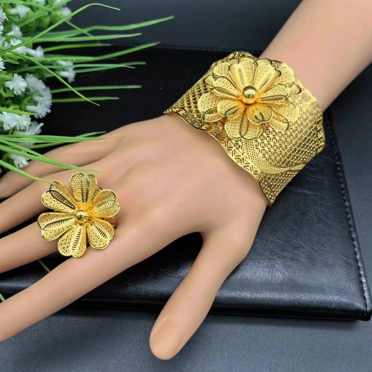 热销24K镀金手镯迪拜新娘印度尼日利亚女式婚礼沙金手镯饰品批发