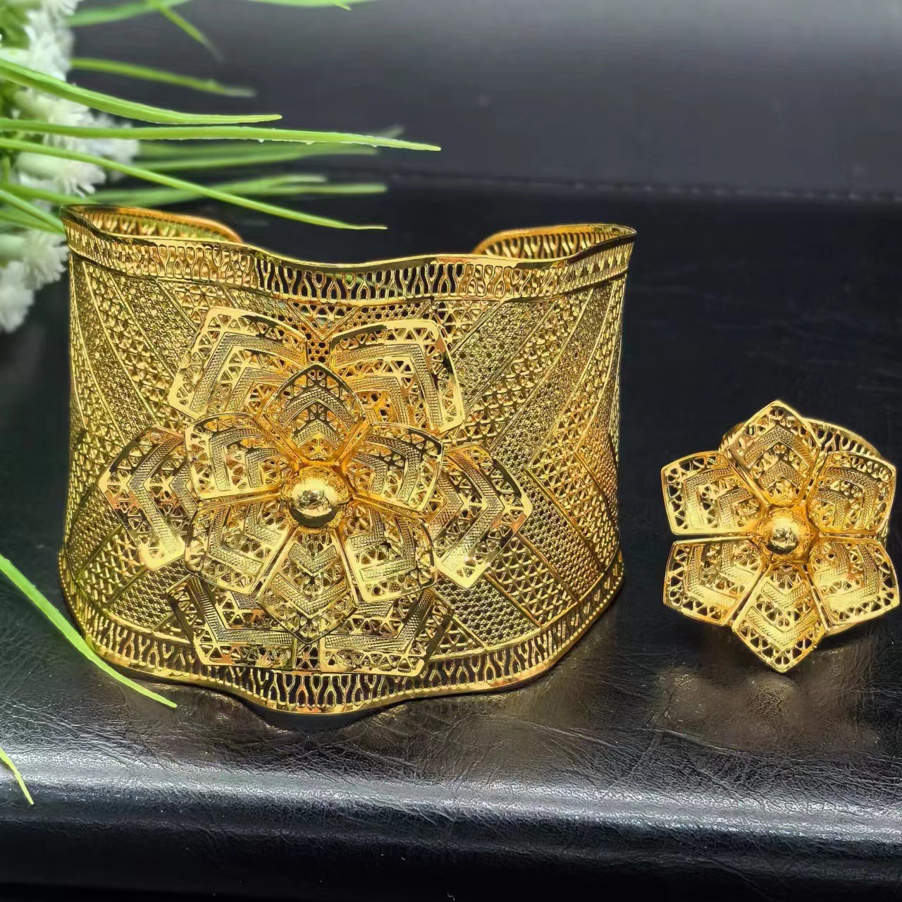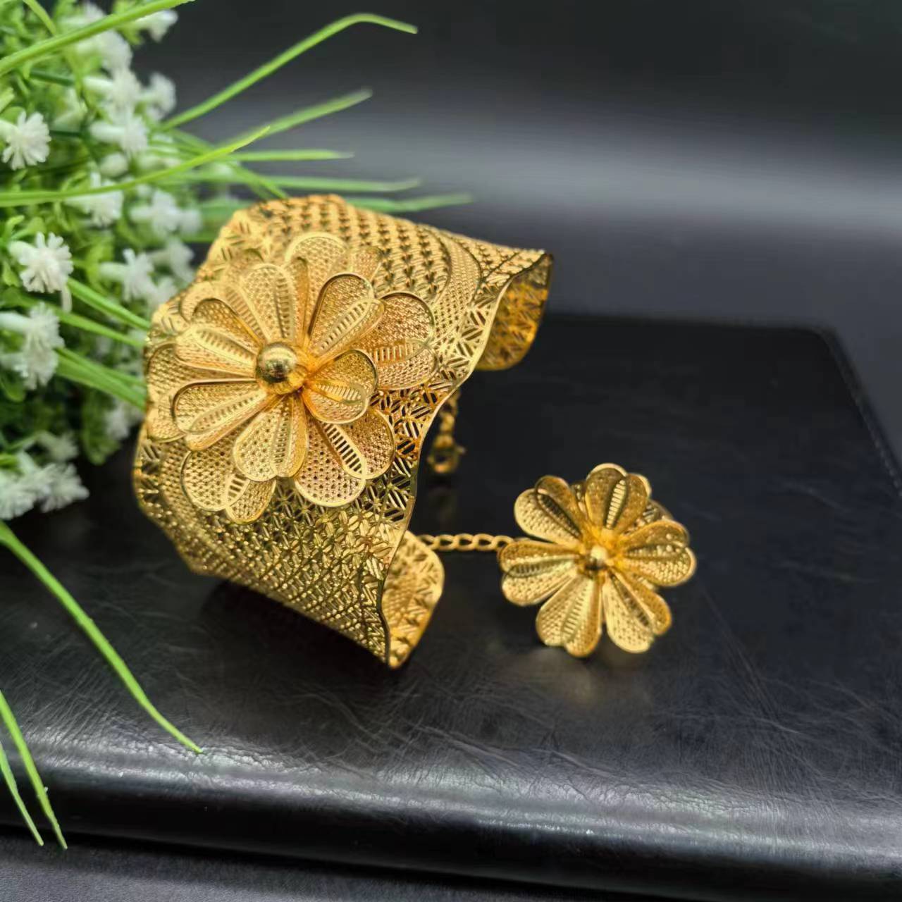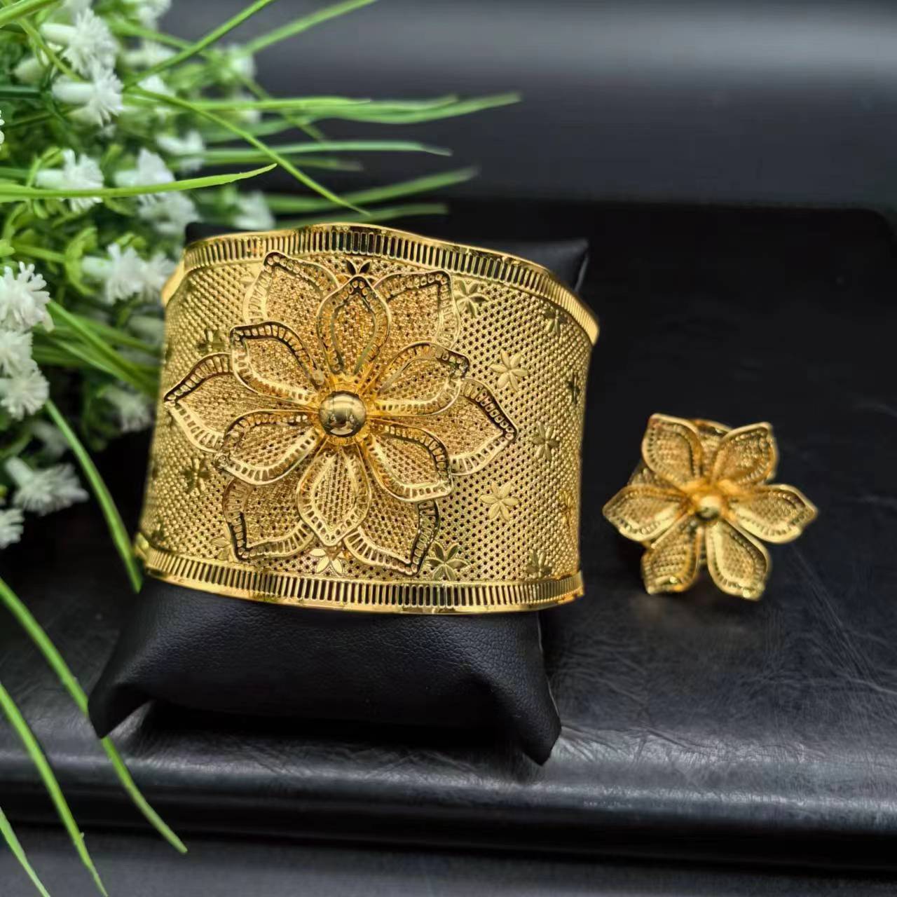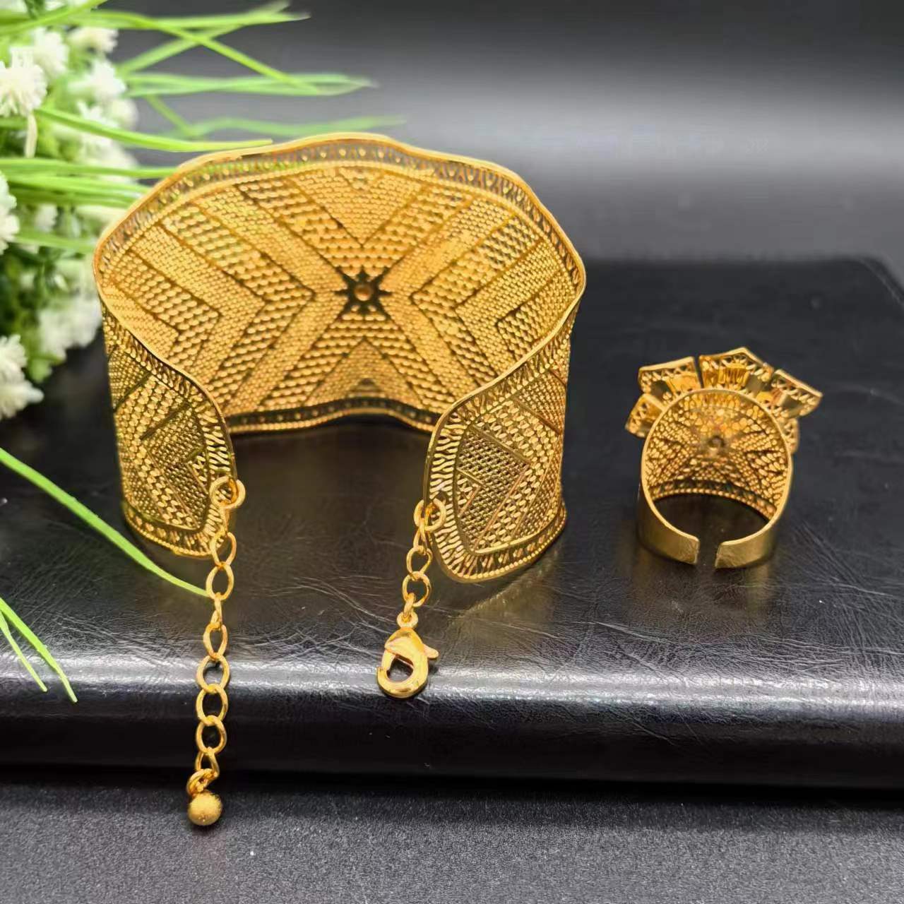 热销24K镀金手镯迪拜新娘印度尼日利亚女式婚礼沙金手镯饰品批发