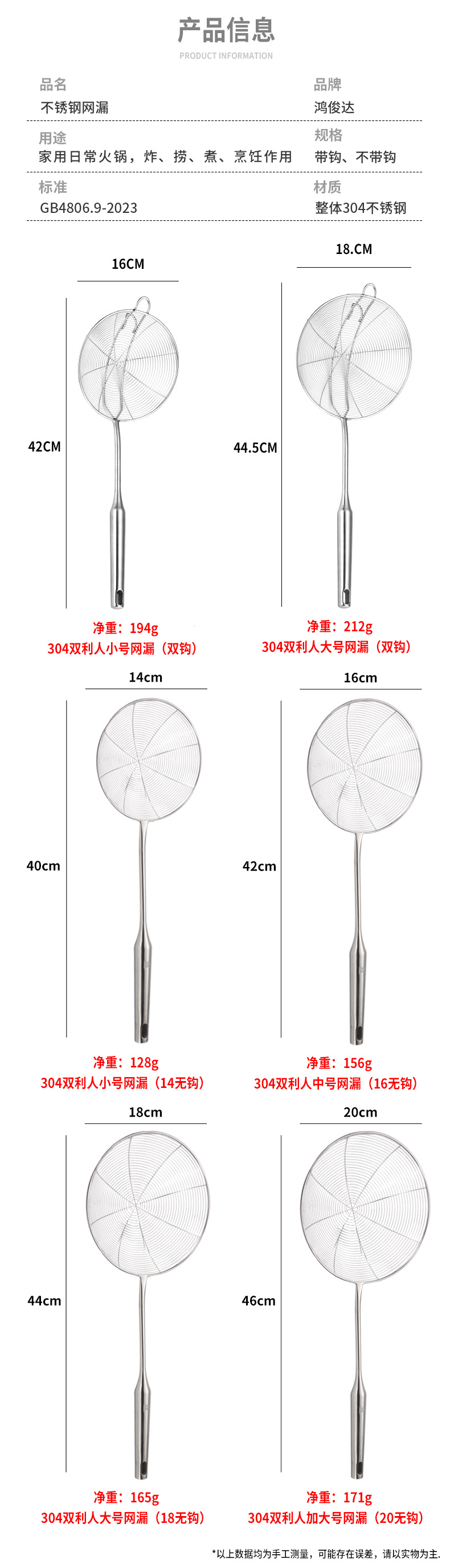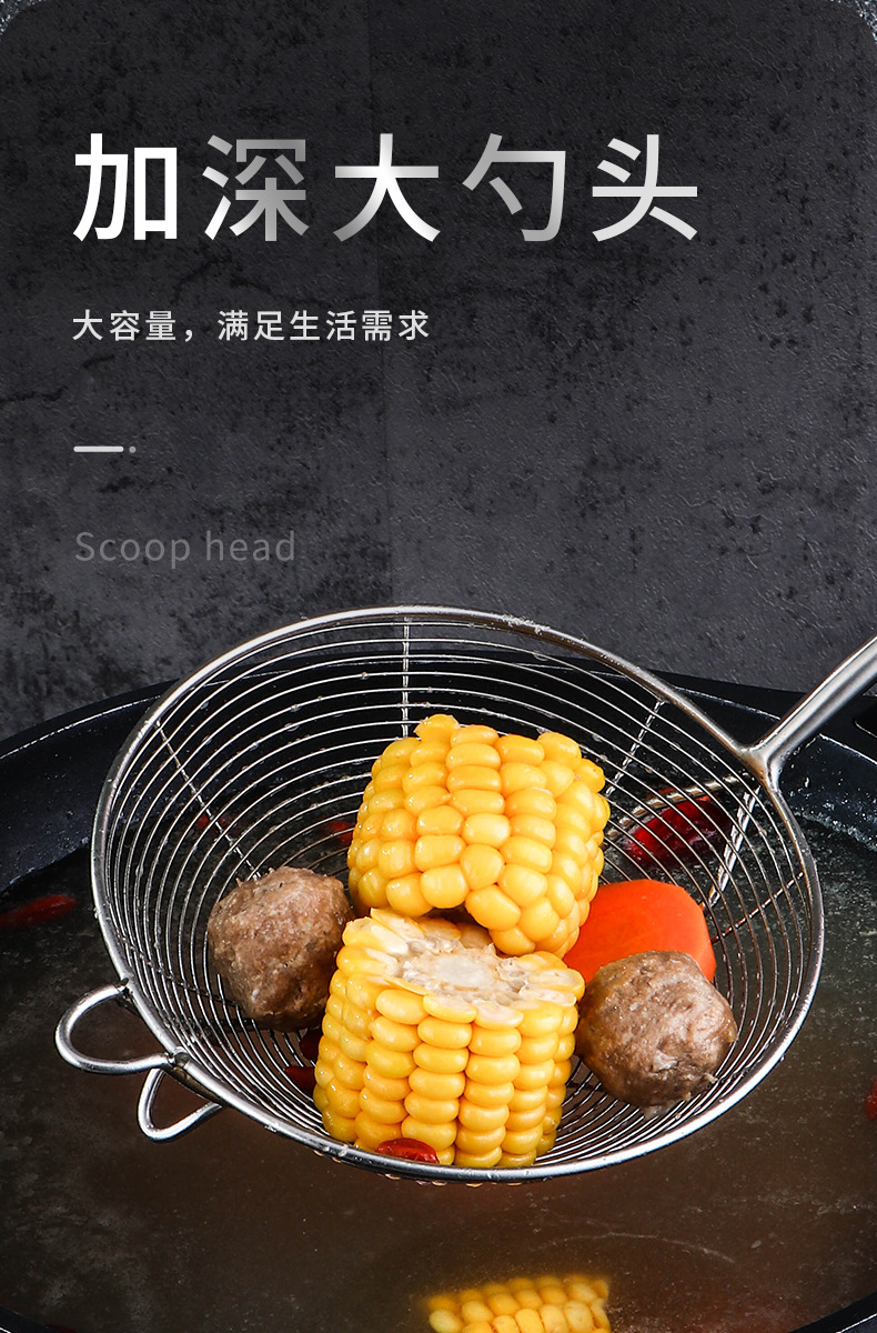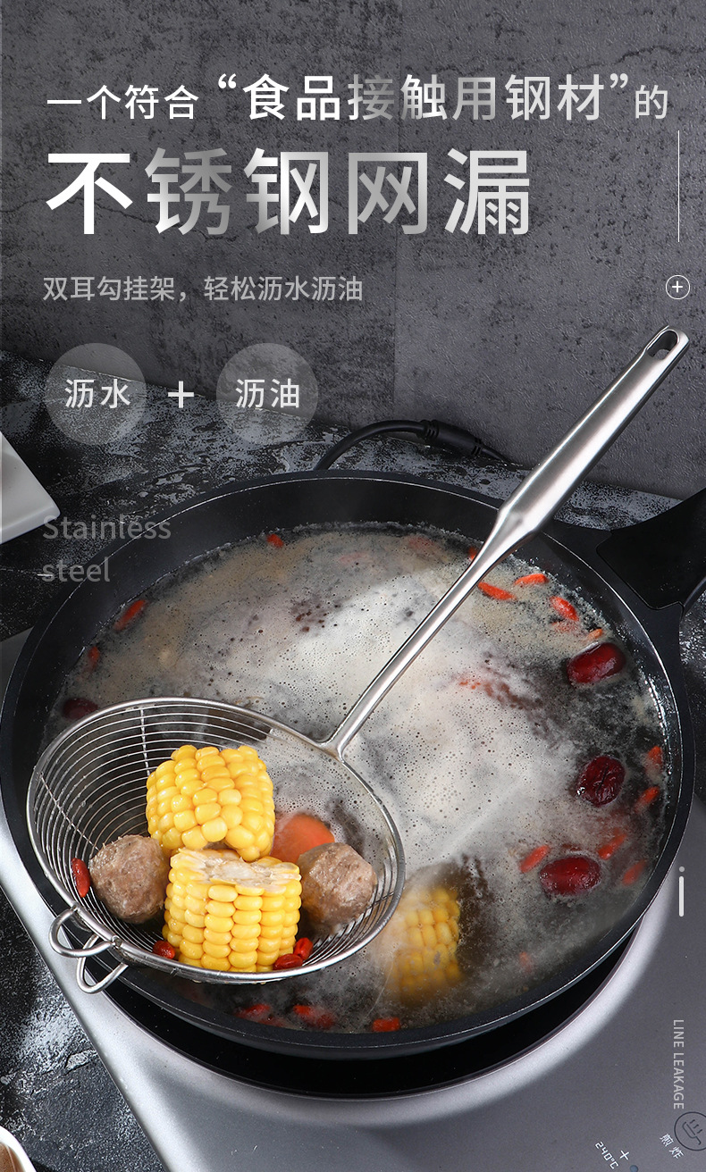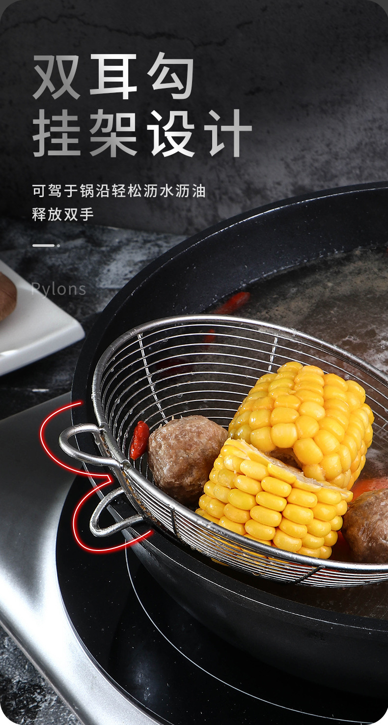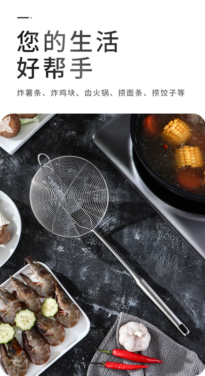 鸿俊达304不锈钢网漏厨房双钩漏勺家用油炸过滤网商用捞饺捞面勺