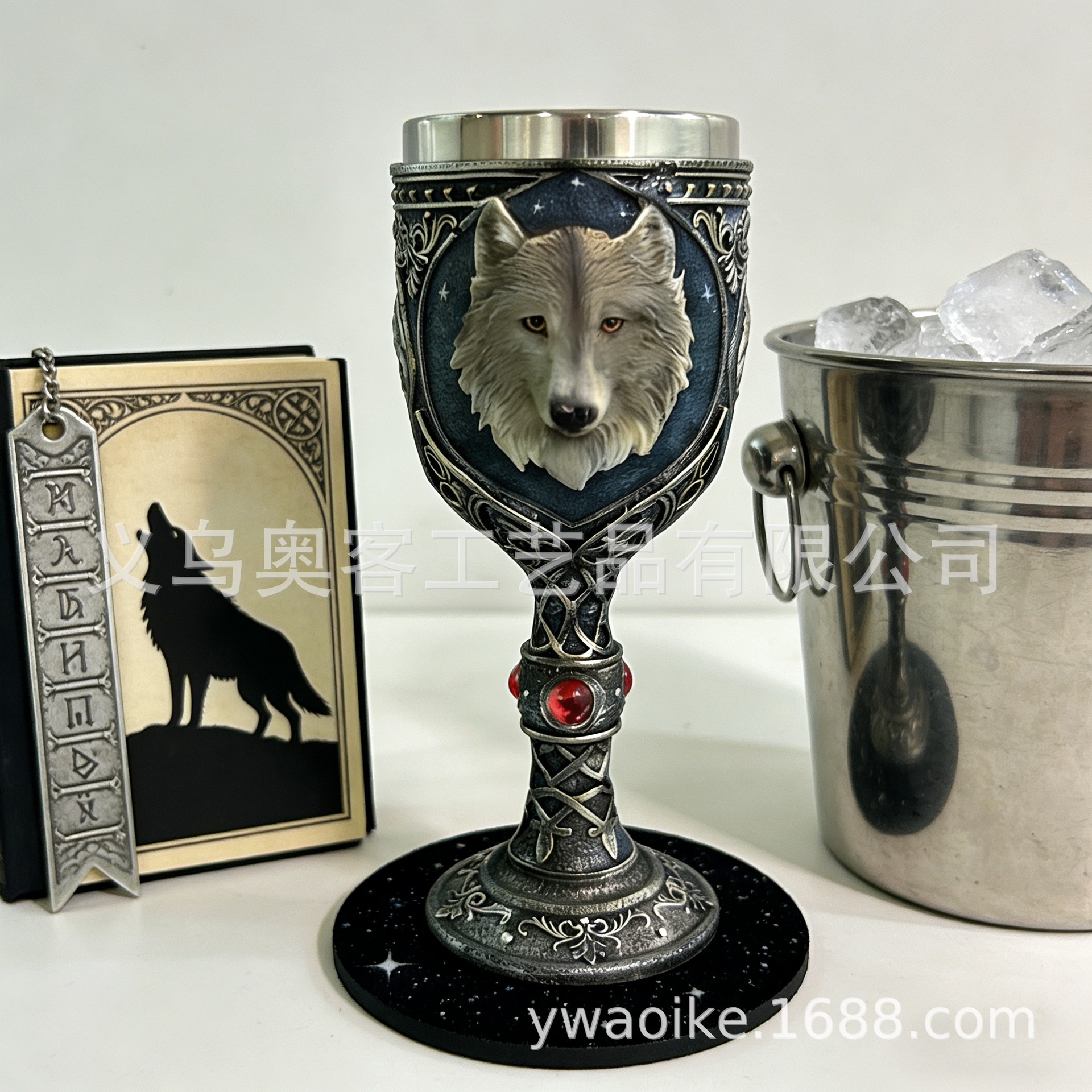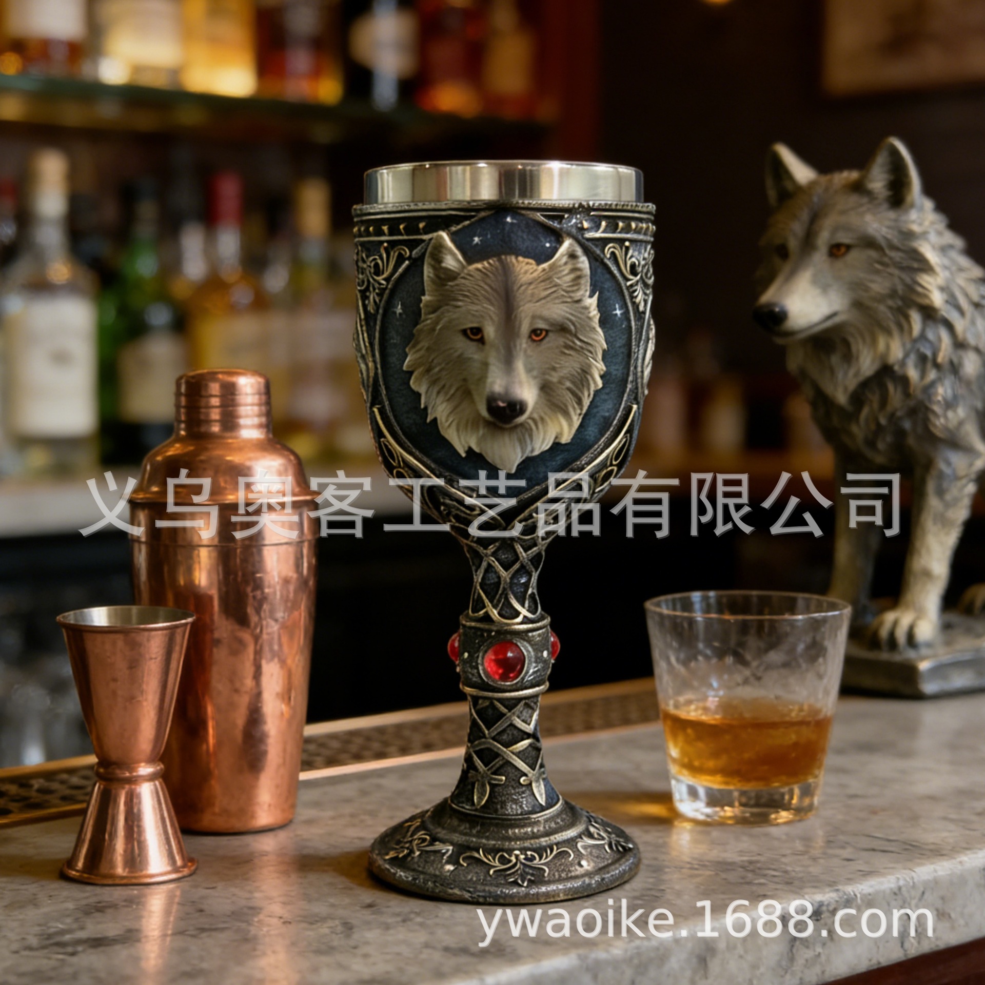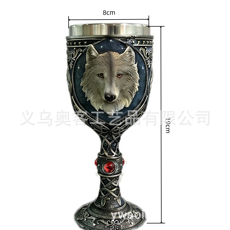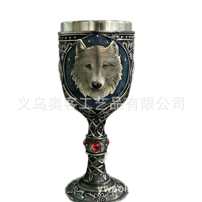 外贸北欧孤狼浮雕高脚杯不锈钢内胆哥特风酒杯红酒杯礼物酒吧个性