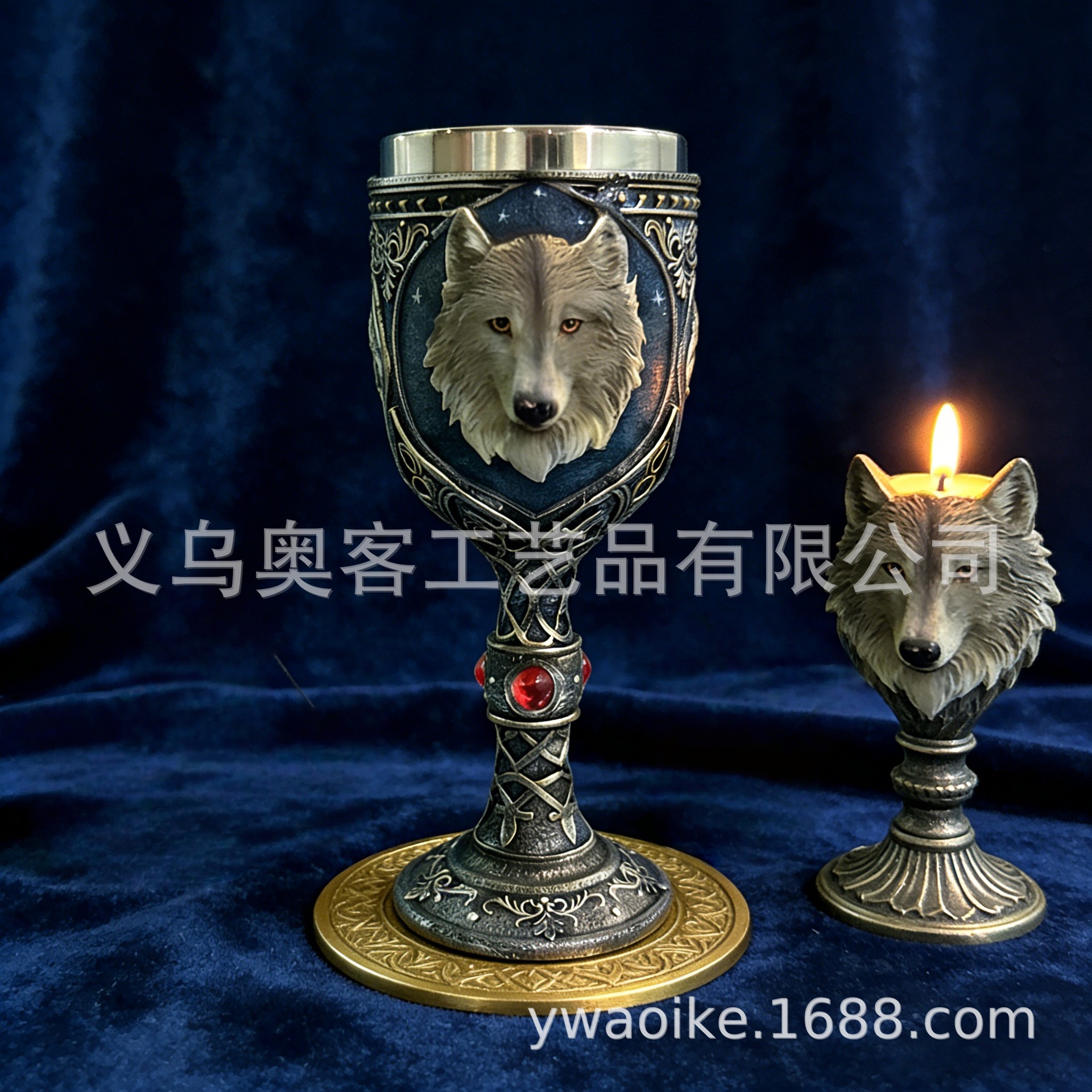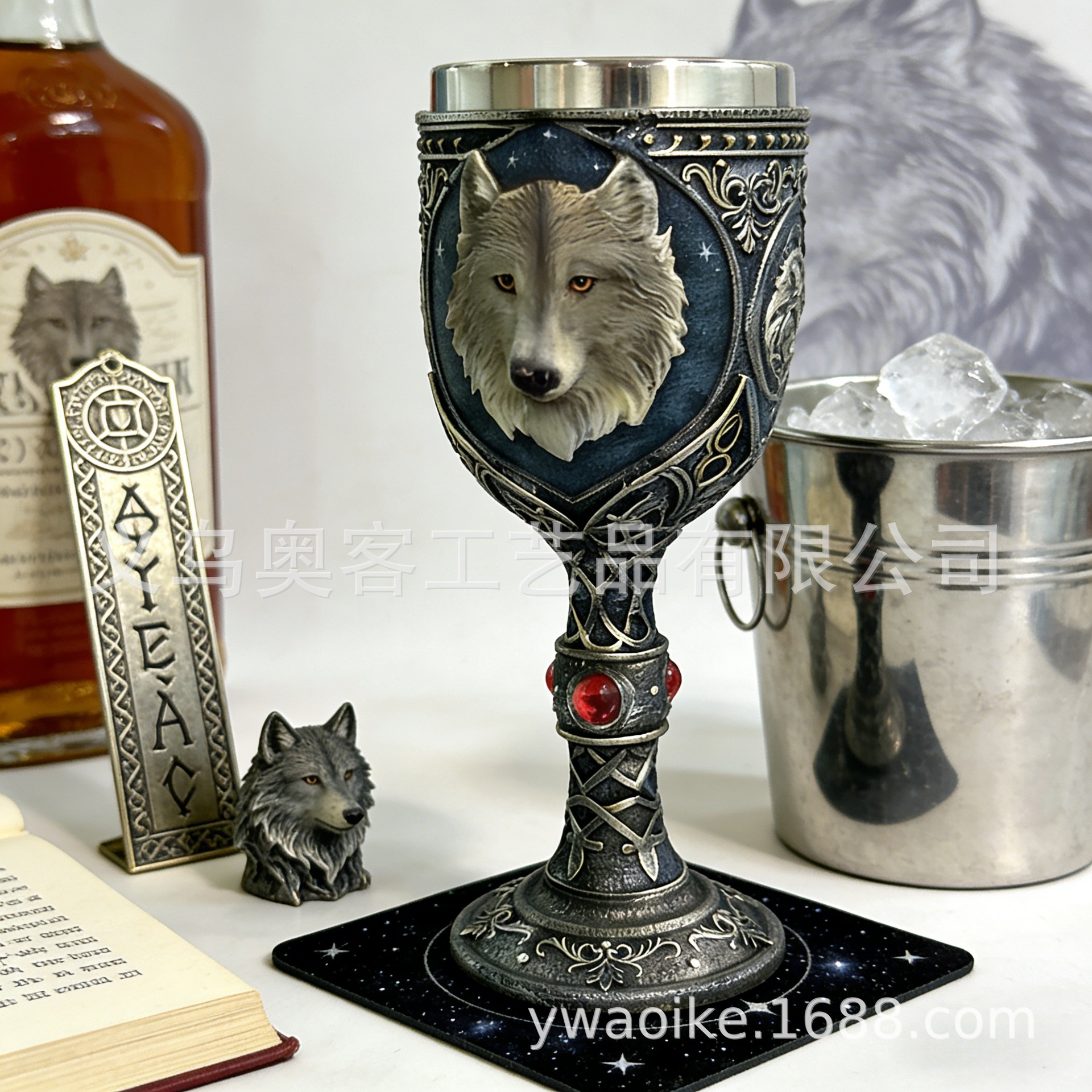 外贸北欧孤狼浮雕高脚杯不锈钢内胆哥特风酒杯红酒杯礼物酒吧个性 投诉