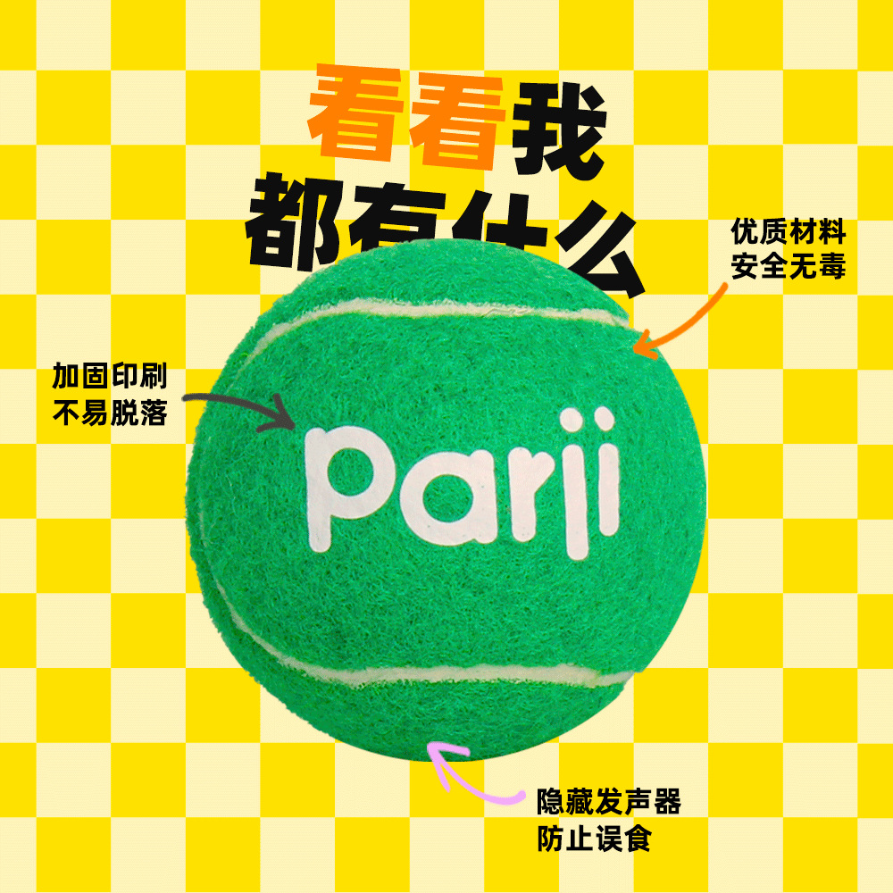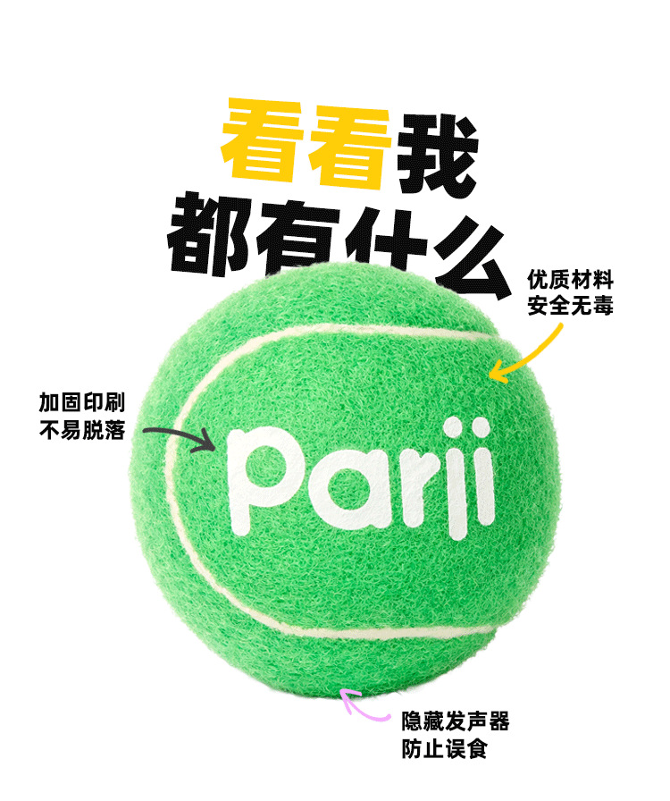 Parji啪唧狗狗玩具球发声互动运动网球小型中型犬训练宠物用品球