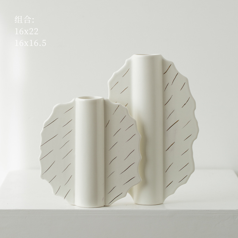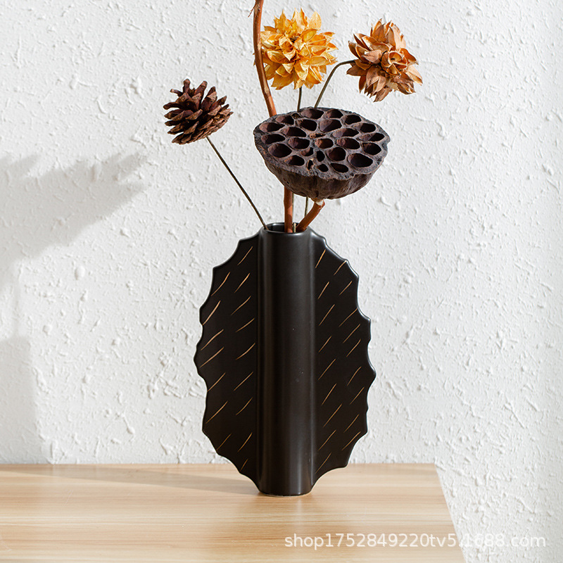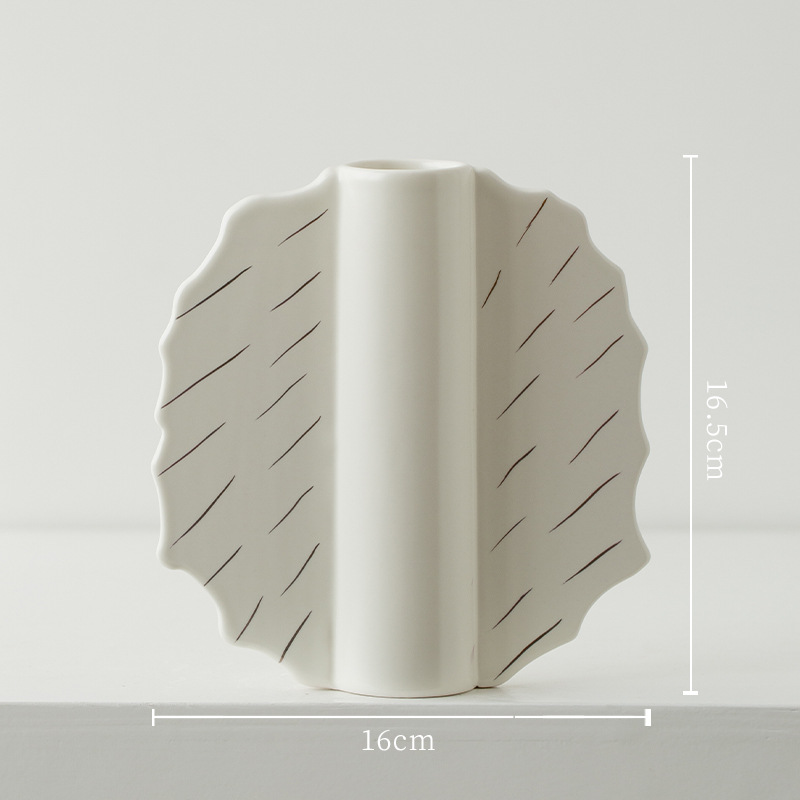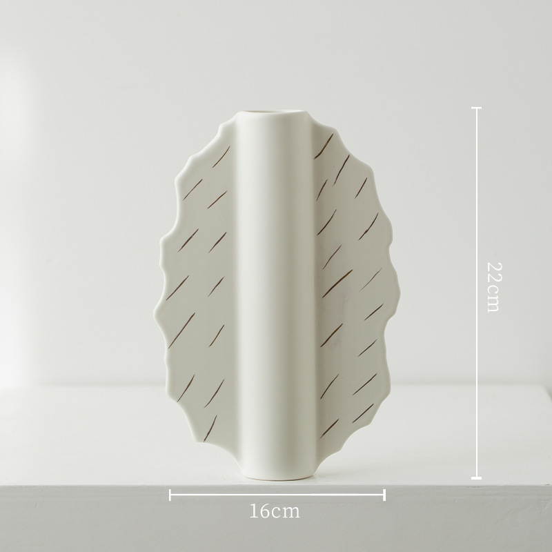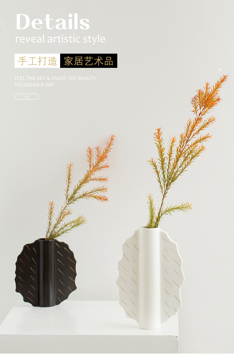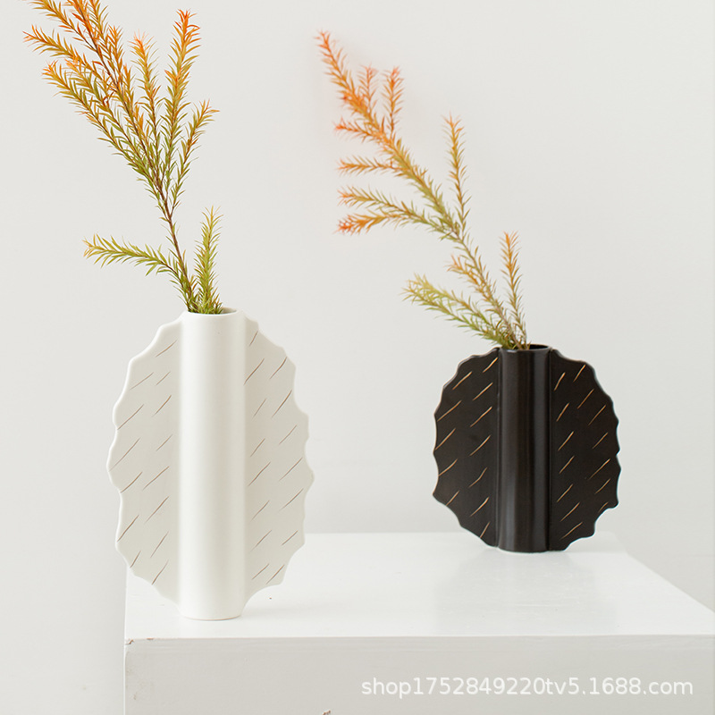 家居陶瓷花瓶摆件客厅民宿电视柜扇形花插哑光中古高级感花瓶 English | 投诉
