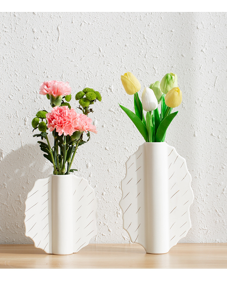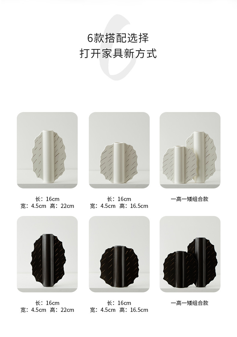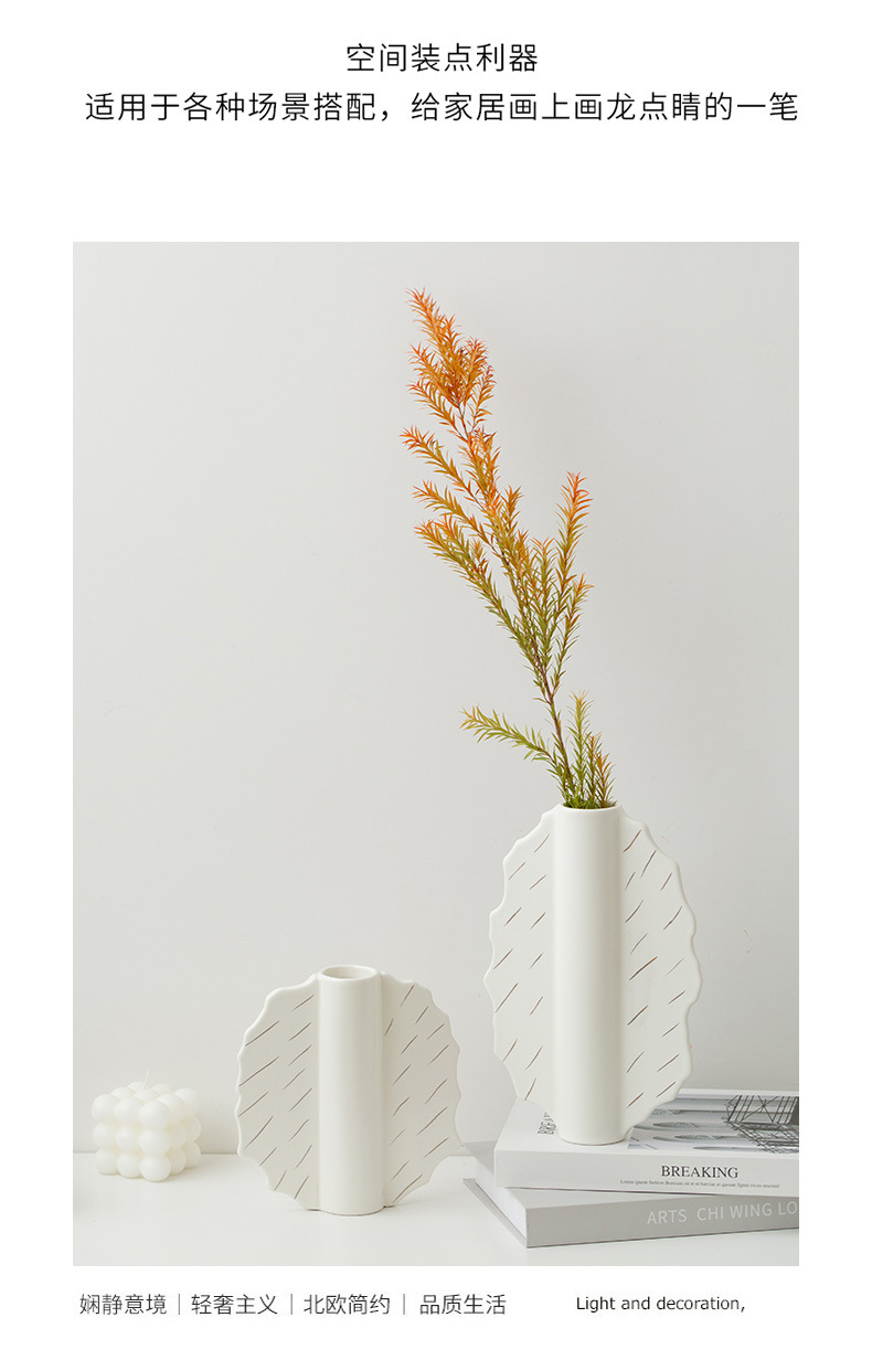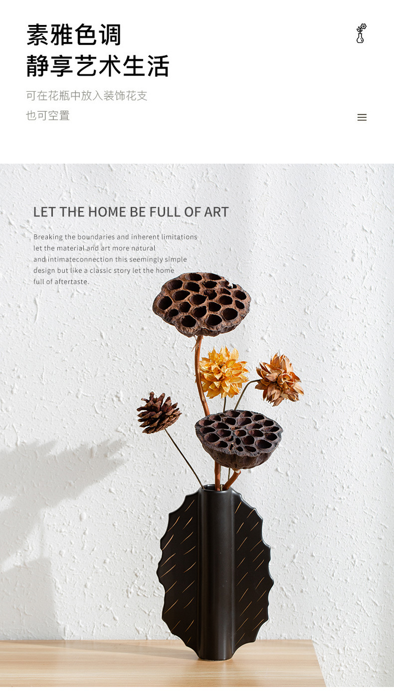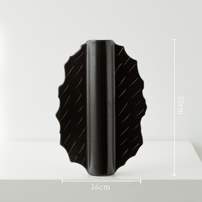 家居陶瓷花瓶摆件客厅民宿电视柜扇形花插哑光中古高级感花瓶 English | 投诉