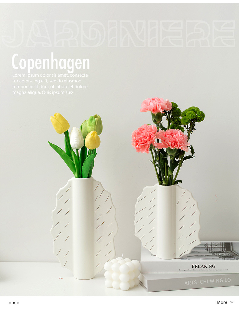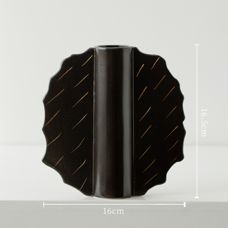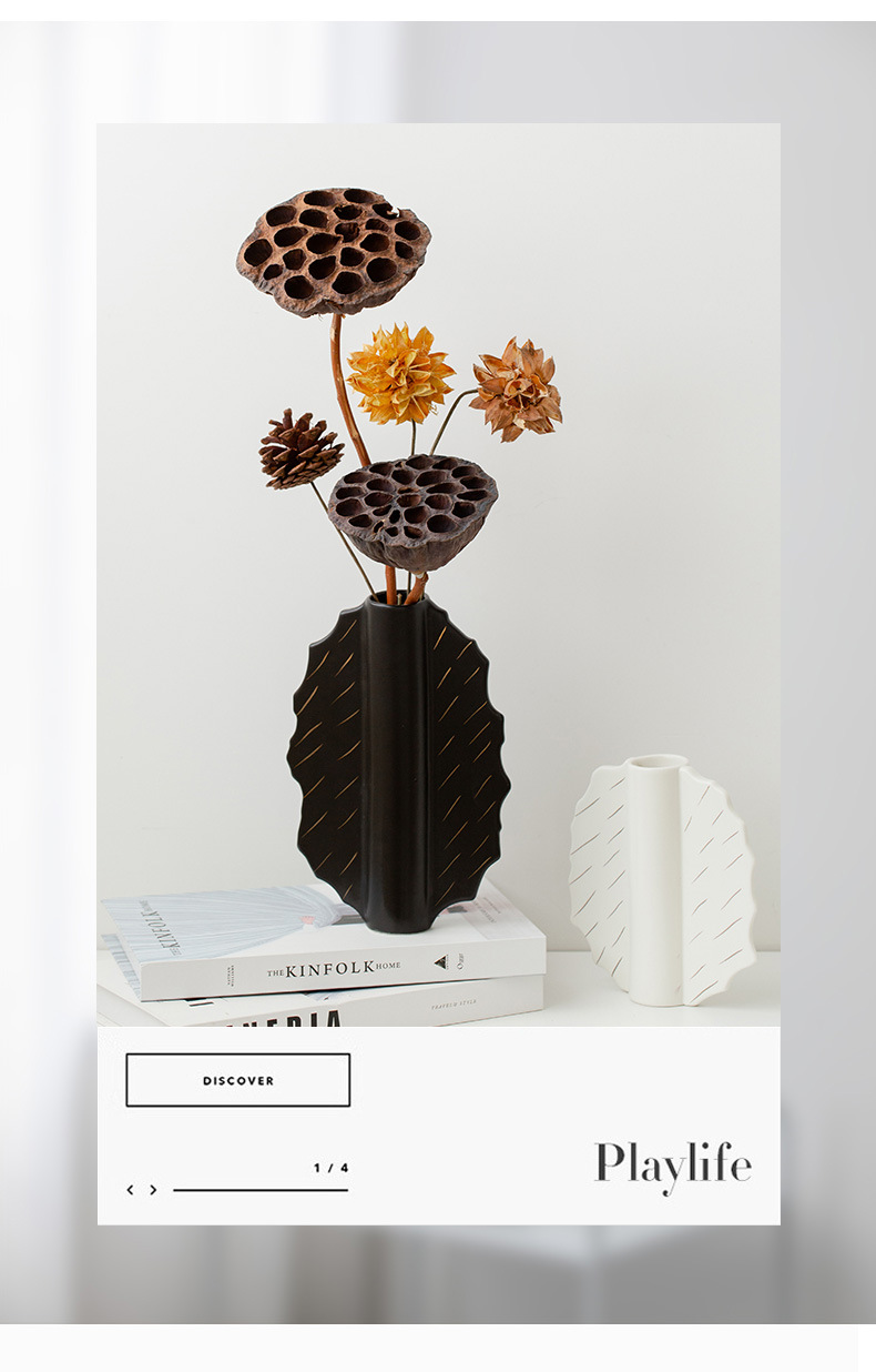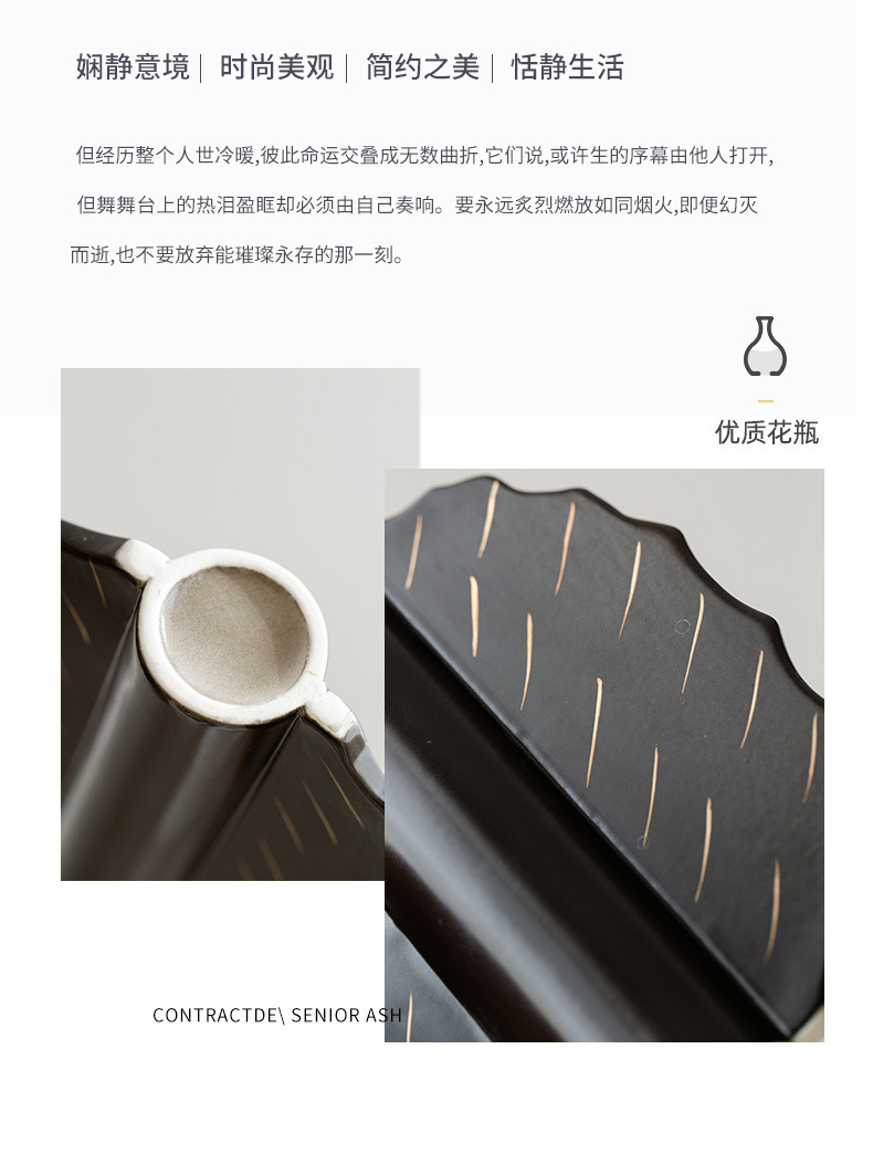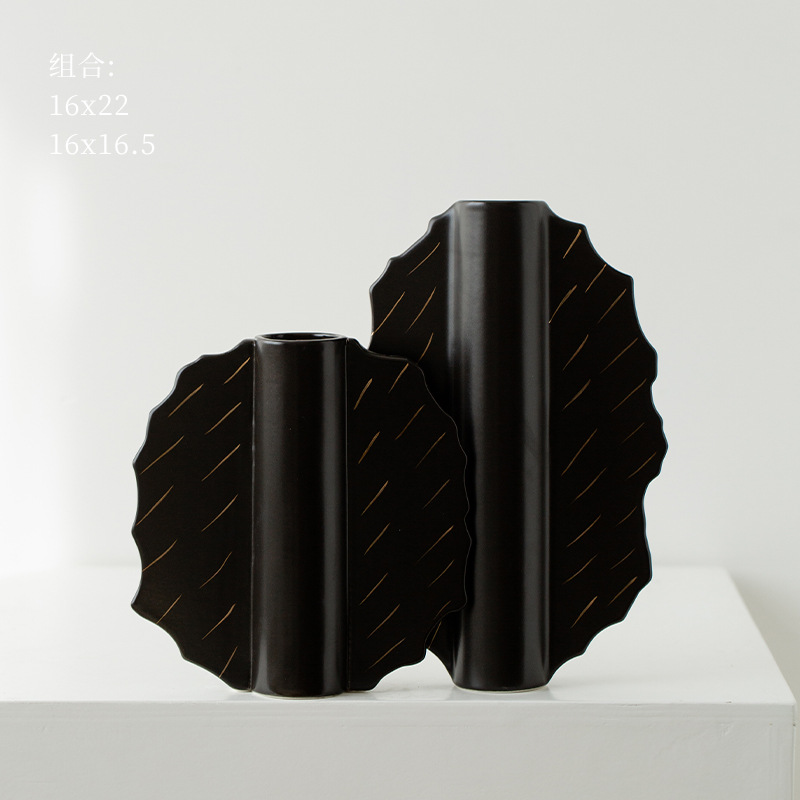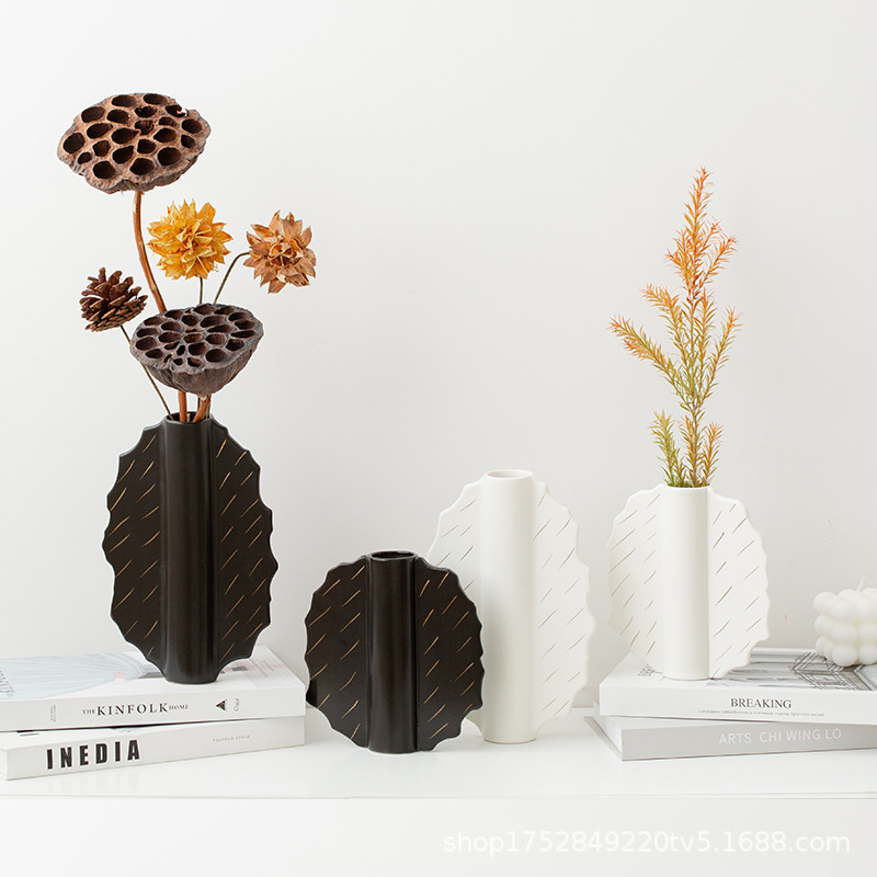 家居陶瓷花瓶摆件客厅民宿电视柜扇形花插哑光中古高级感花瓶 English | 投诉