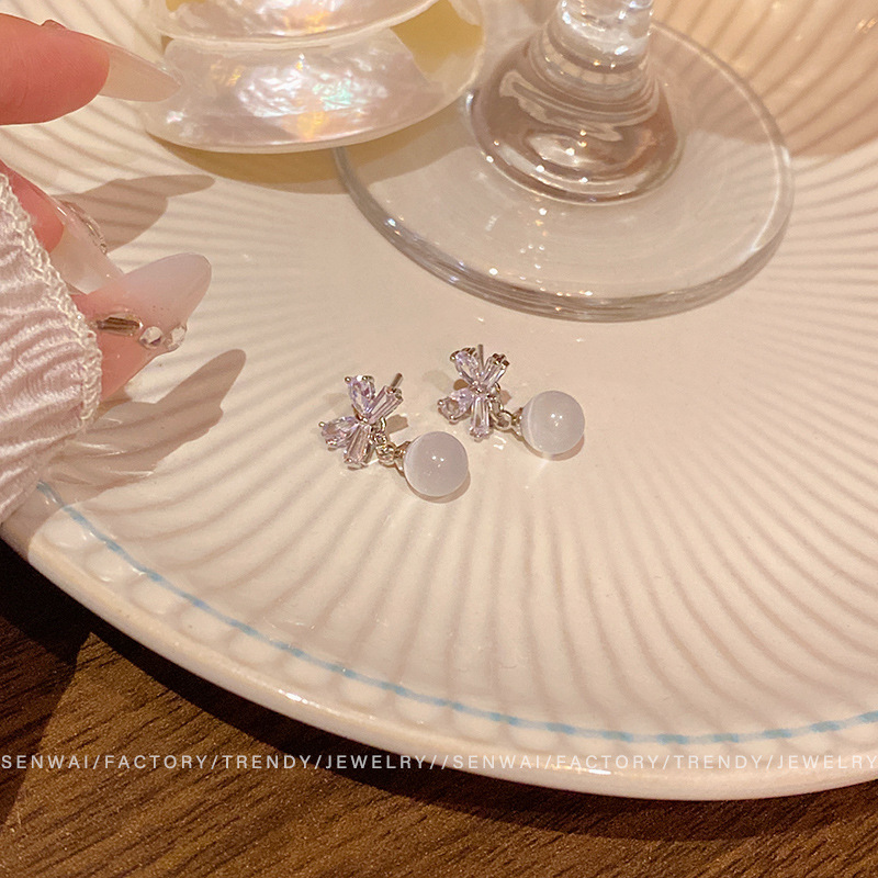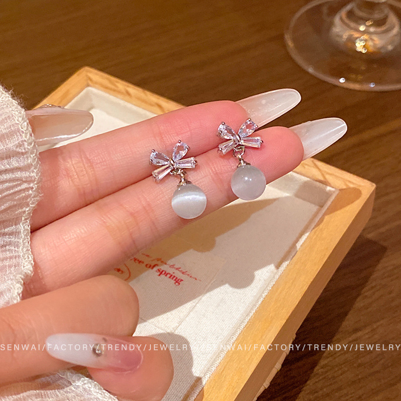微镶锆石蝴蝶结耳环女复古轻奢气质猫眼石耳坠高级感新款精致耳饰 English | 投诉